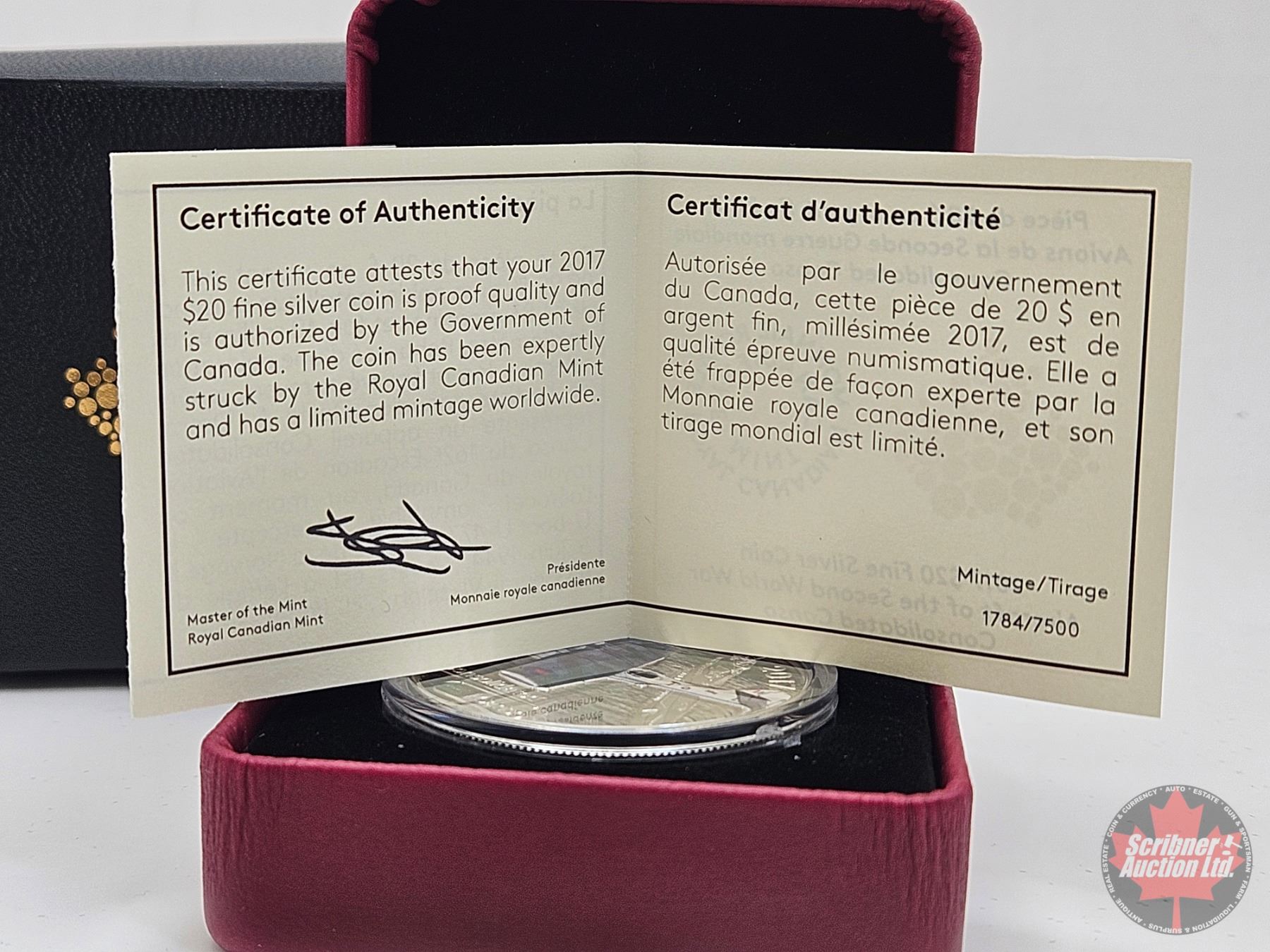 Firearm, Coin & Currency Grades are not the opinion of Scribner Auction Ltd. or any of Scribner Auction Ltd. representatives.