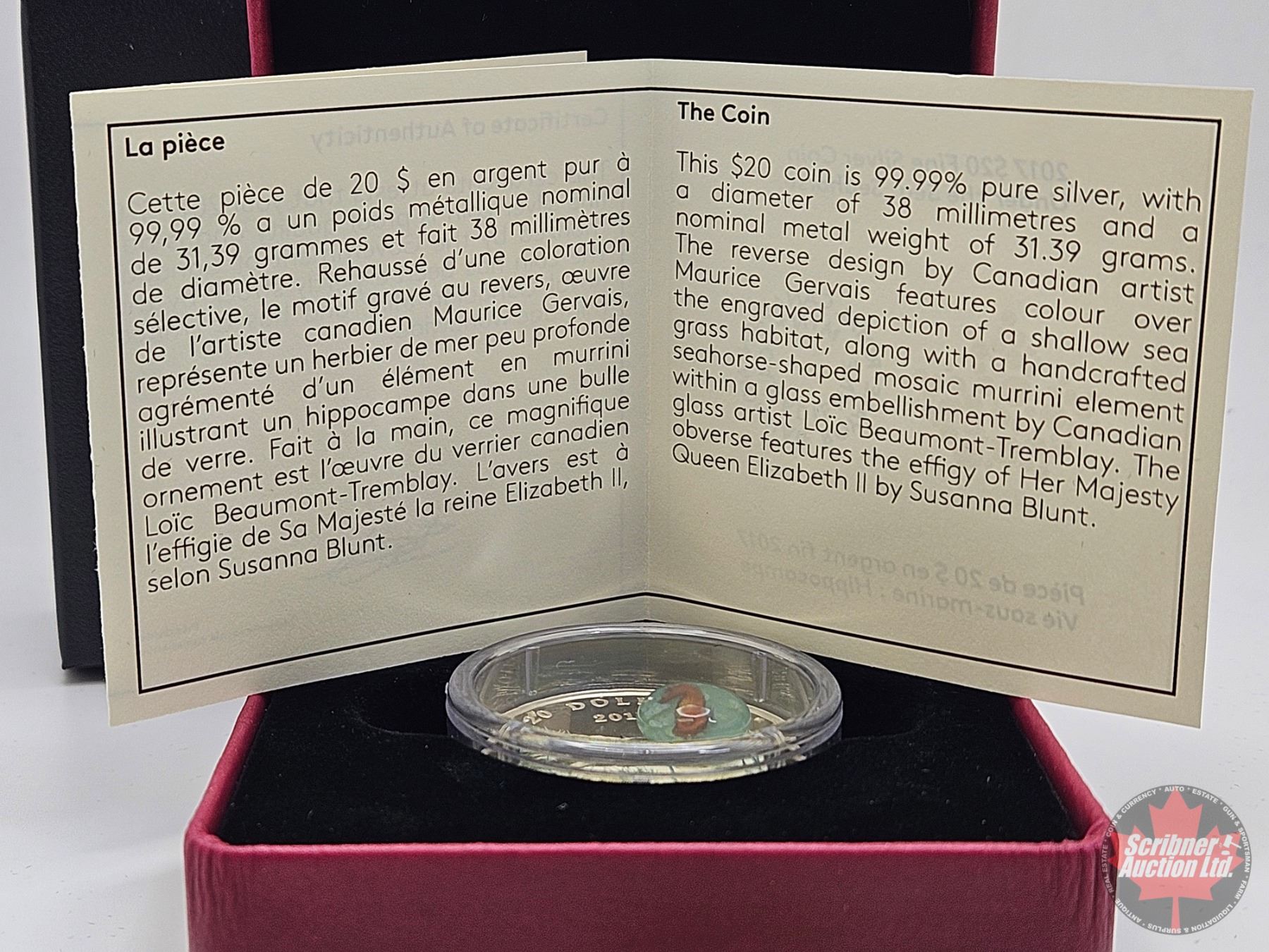 RCM Canada 2017 : $20 Fine Silver Coin : Under the Sea : Seahorse (COA #0803)