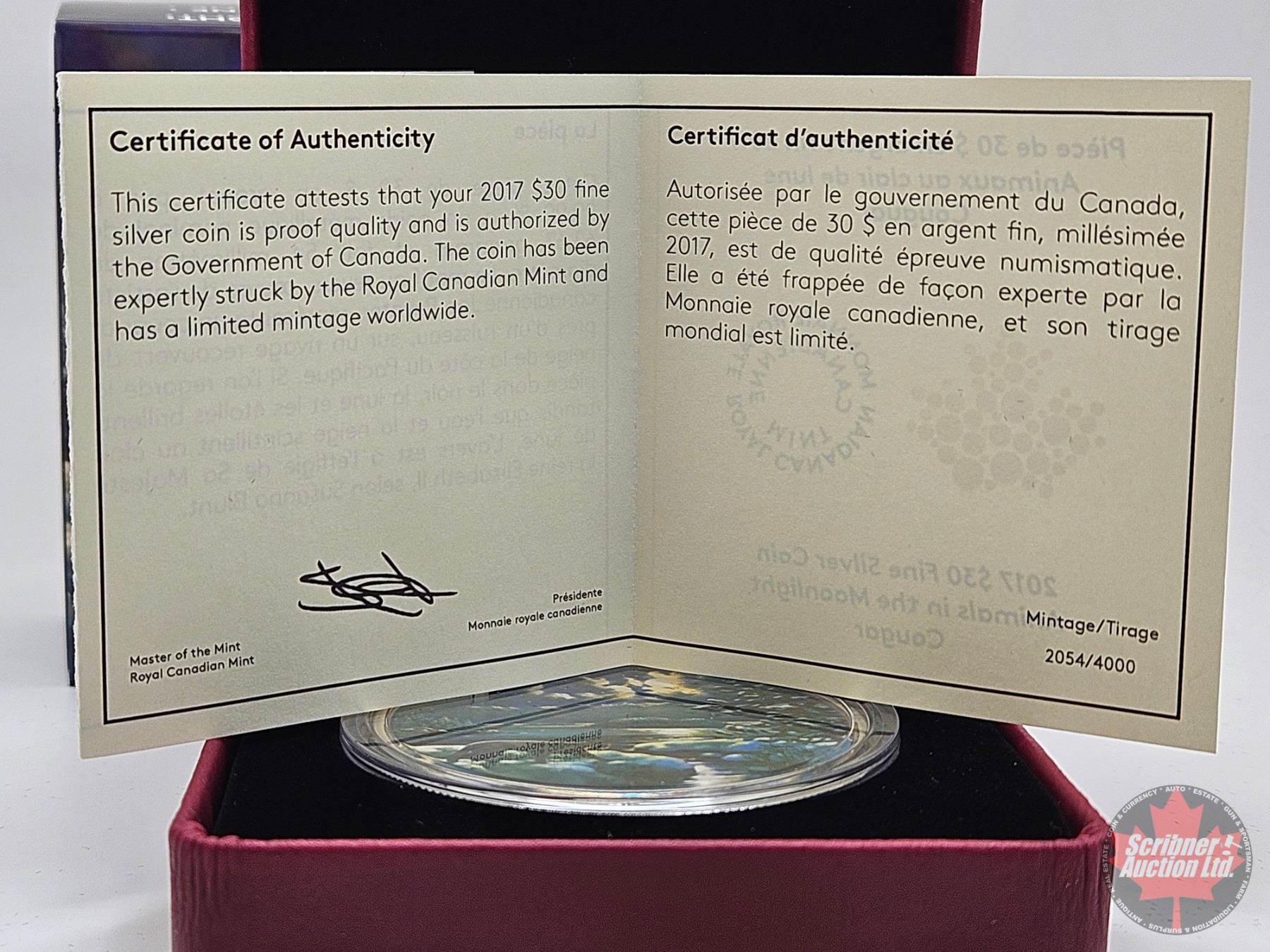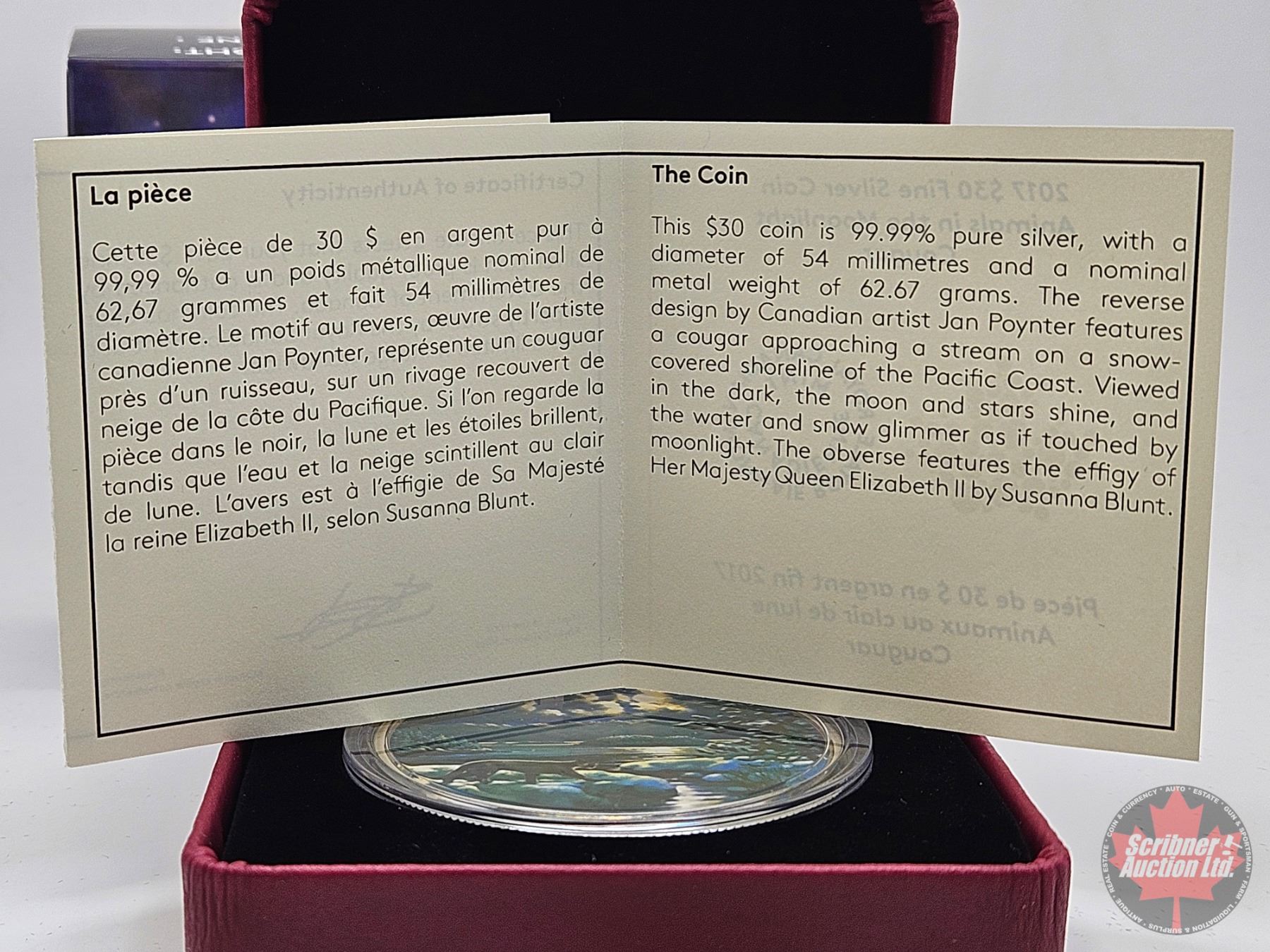 RCM Canada 2017 : $30 Fine Silver Coin : Animals in the Moonlight : Cougar (COA #2054)