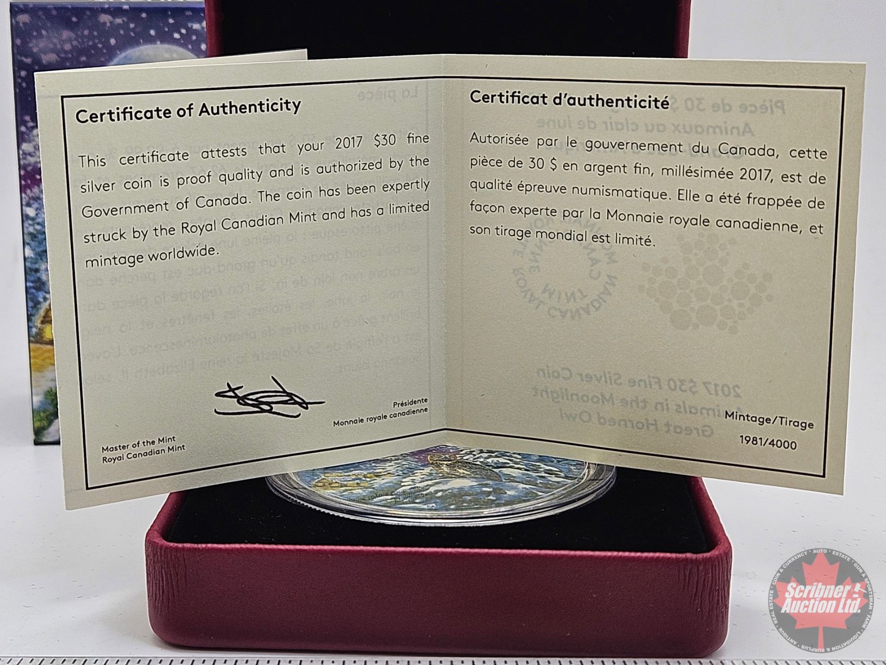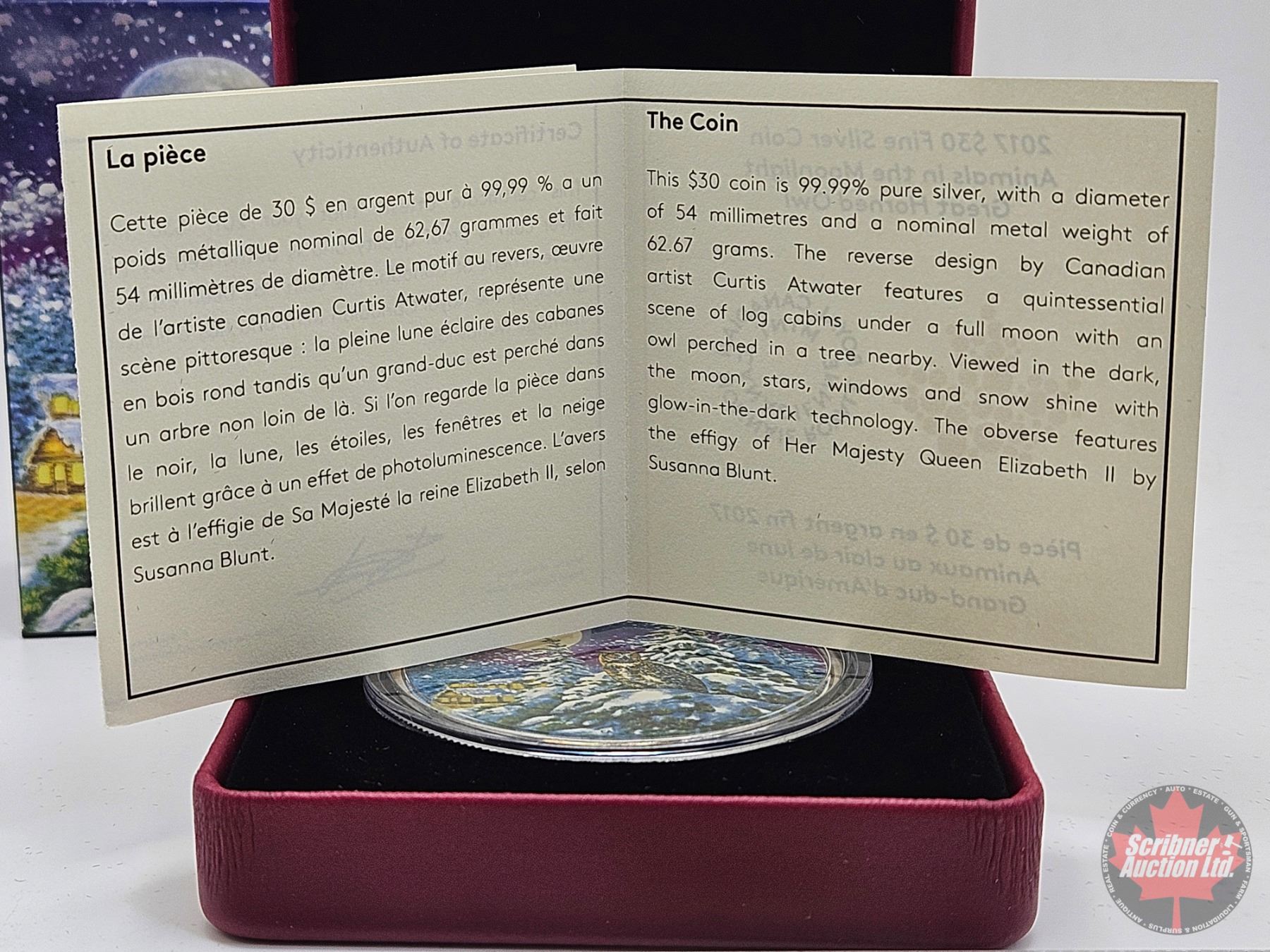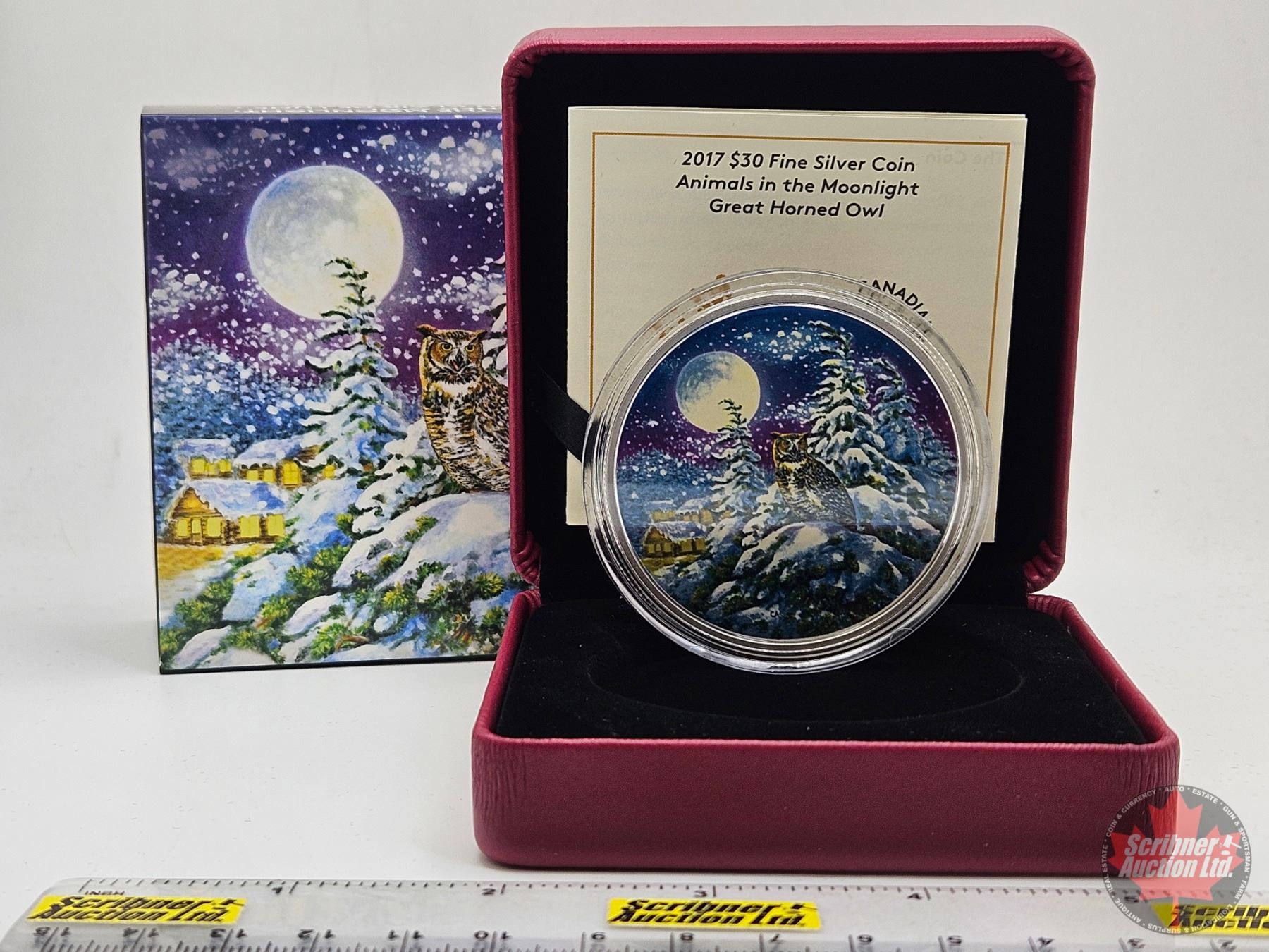 RCM Canada 2017 : $30 Fine Silver Coin : Animals in the Moonlight : Great Horned Owl (COA #1981)