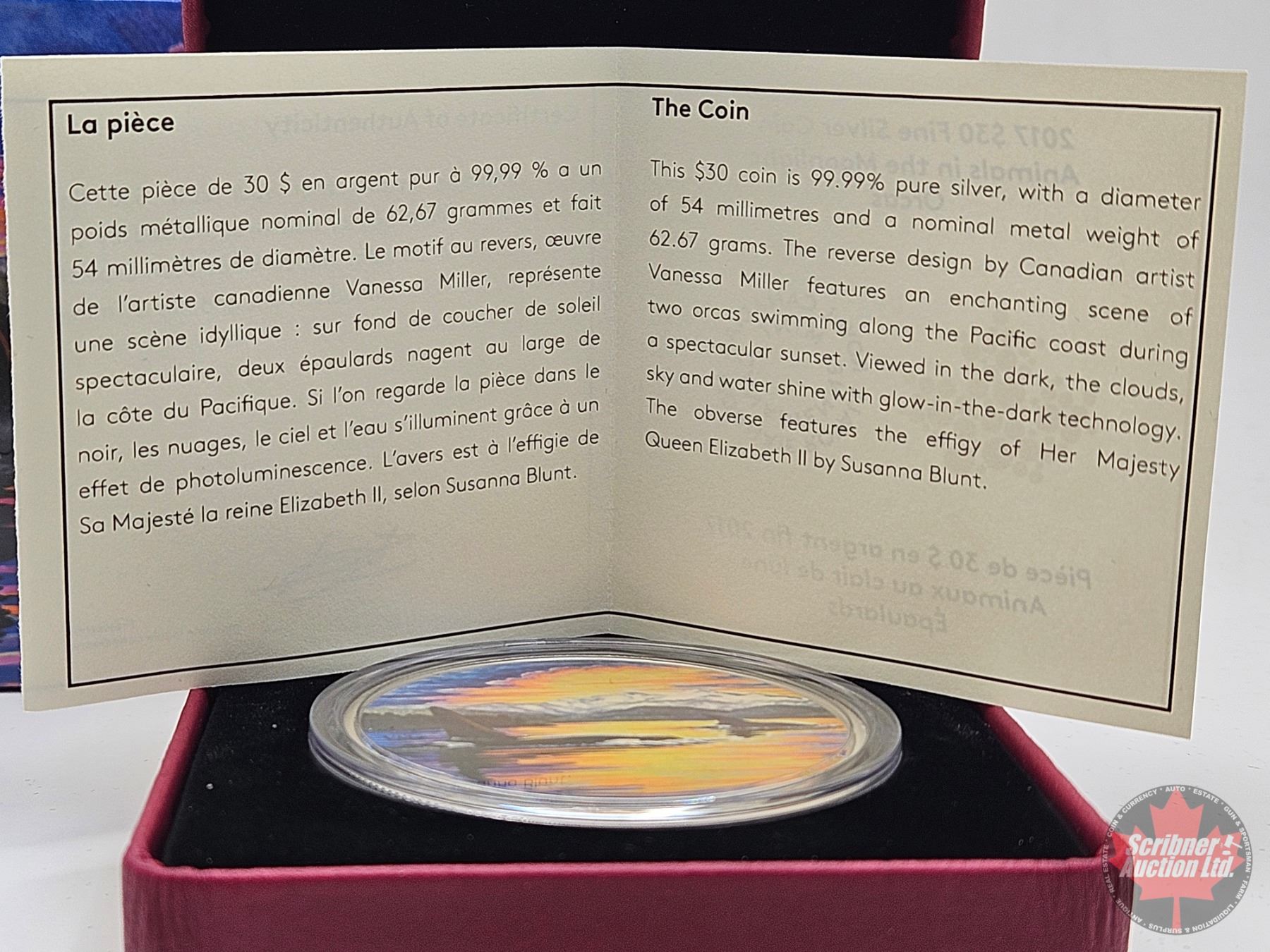 RCM Canada 2017 : $30 Fine Silver Coin : Animals in the Moonlight : Orcas (COA #3045)