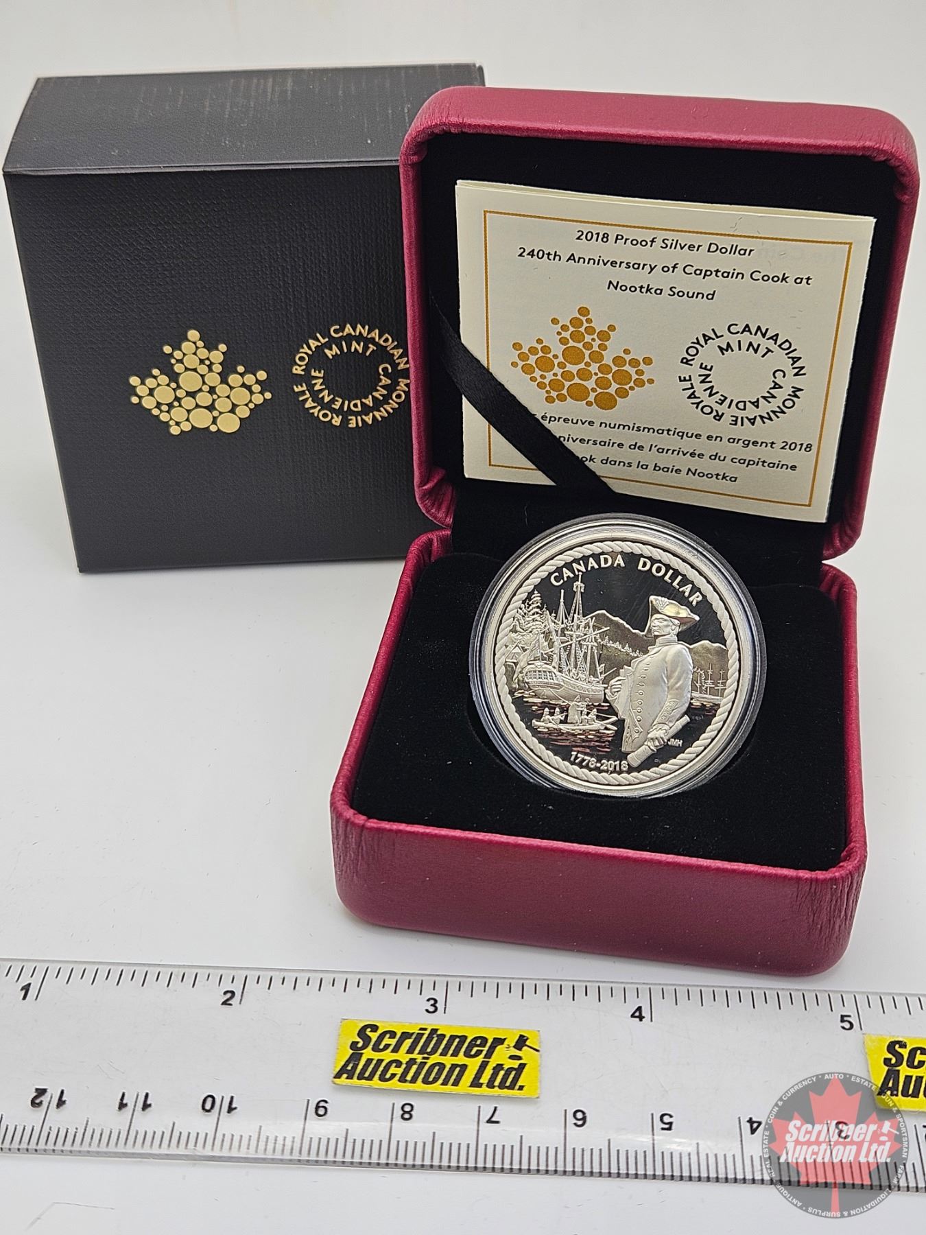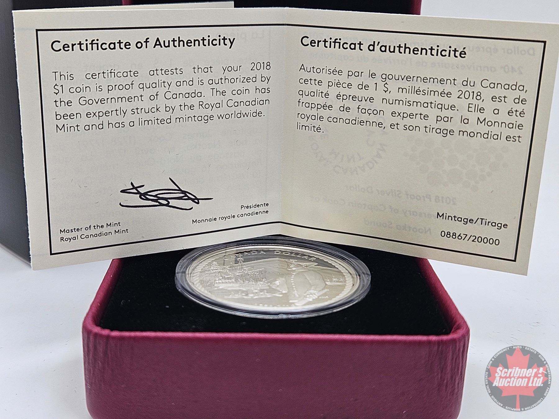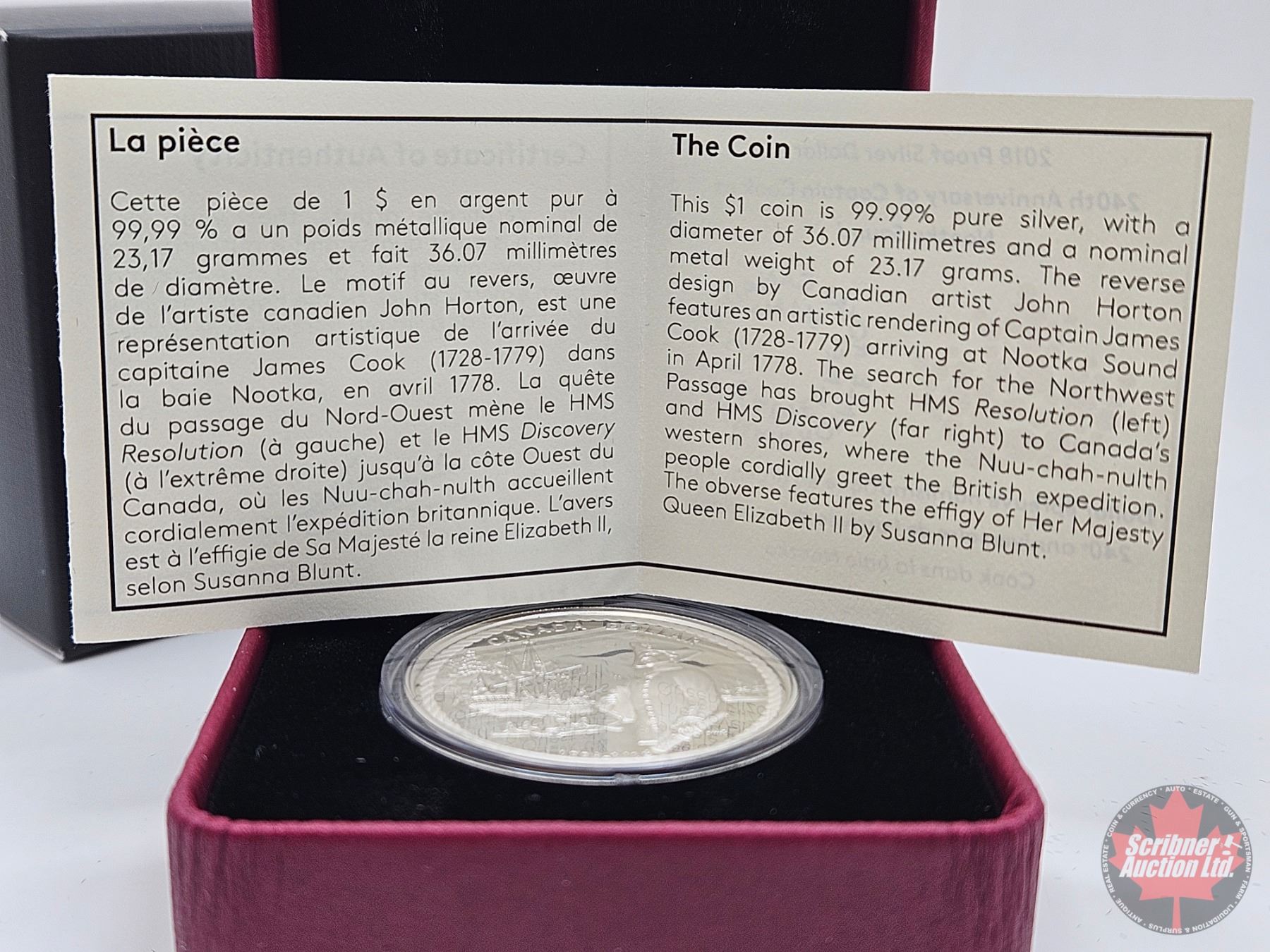 RCM Canada 2018 : Proof Silver Dollar : 240th Anniversary of Captain Cook at Nootka Sound (COA #08867)