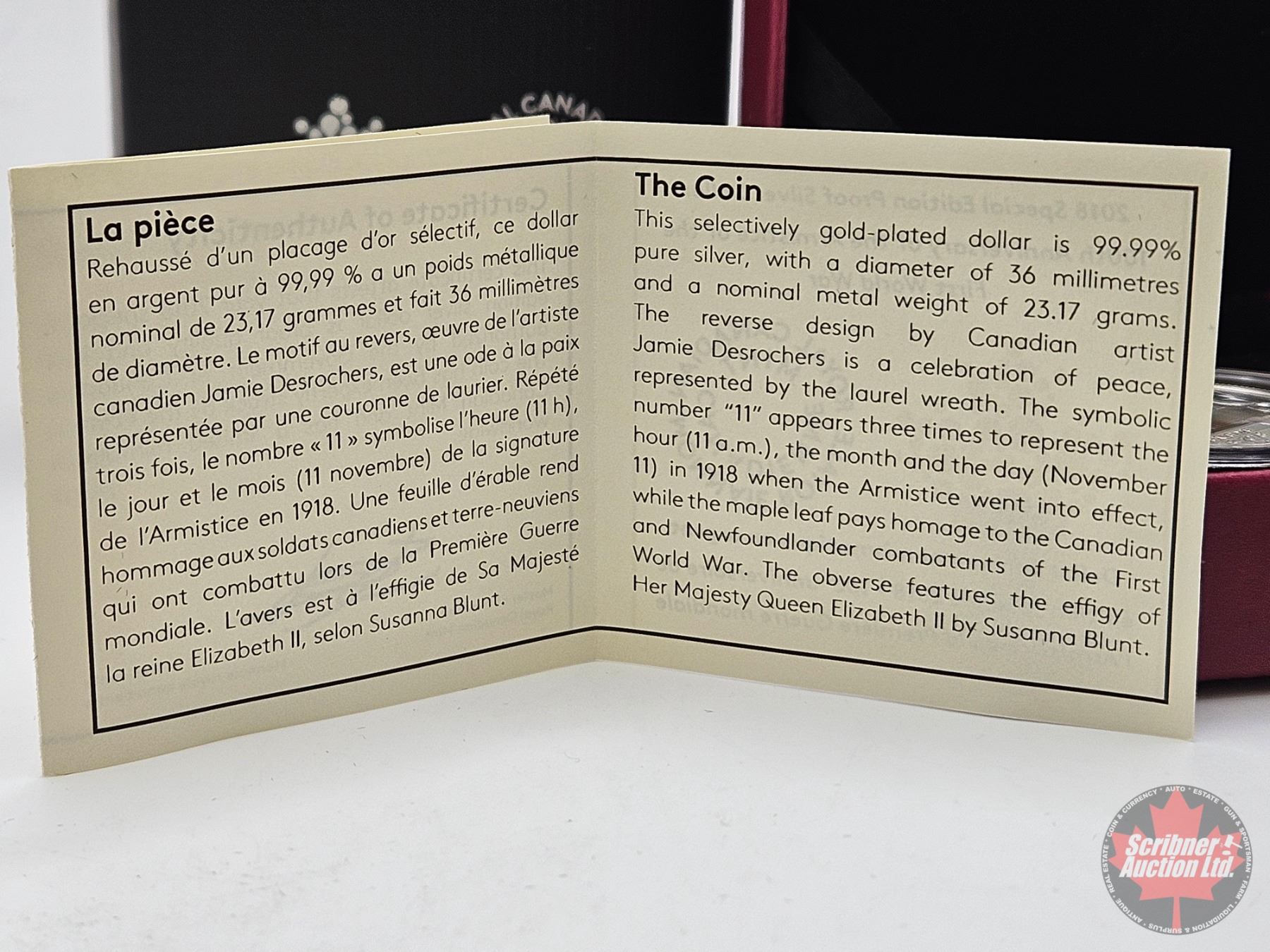 RCM Canada 2018 Special Edition Proof Silver Dollar : 100th Anniversary of the Armistice of the First World War