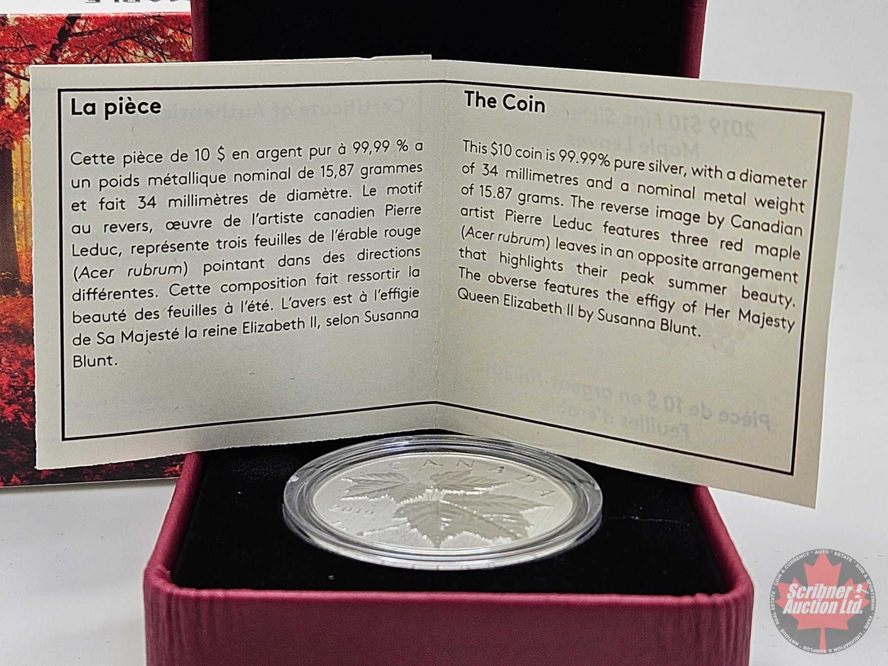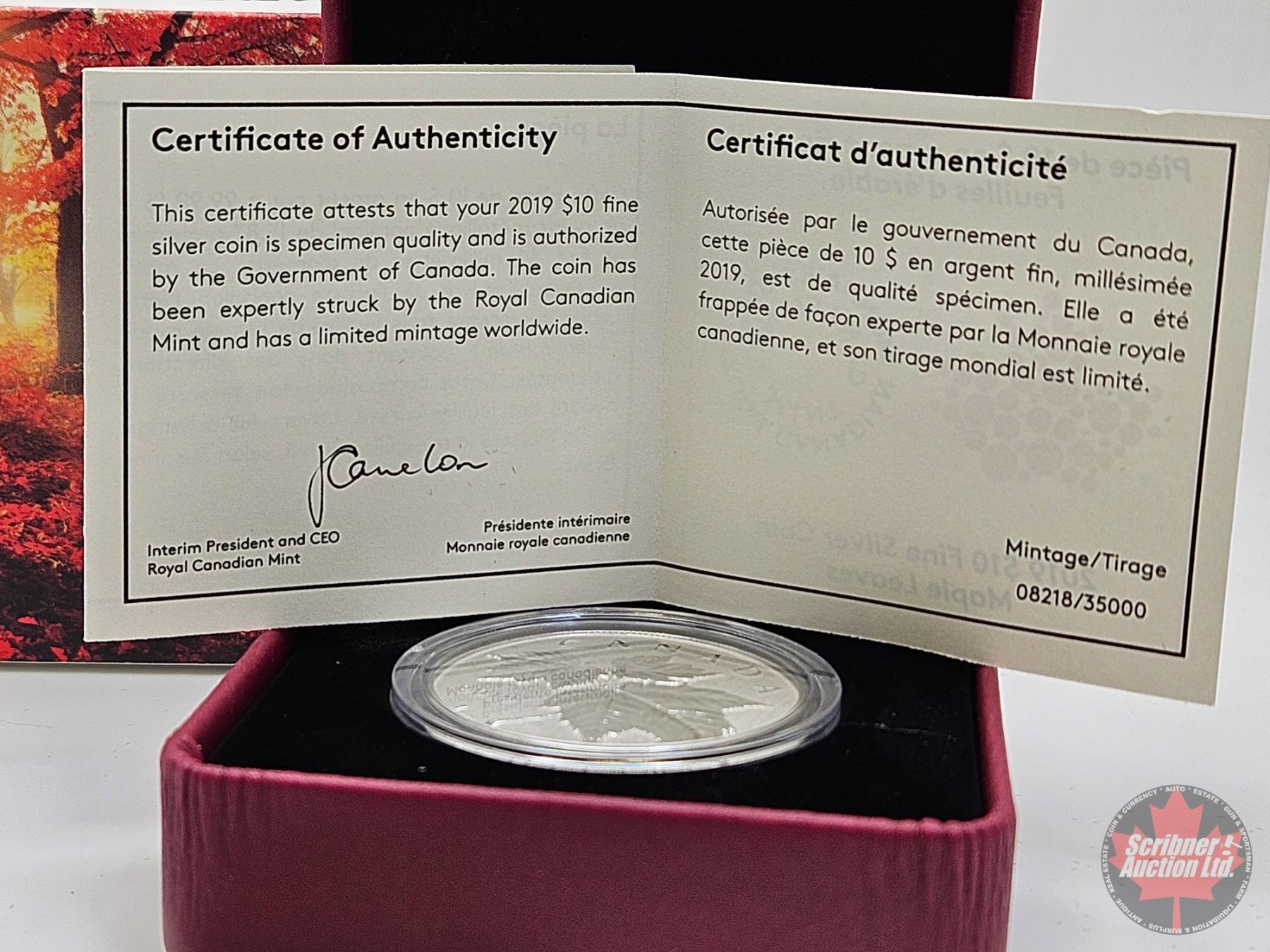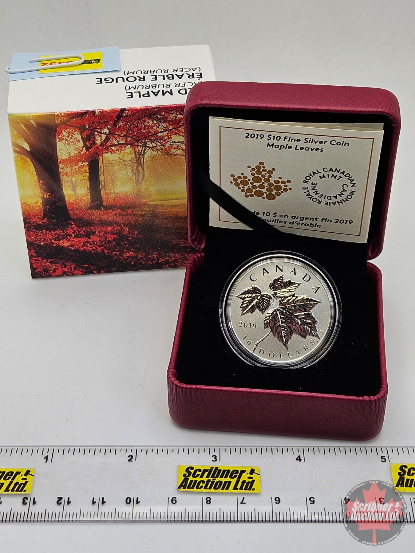 RCM Canada 2019 : $10 Fine Silver Coin : Maple Leaves (COA #08218)