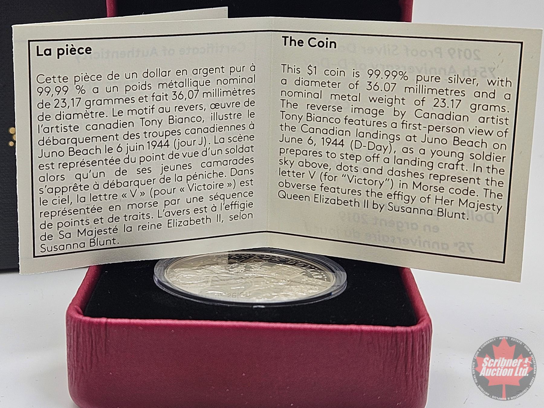 RCM Canada 2019 : Proof Silver Dollar : 75th Anniversary of D-Day (COA #03471)