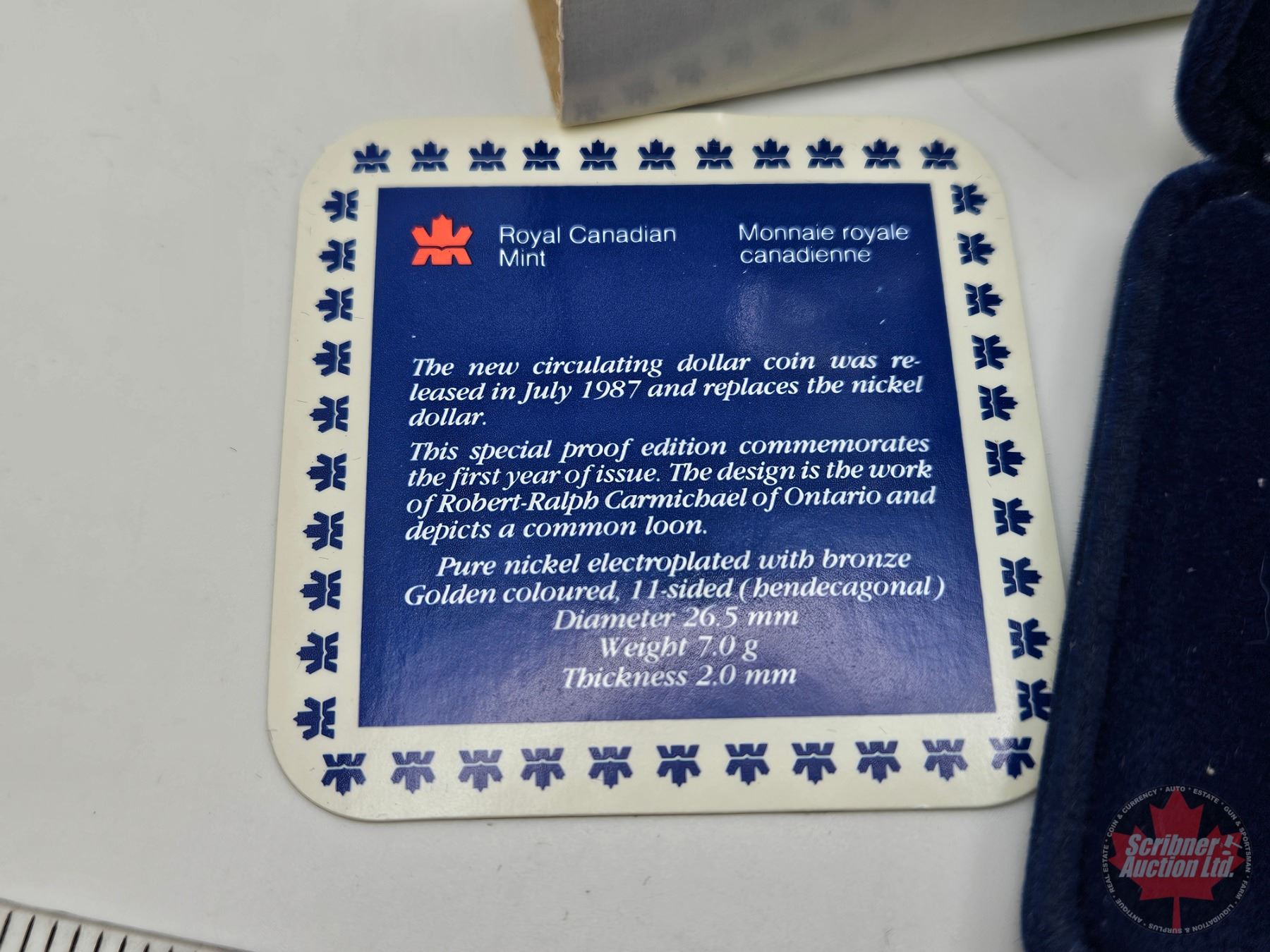 RCM Canada Proof Loon Dollar 1987 : Blue Velvet Case (SEE PICTURES!)