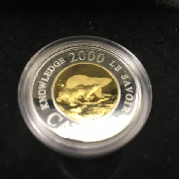 2000 Canada Polar Bear $2 "Knowledge" Sterling Silver w/COA (24 karat Selectively Gold Plated)