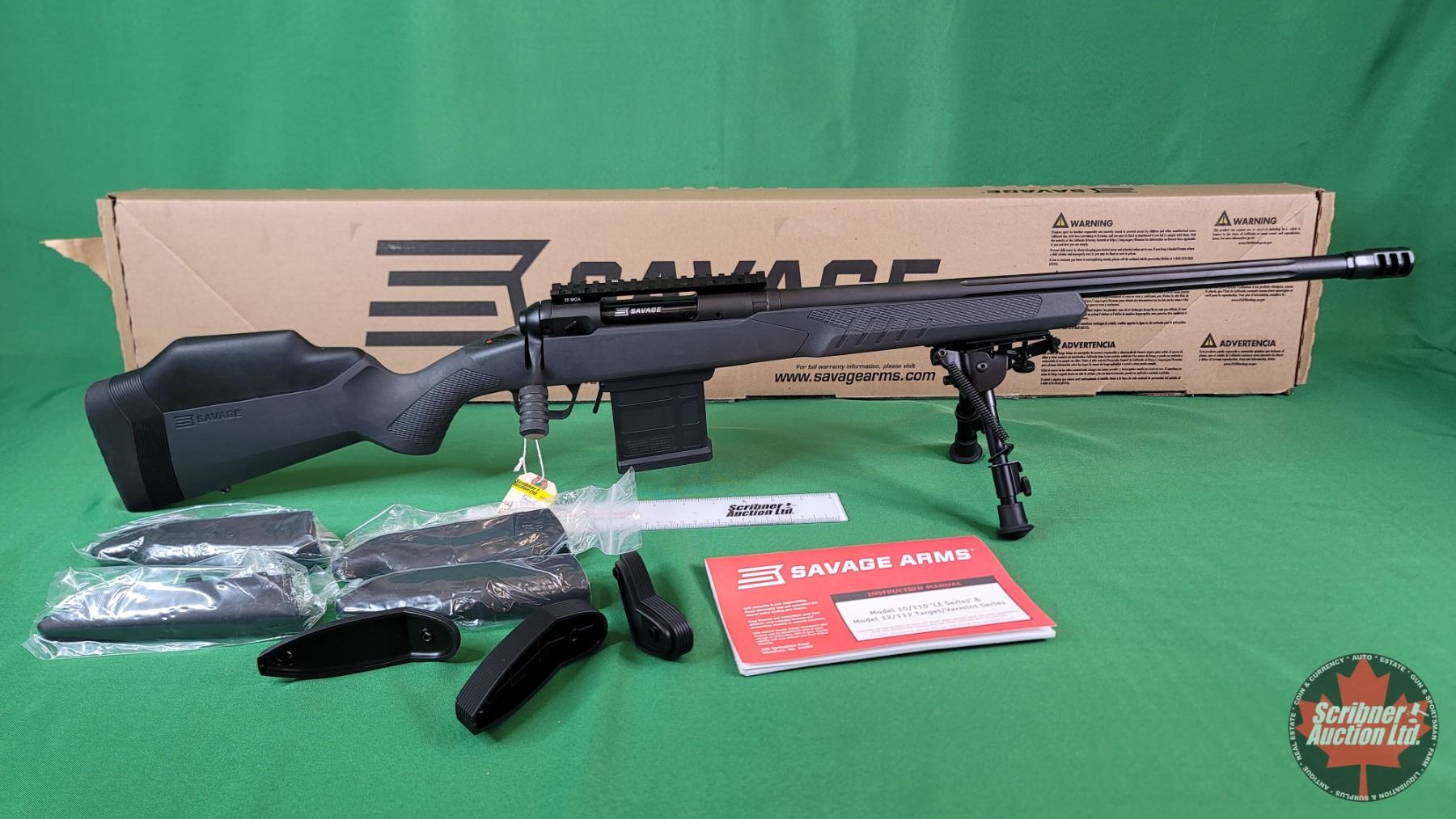 RIFLE: Savage 110 Bolt Action 308 Win (BBL 21-1/2") (c/w Bi-Pod; Extra Cheek Risers; Muzzle Break & Orig Box) (S/N#P680608) (SEE PICS!) INVENTORY # 845