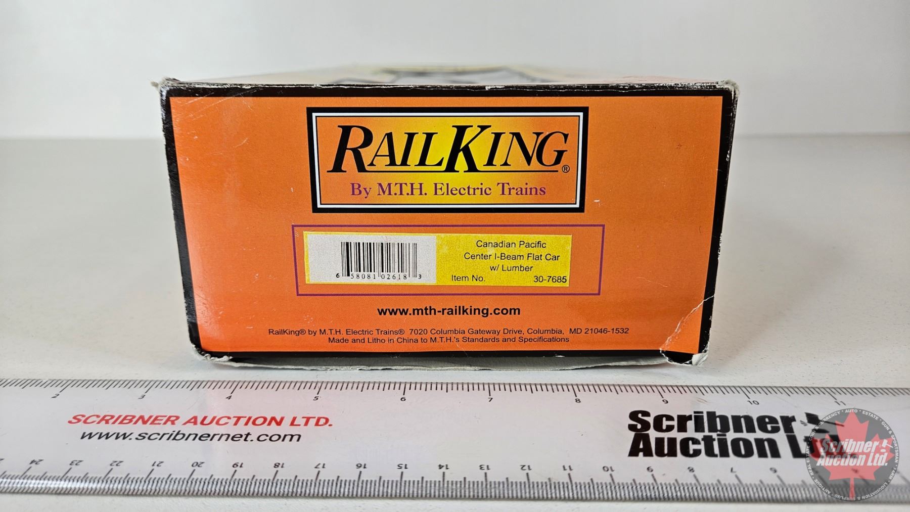 Rail King M.T.H. Electric Trains : Canadian Pacific Center I-Beam Flat Car w/ Lumber : O Scale : 30-7685