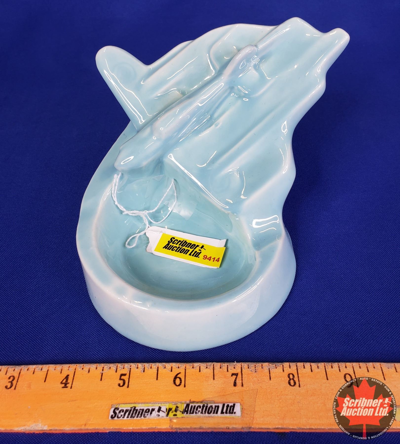 Rare Medicine Hat Pottery Airplane Ashtray (4"H x 7"W x 7"H) (SEE PICS!)
