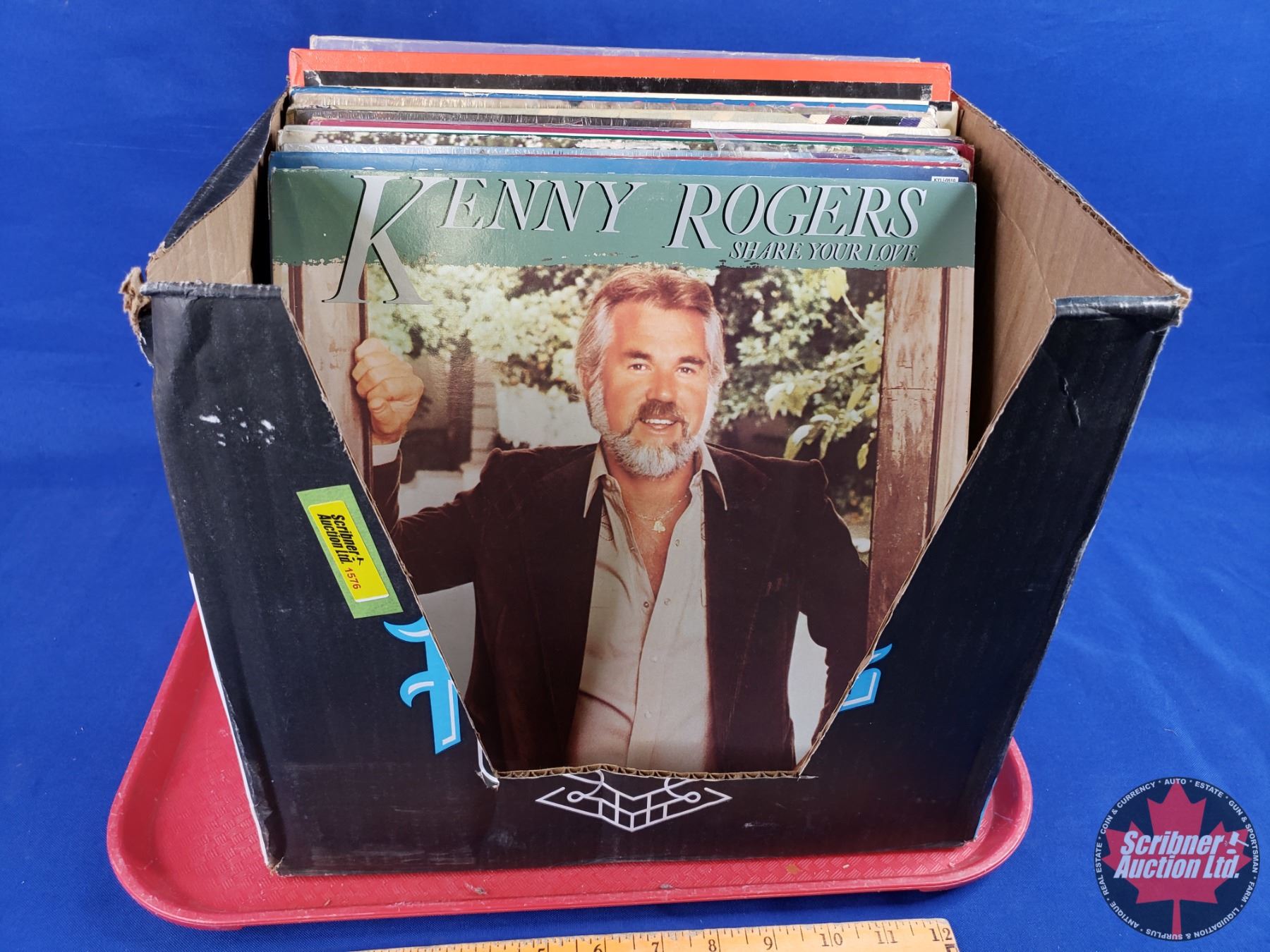 Record Album Collection (LP's) Variety Box Lot (18) : Incl. Kenny Rogers; Bonnie Tyler; Guy Lombarde; etc !!! (Box Measures 13"H x 13"W x 4"D) (SEE PICS!)