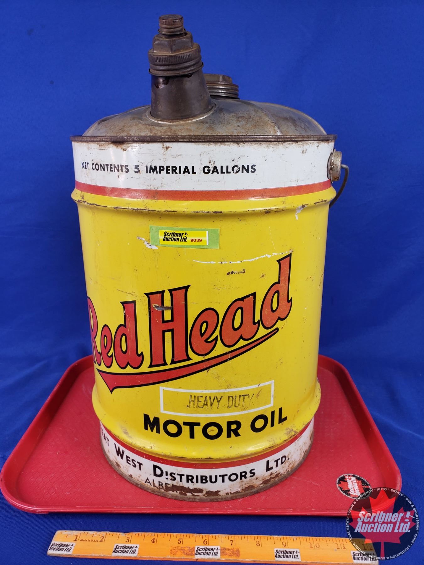 Red Head Motor Oil 5 Gal Pail (19"H x 12"Dia) (SEE PICS!)