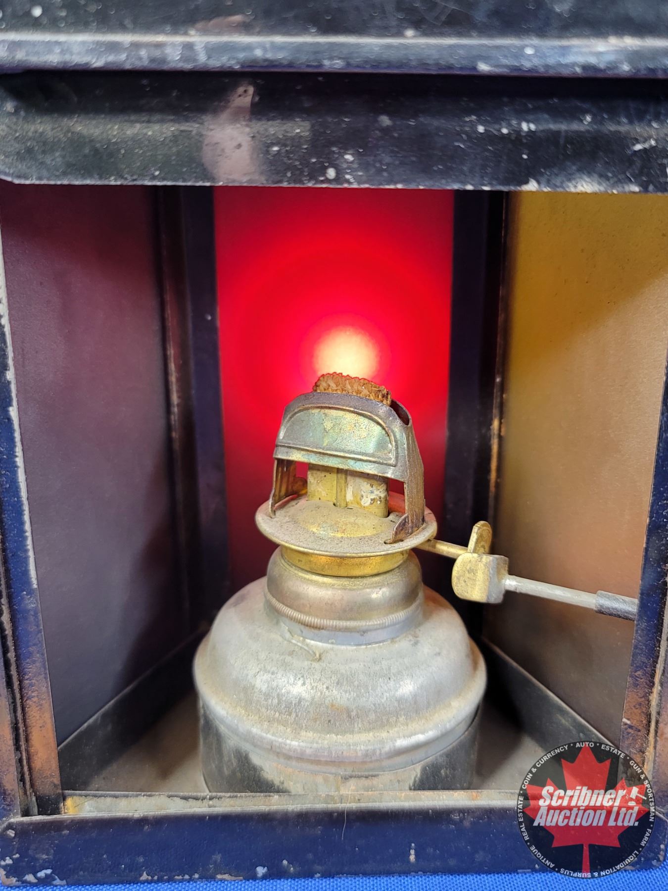 Reliance Kerosene Darkroom Signal Lantern w/Red & Amber Lenses (8"H x 5-1/4"W x 3"D) (SEE PICS!)