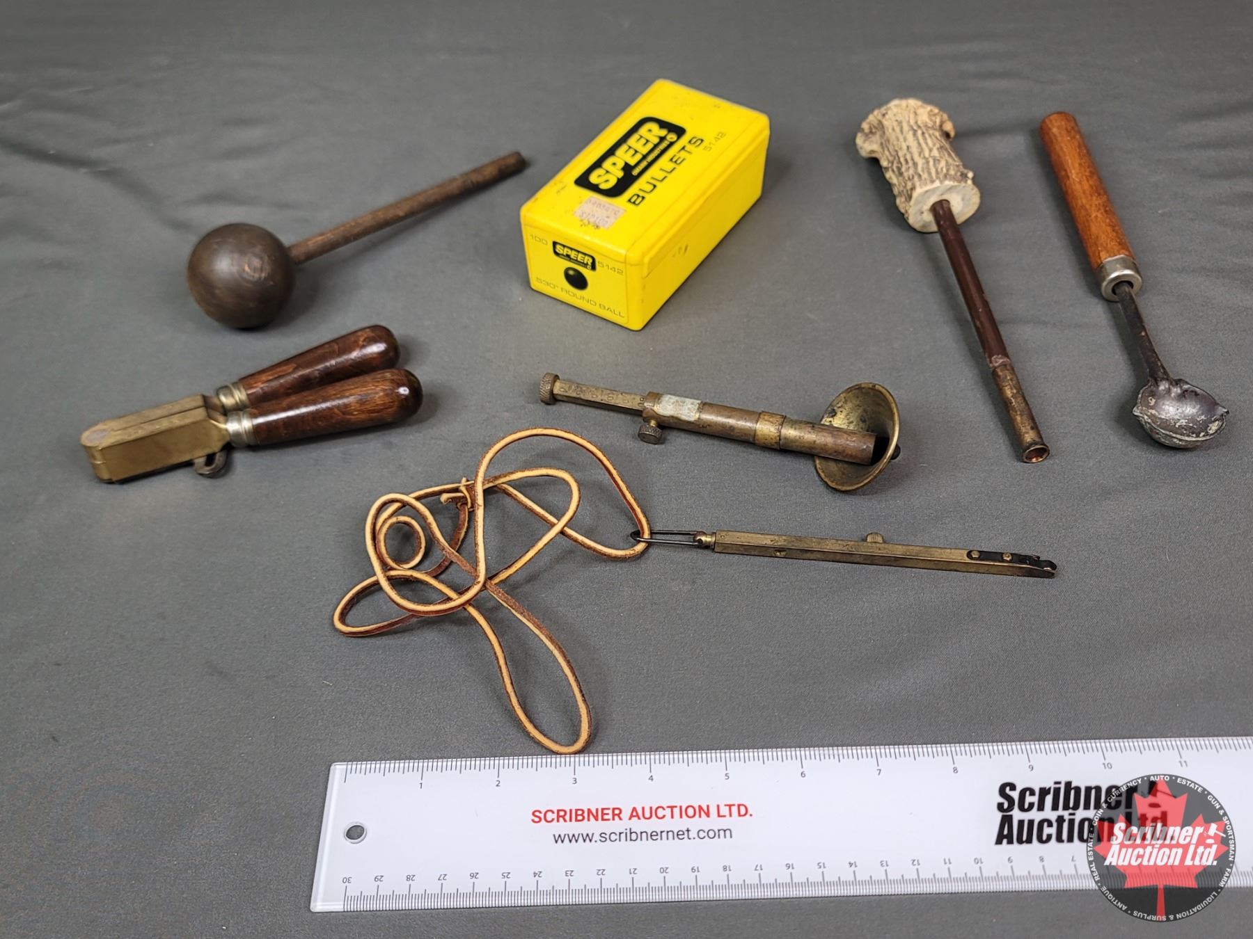 Reloading Tools including Ball Moulds, Powder Measure, Ladle, Lead Balls, etc