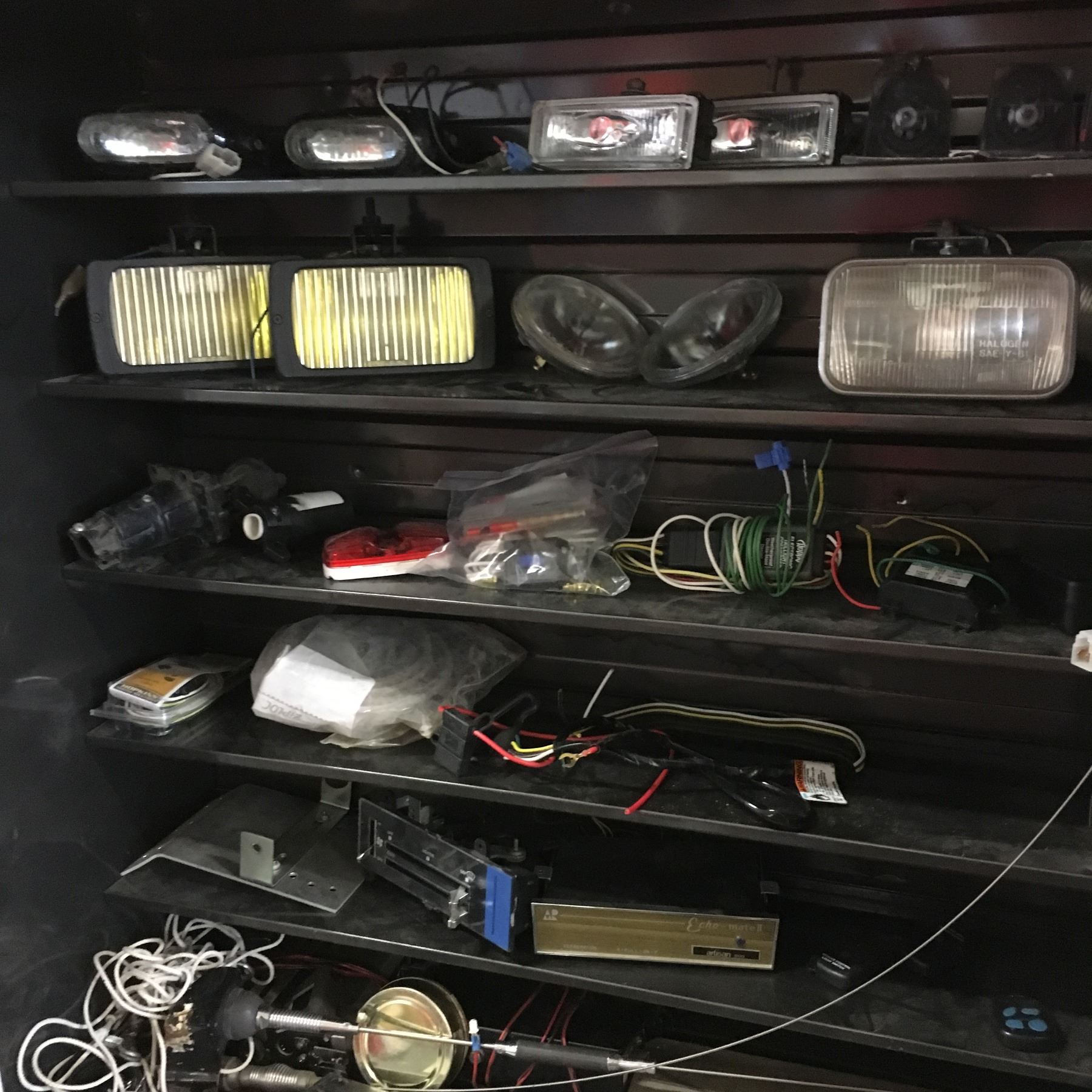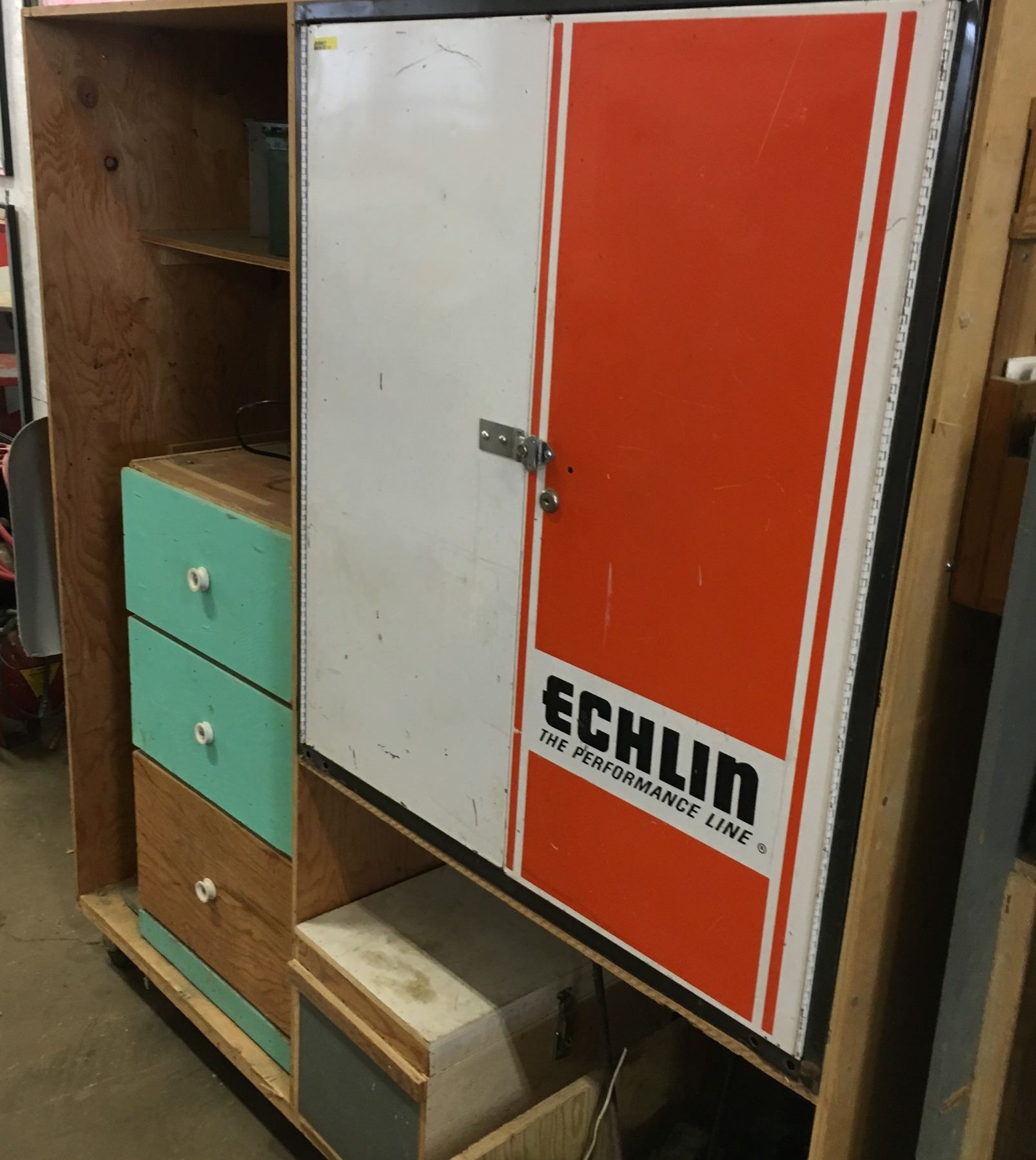 Rolling Shop Unit w/Built In Echlin Cabinet, Hitch, Jack, Automotive Lighting