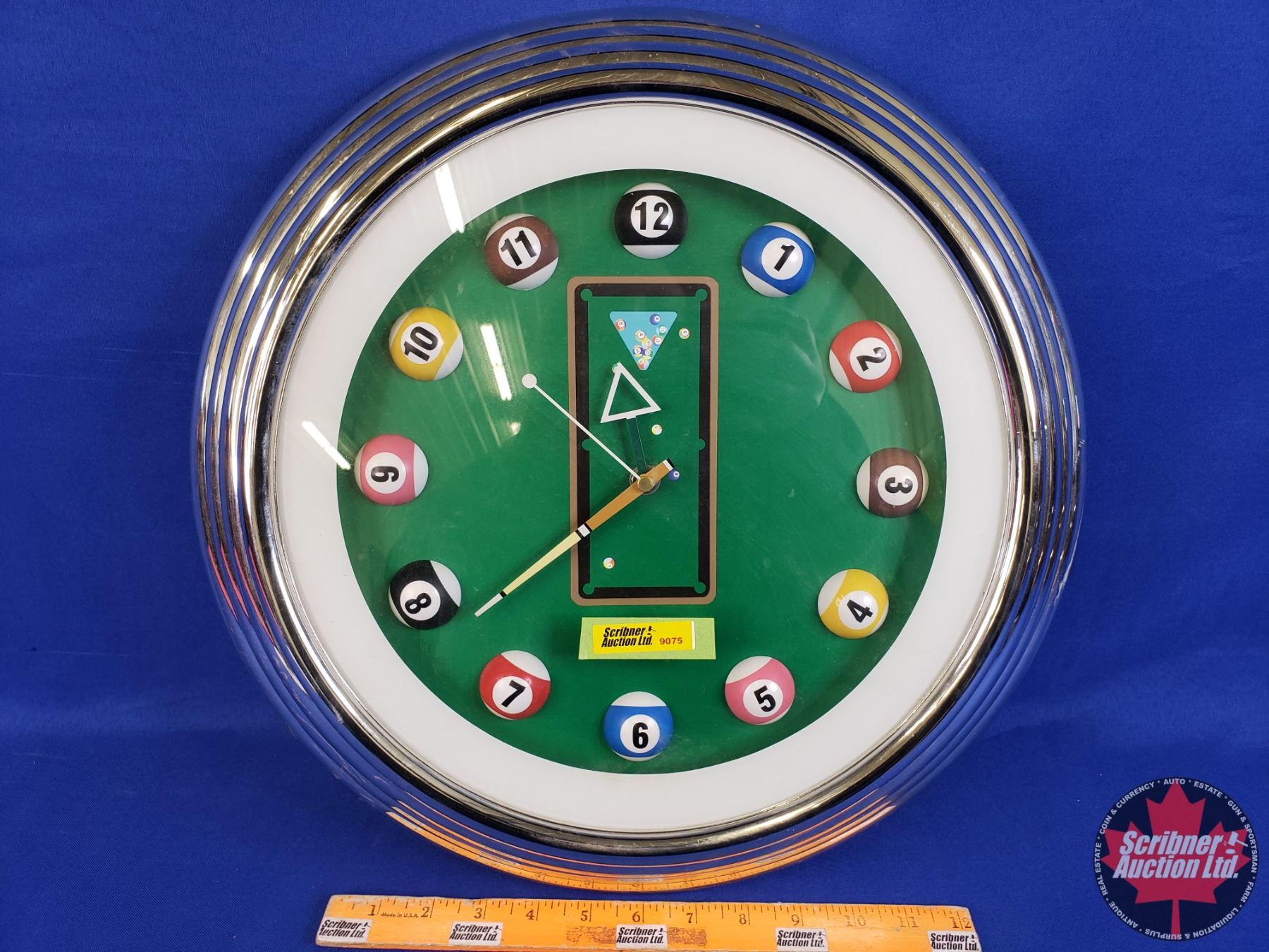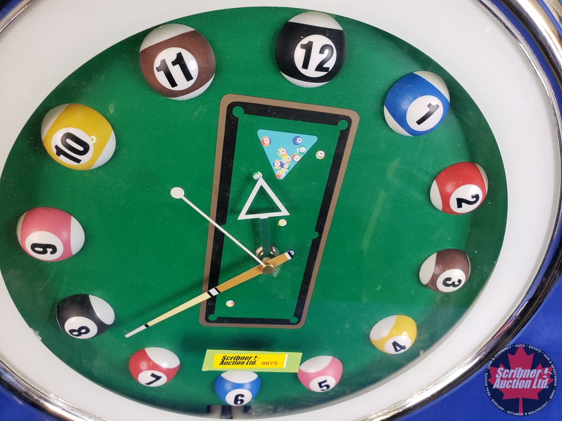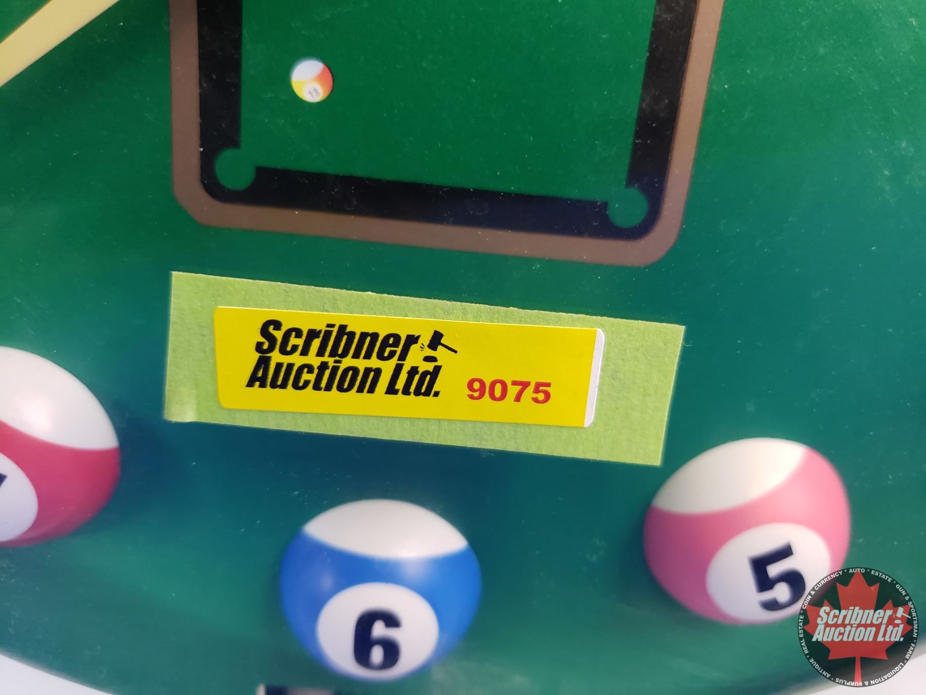 Round Wall Clock : Billiards/Pool Theme (Batt Op) (17"Dia) (SEE PICS!)