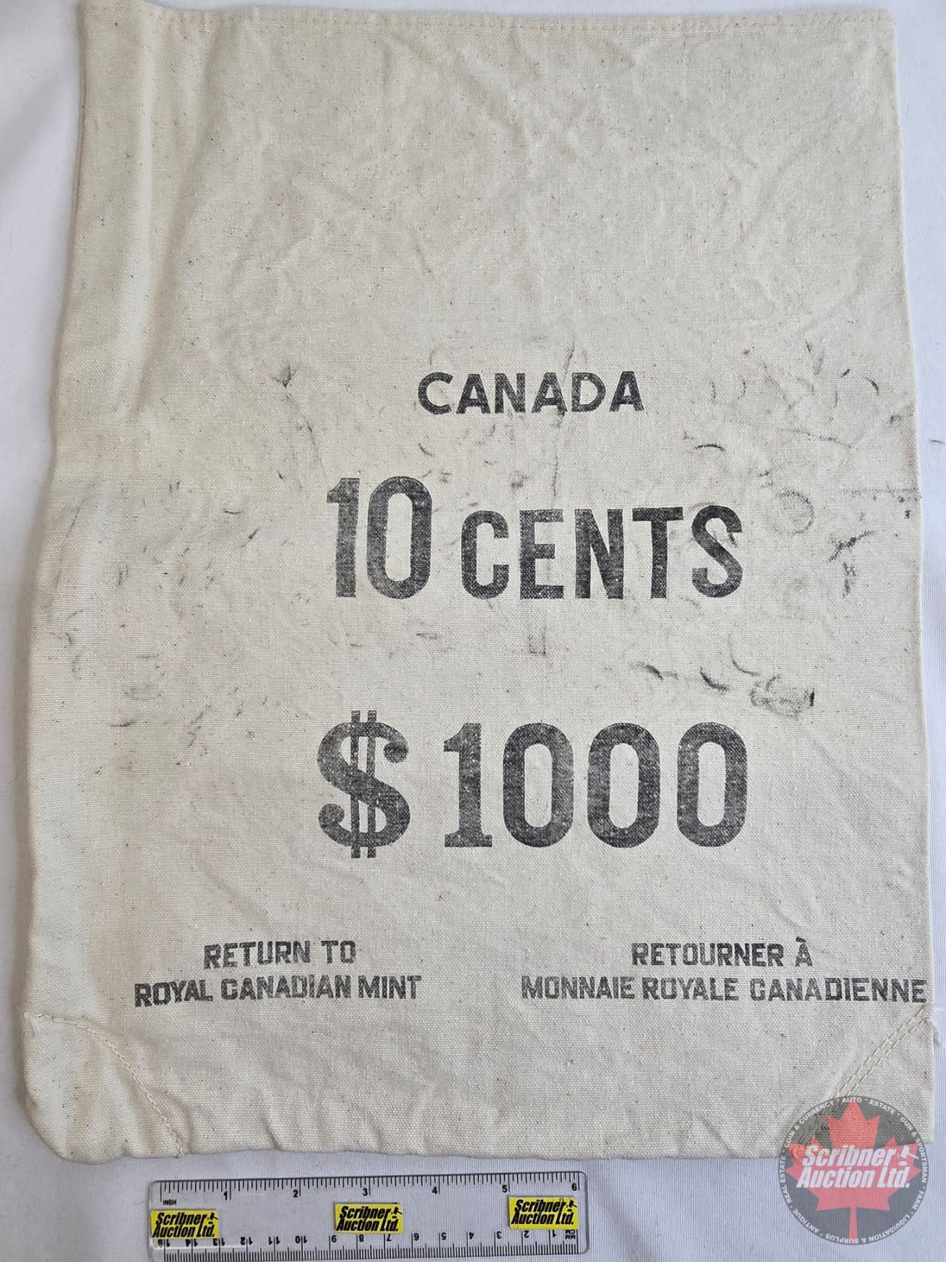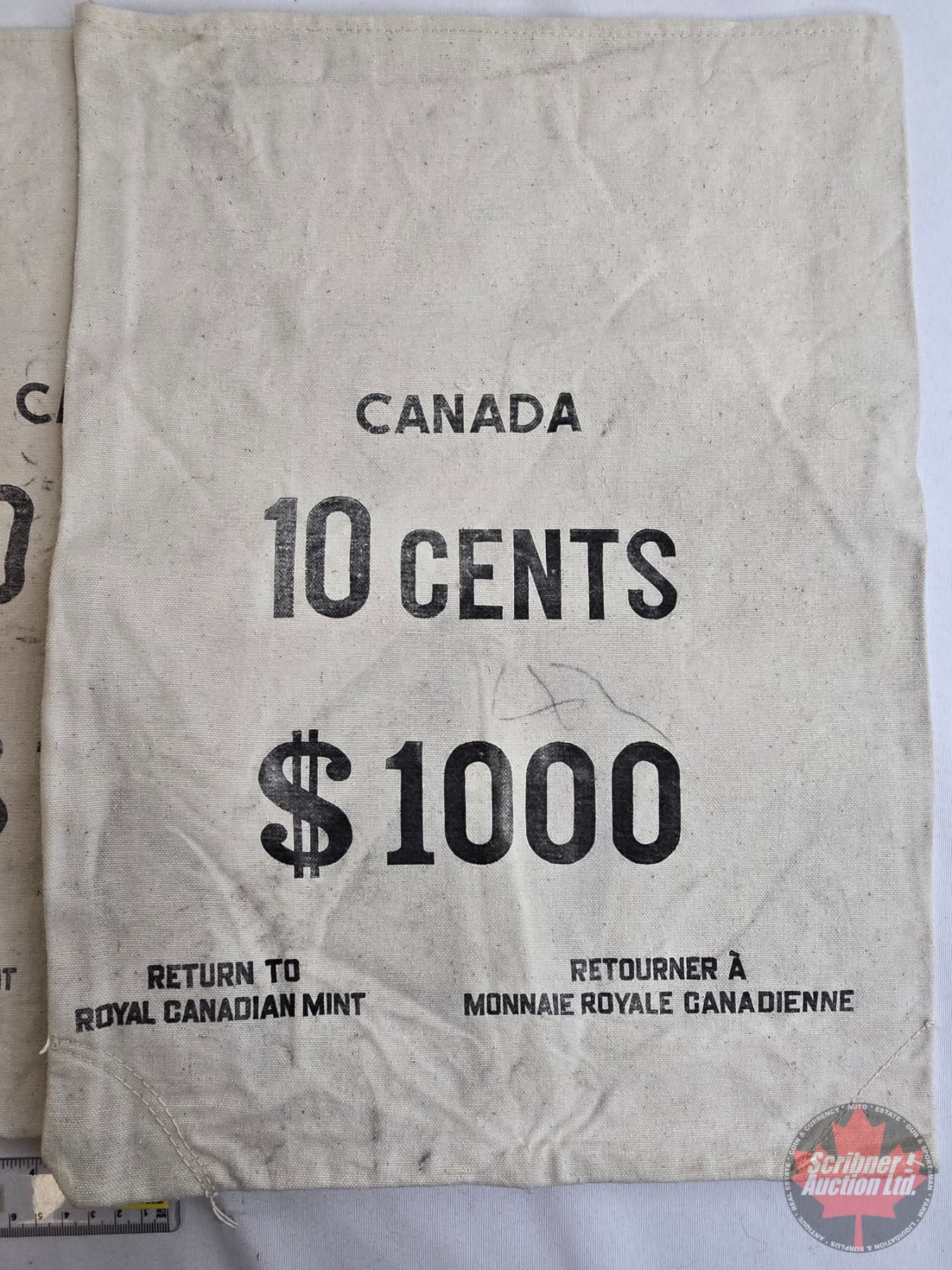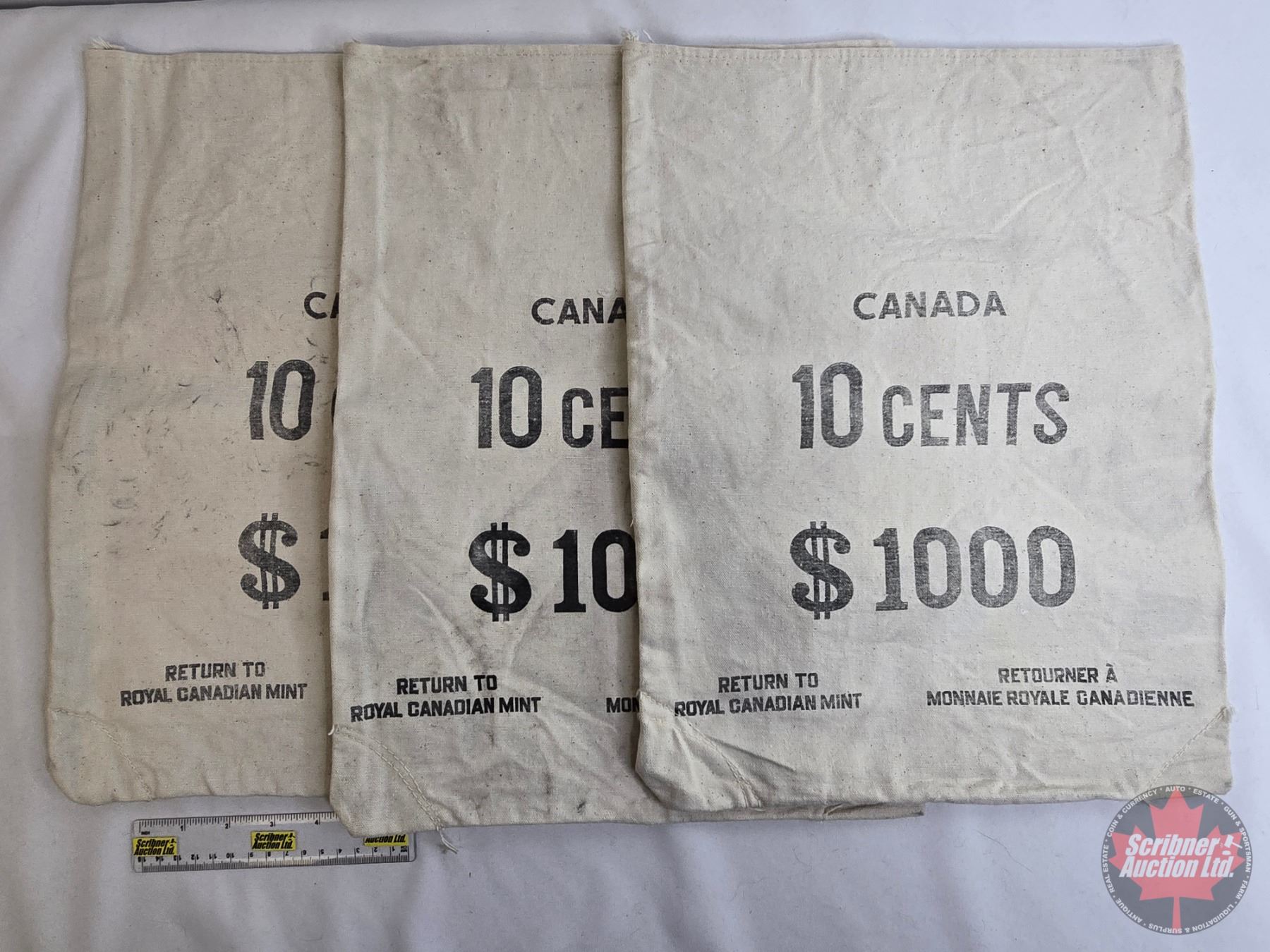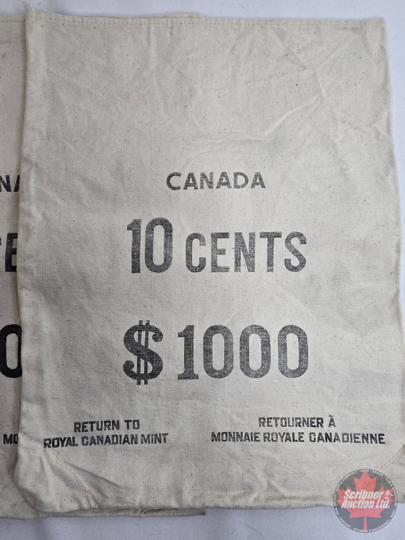 Royal Canadian Mint Money Sacks (3) : "10-CENTS" (SEE PICS!) (Listing & Descriptions are a GUIDE ONLY and are subject to changes, errors, additions or deletions. Please use the provided pictures to satisfy yourself to the Condition and/or Grades. Please Read & Understand All Terms & Conditions for this Auction Sale.)