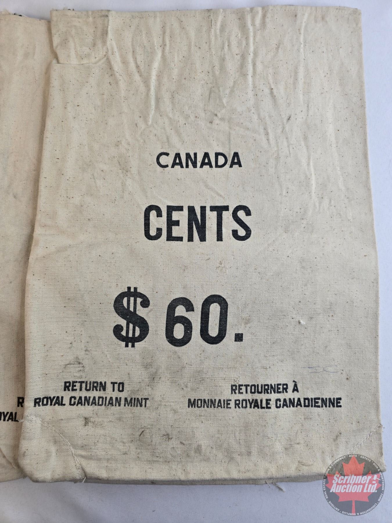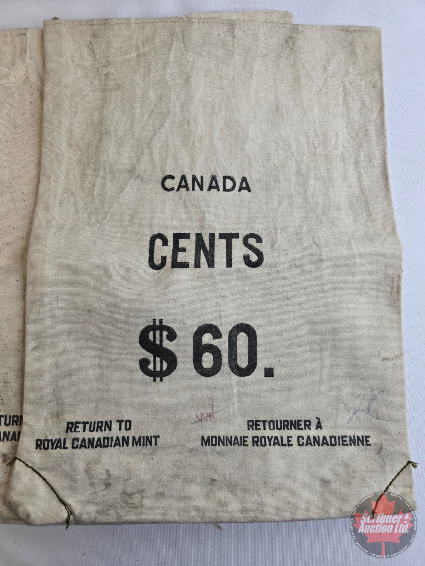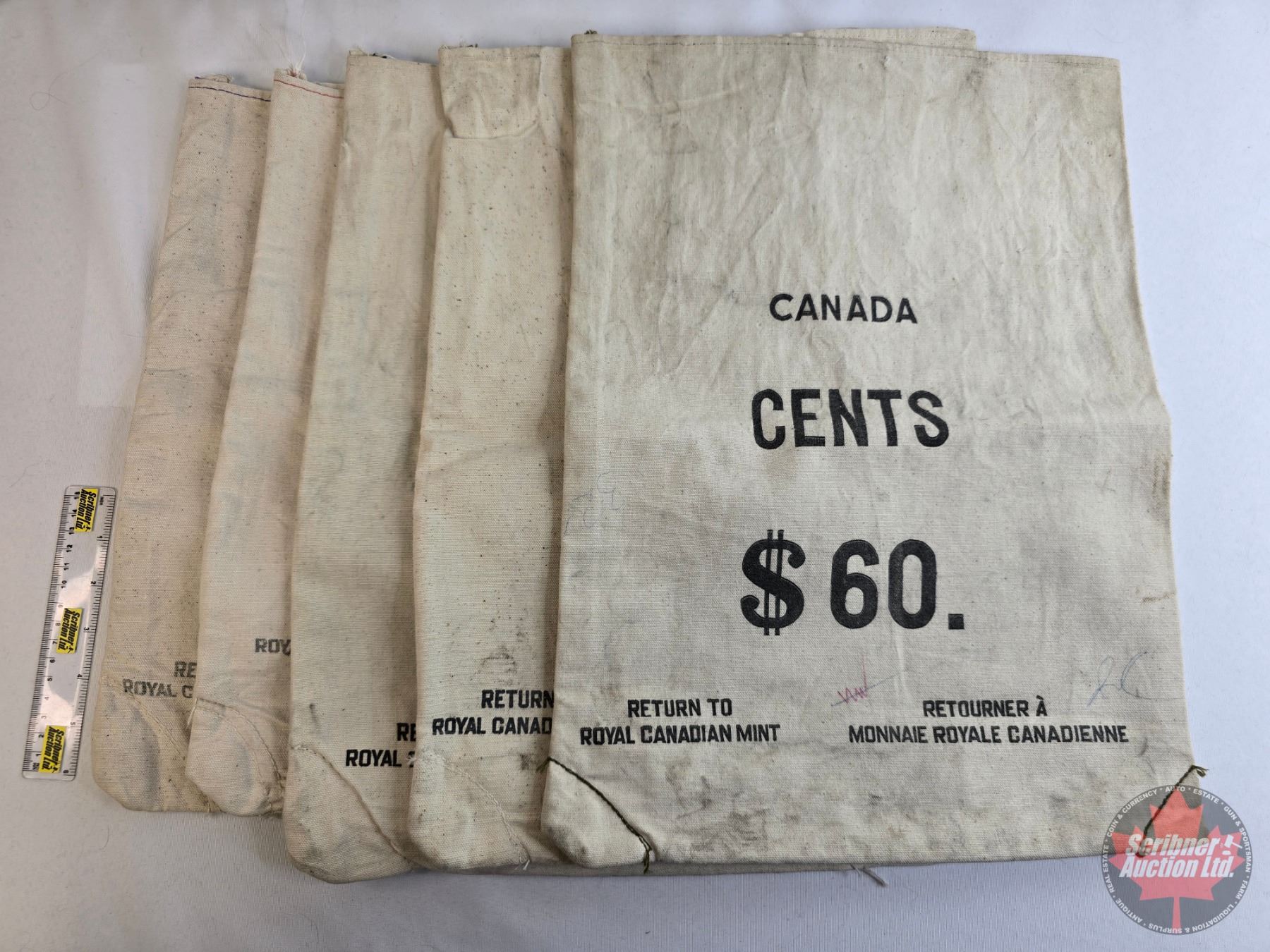 Royal Canadian Mint Money Sacks (5) : "1-CENT" (SEE PICS!) (Listing & Descriptions are a GUIDE ONLY and are subject to changes, errors, additions or deletions. Please use the provided pictures to satisfy yourself to the Condition and/or Grades. Please Read & Understand All Terms & Conditions for this Auction Sale.)