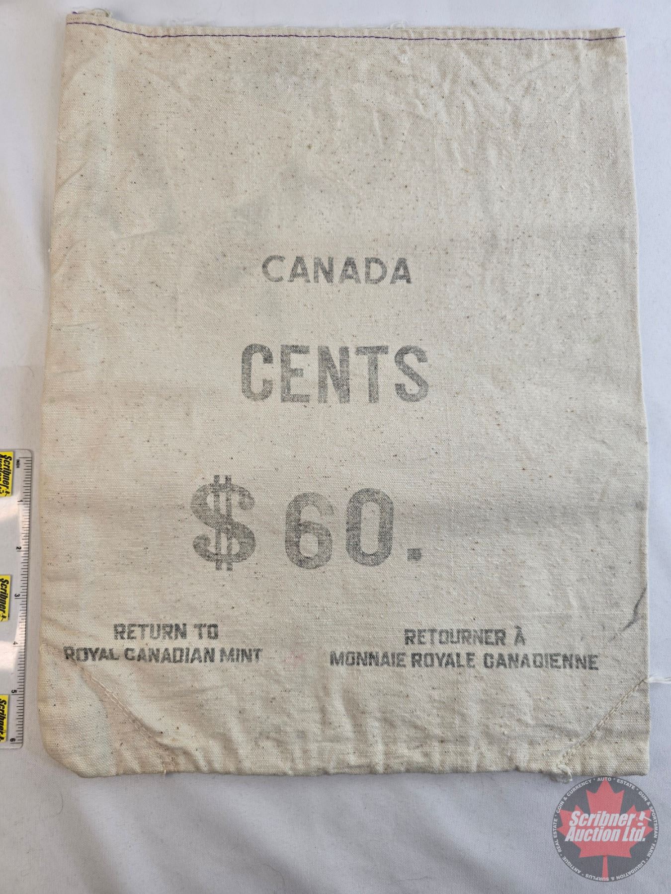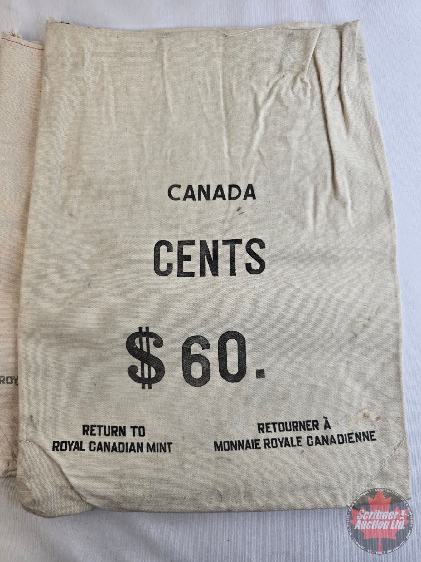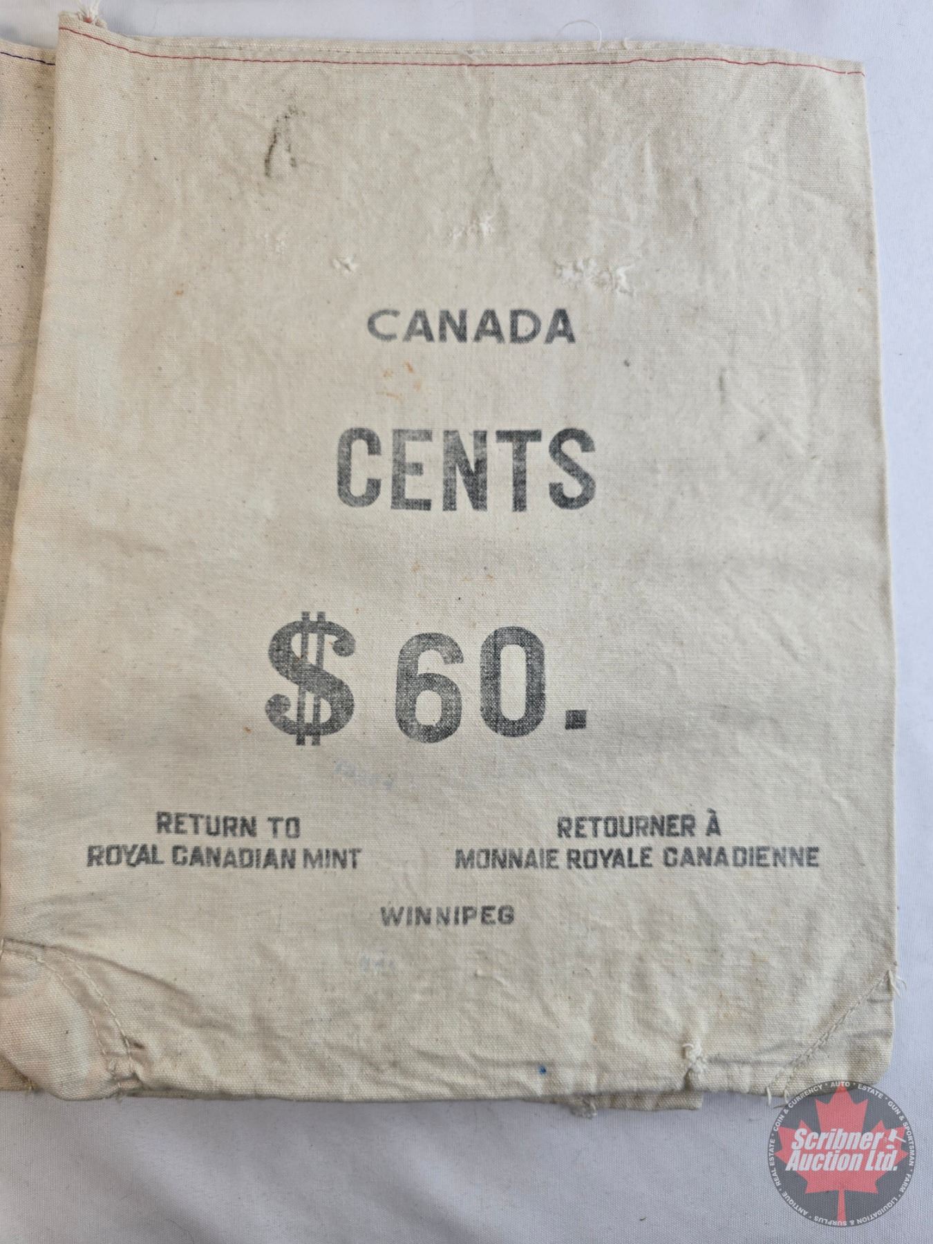 Royal Canadian Mint Money Sacks (5) : "1-CENT" (SEE PICS!) (Listing & Descriptions are a GUIDE ONLY and are subject to changes, errors, additions or deletions. Please use the provided pictures to satisfy yourself to the Condition and/or Grades. Please Read & Understand All Terms & Conditions for this Auction Sale.)