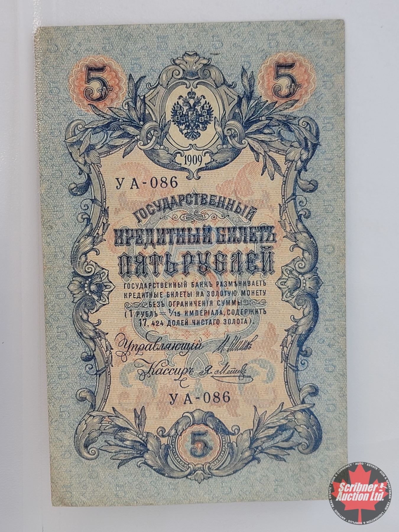 Russia 5 Roubles 1909 (See Pics for Varieties, Conditions, Serial Numbers, Printing Dates & Signatures)