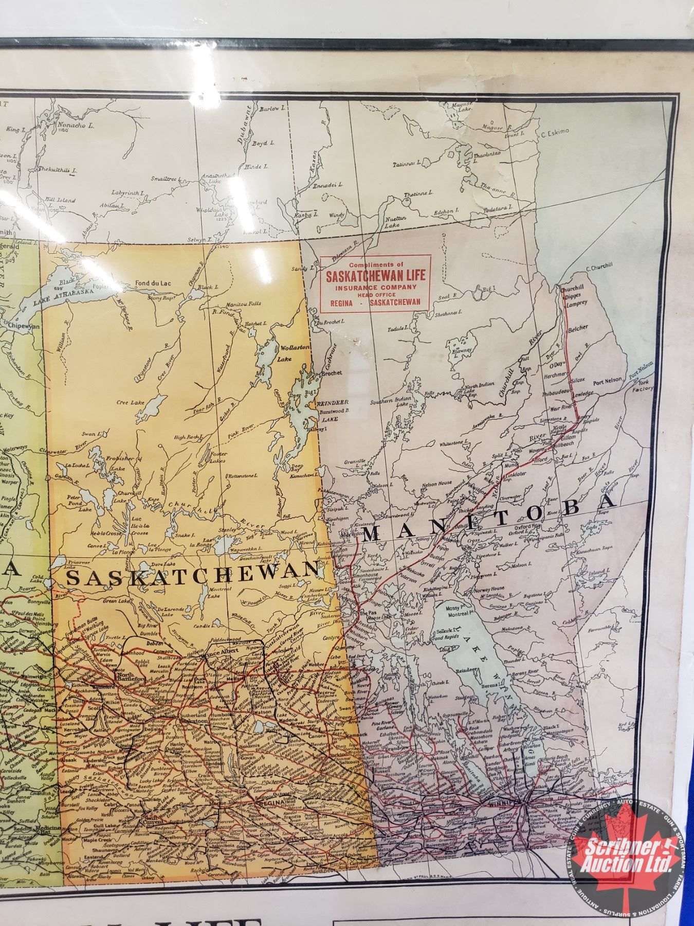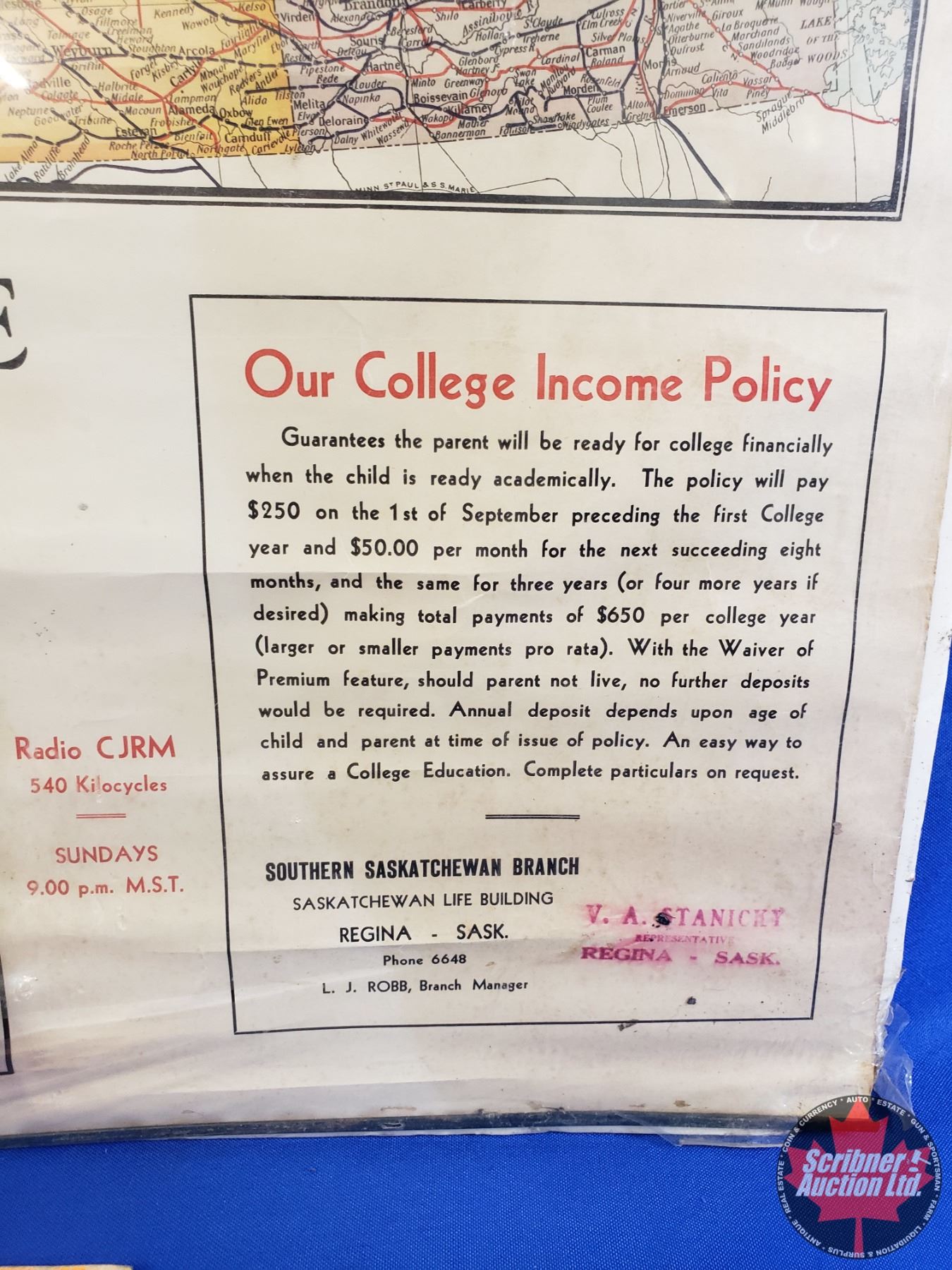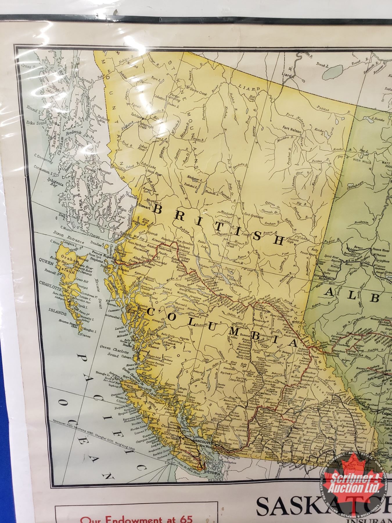 "SASKATCHEWAN LIFE INSURANCE COMPANY" 1937 Calendar & Map (28"H x 30-1/2"W) (SEE PICS!)