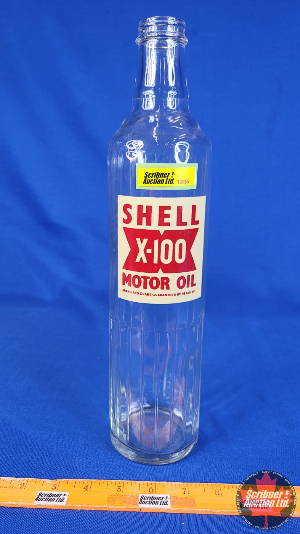 SHELL X-100 Pint Motor Oil Bottle (14"H x 3"Dia) (SEE PICS!)