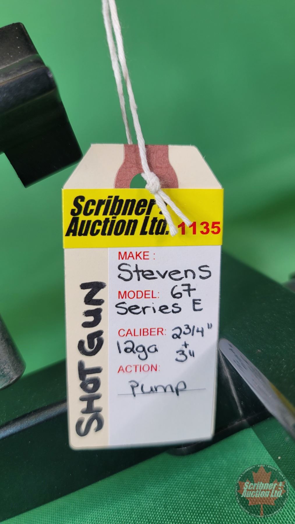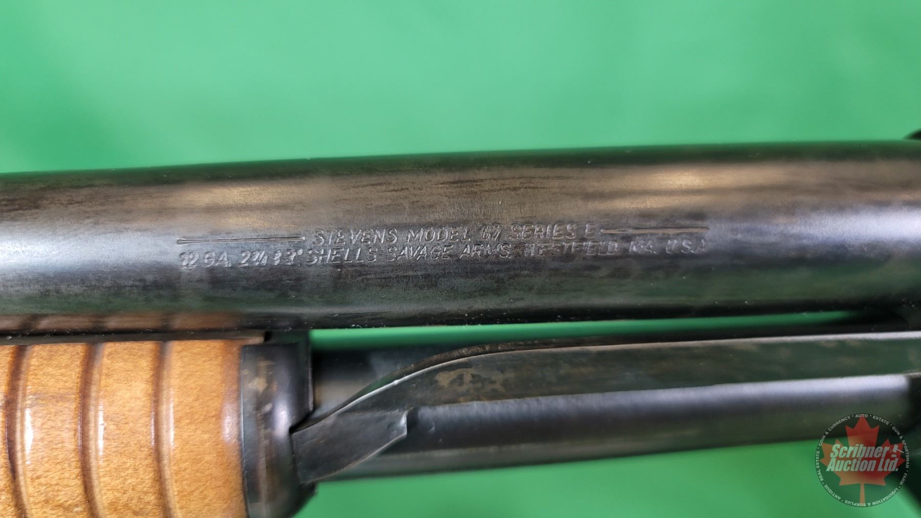 SHOTGUN: Stevens 67 Series E : Pump Action 12ga (2-3/4" & 3") (BBL 30") (S/N#E624546) (SEE PICS!) Open House Preview on Thursday April 10th from 2pm-7pm at the Scribner Auction Pavilion. (Listing & Descriptions are a GUIDE ONLY and are subject to changes, errors, additions or deletions. Please use the provided pictures to satisfy yourself to the Condition and/or Grades.) INVENTORY # 127