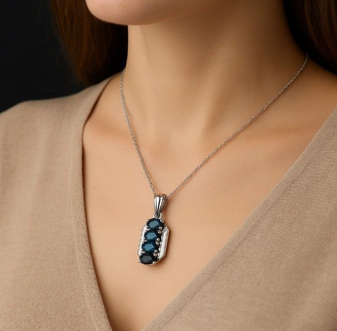 SILVER (1.45g), GENUINE SAPPHIRE (0.85ct) PENDANT