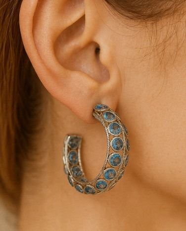 SILVER (2.1g), BLUE SAPPHIRE (APP 1.56CTct) EARRINGS
