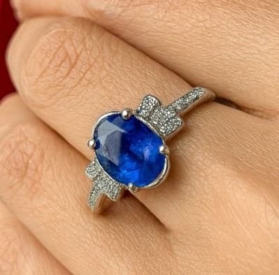 SILVER (3.29g), GENUINE SAPPHIRE (1.5ct) RING