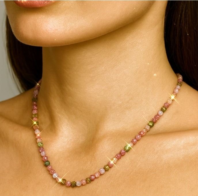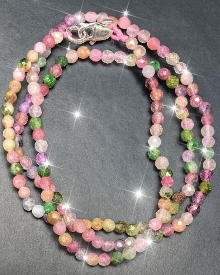 SILVER (4.78g), GENUINE TOURMALINE NECKLACE 16"