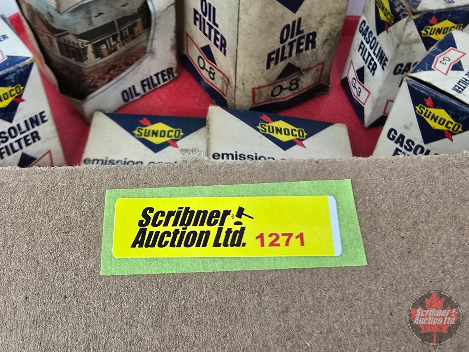 SUNOCO Auto Parts Boxes (Some with Contents - Some Empty) (Variety Filters etc)