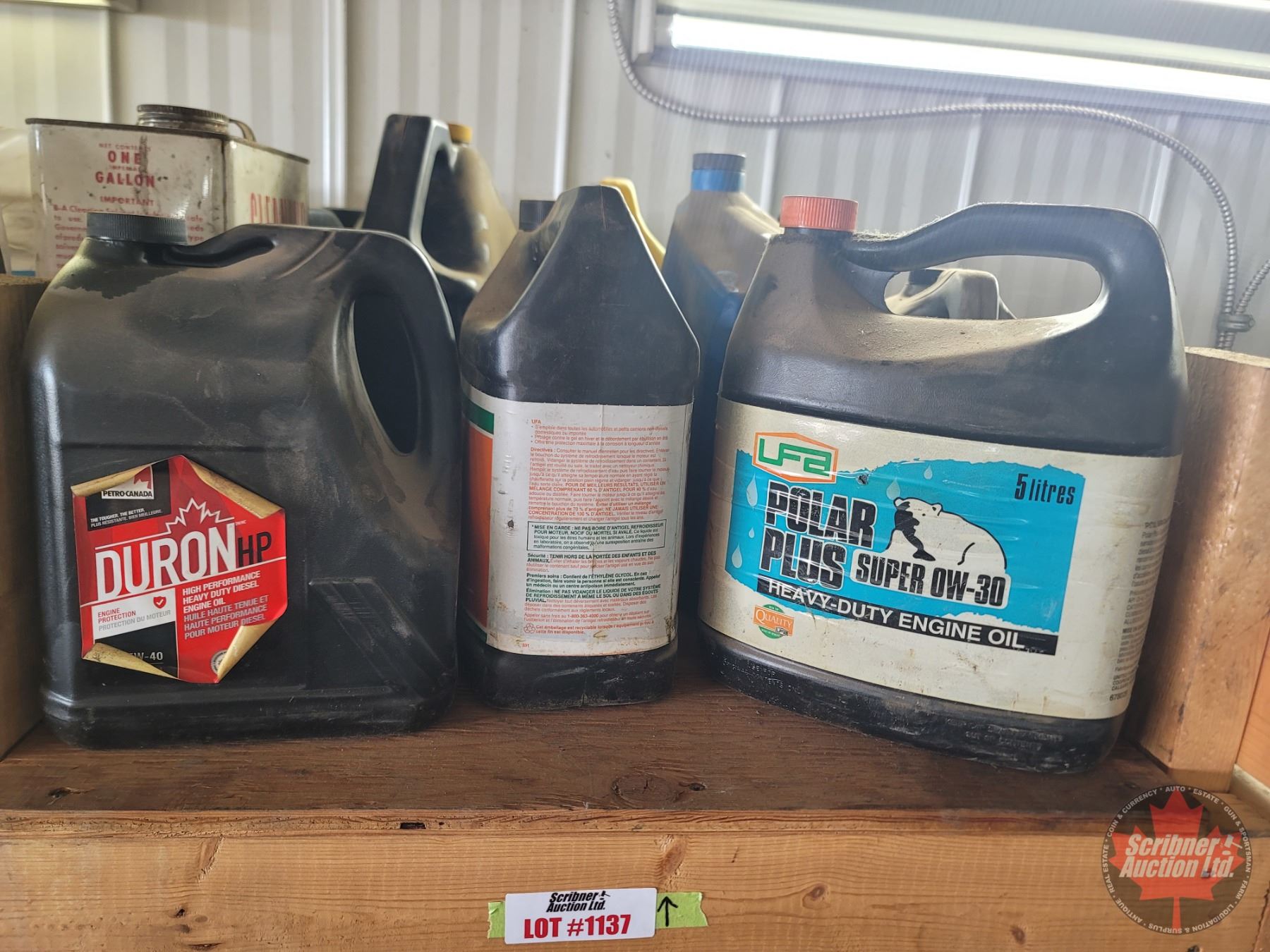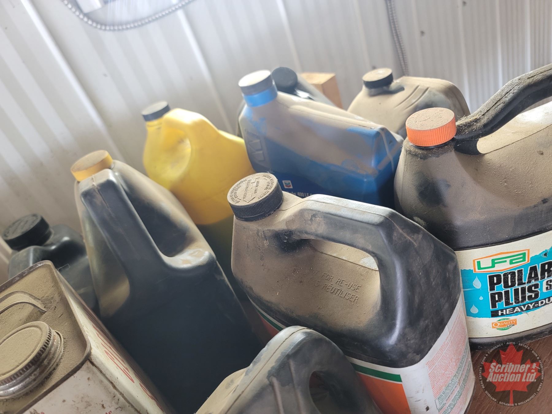 Shelf Lot Grouping ~ Shop Fluids : Variety Oil & Antifreeze Jugs (Partial Full)