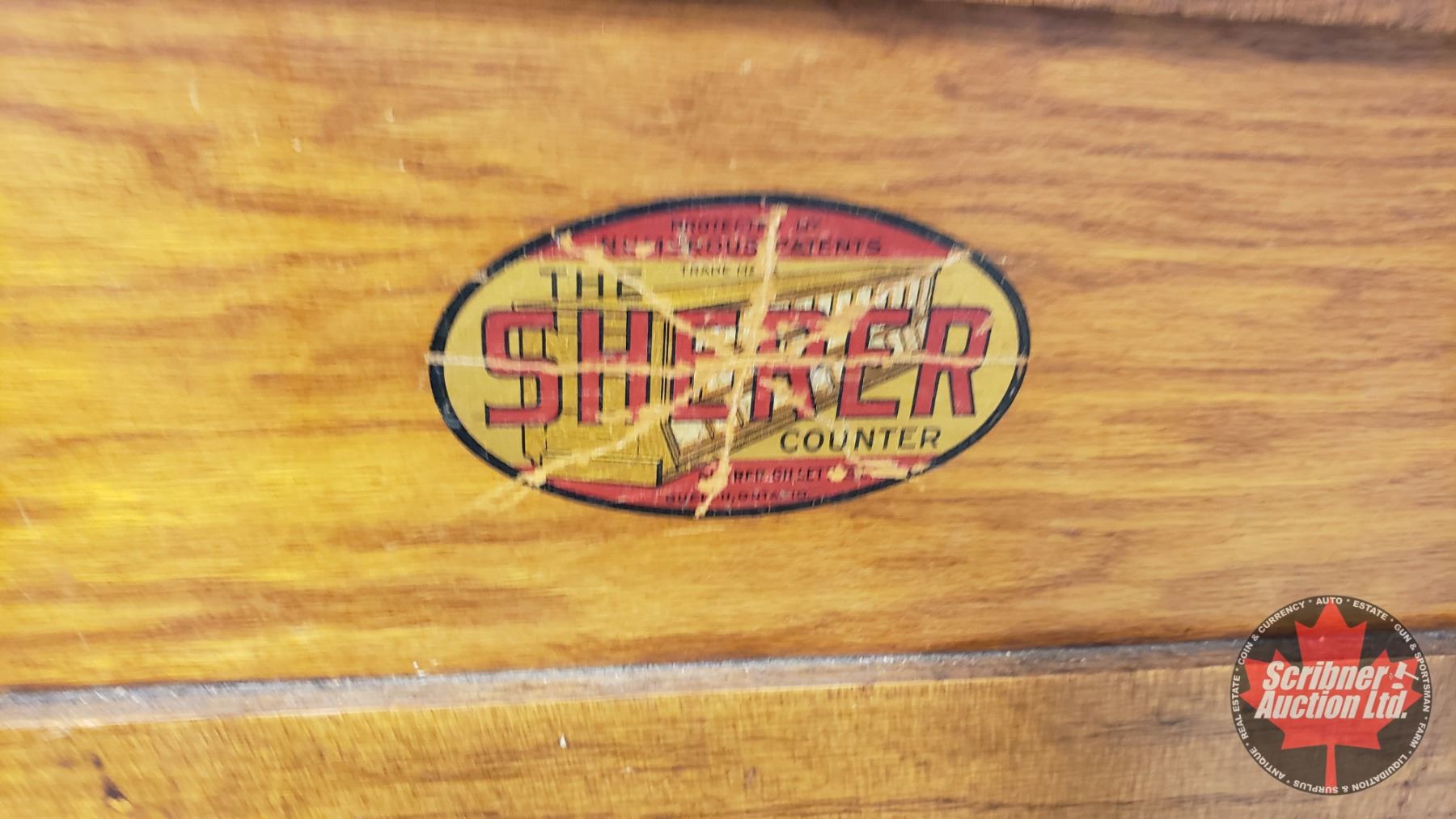 "Sherer" General Store Counter ("Clean Foods Attractively Displayed") Multiple Drawers for Storage - Various Sizes (See Pics!) (34"H x 189"W Total x 29"D) (NOTE: This Counter has been cut into 2 Sections : 102-1/2" & 86-1/2")