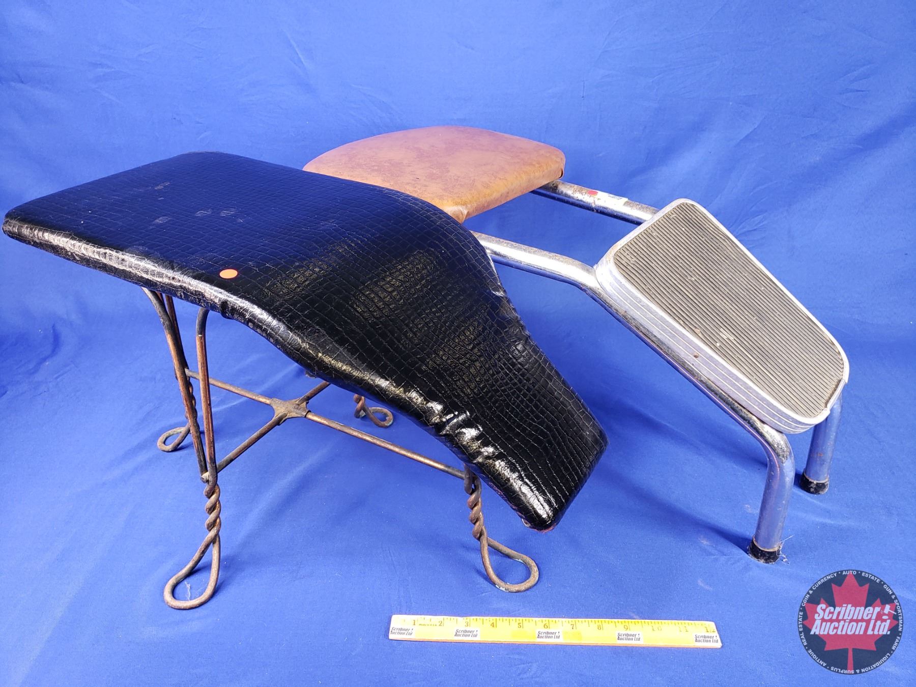 Shoe Store Fitting Stools (2) (See Photos for Makers Stamp "The Chicago Wire Chair Co.") (Largest Measures: 13"H x 26"W x 12-1/2"D) (SEE PICS!)