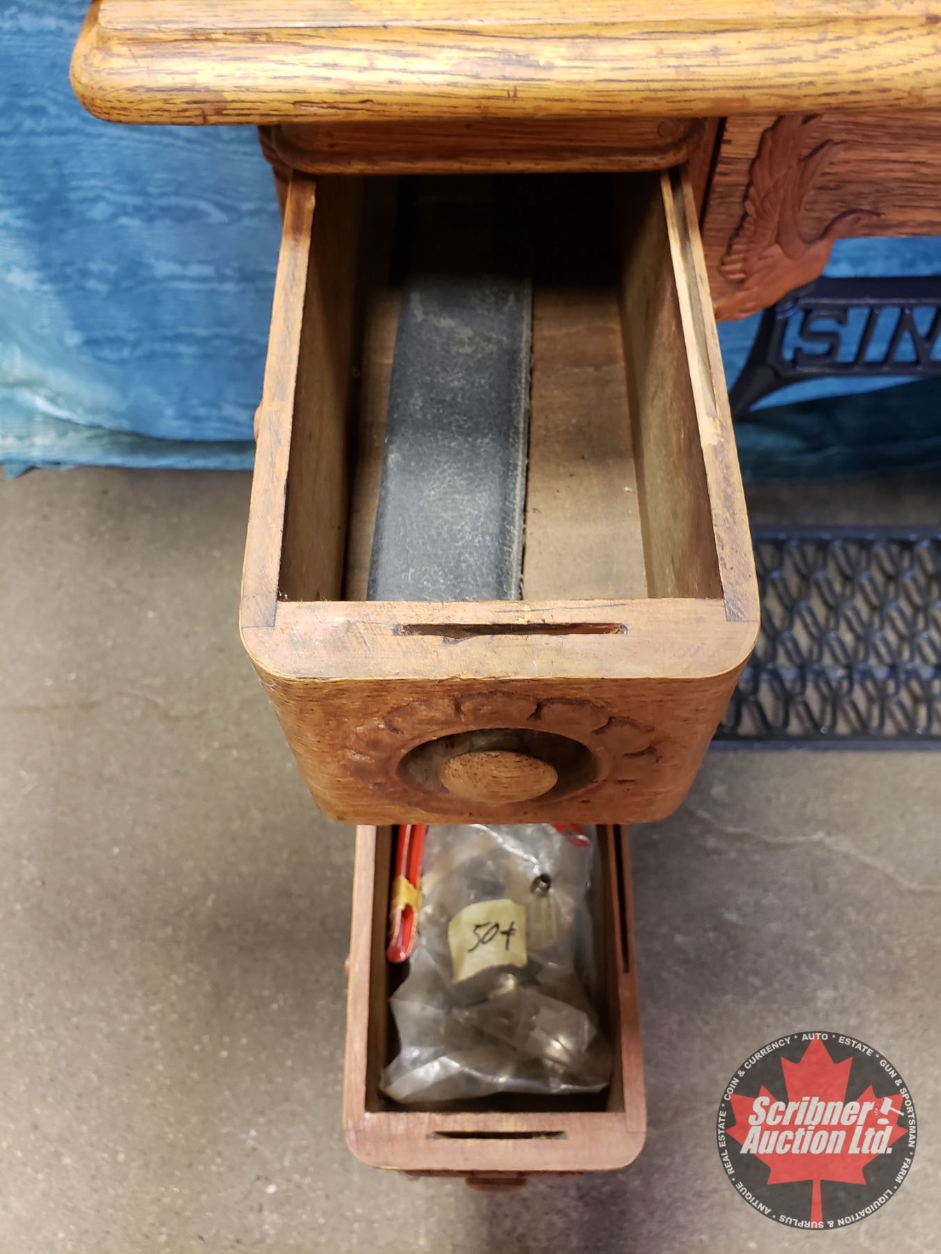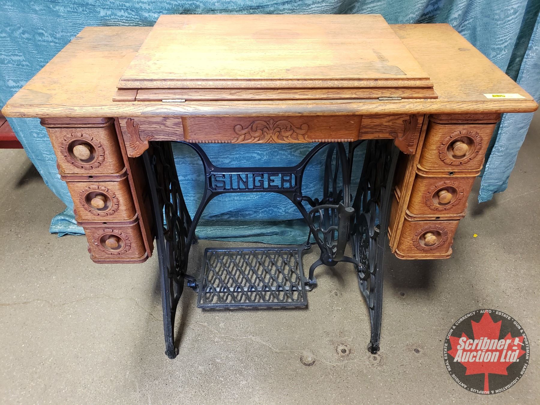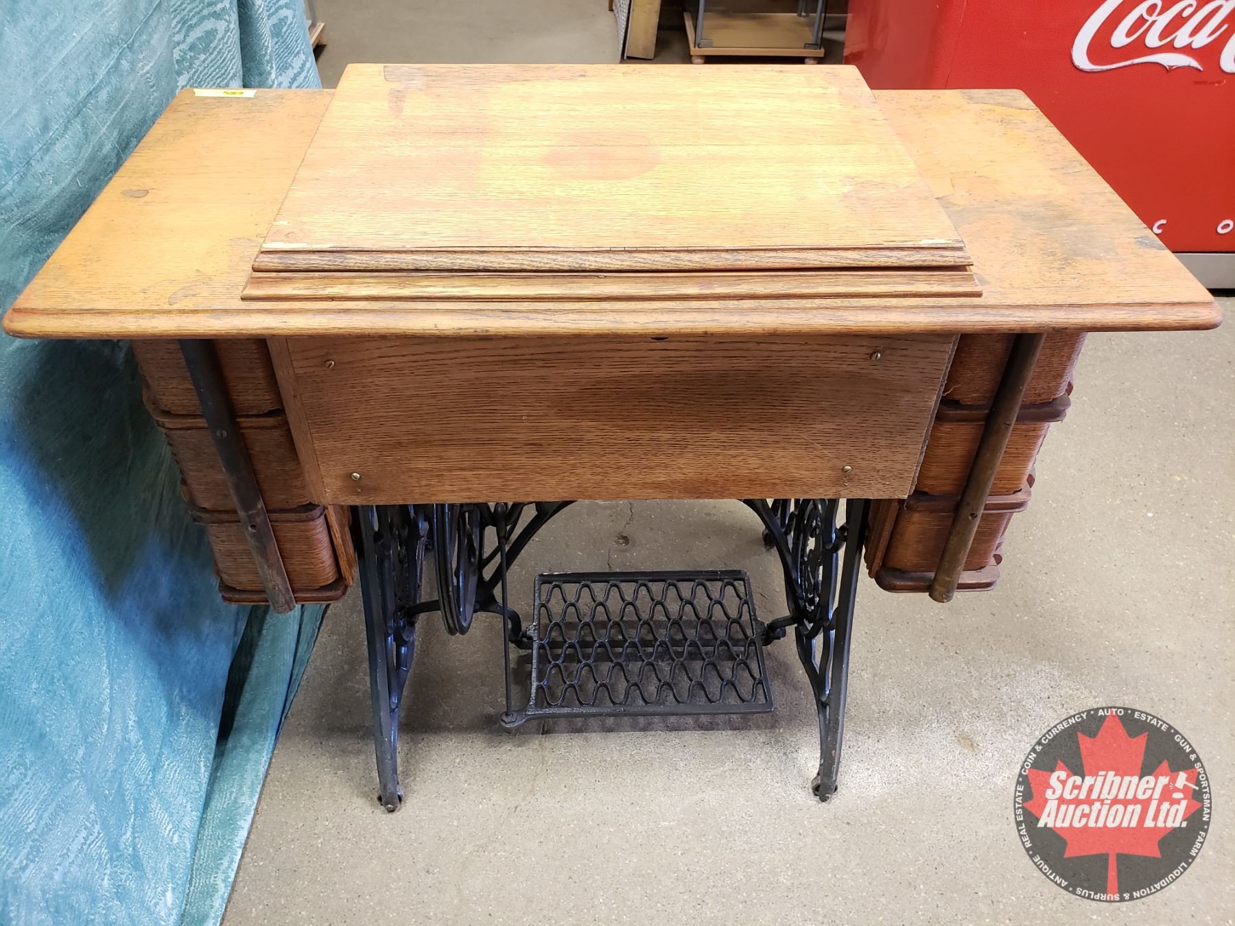 Singer Treadle Sewing Machine (Converted to Electric)(31"H x 36-1/2"W x 18"D)