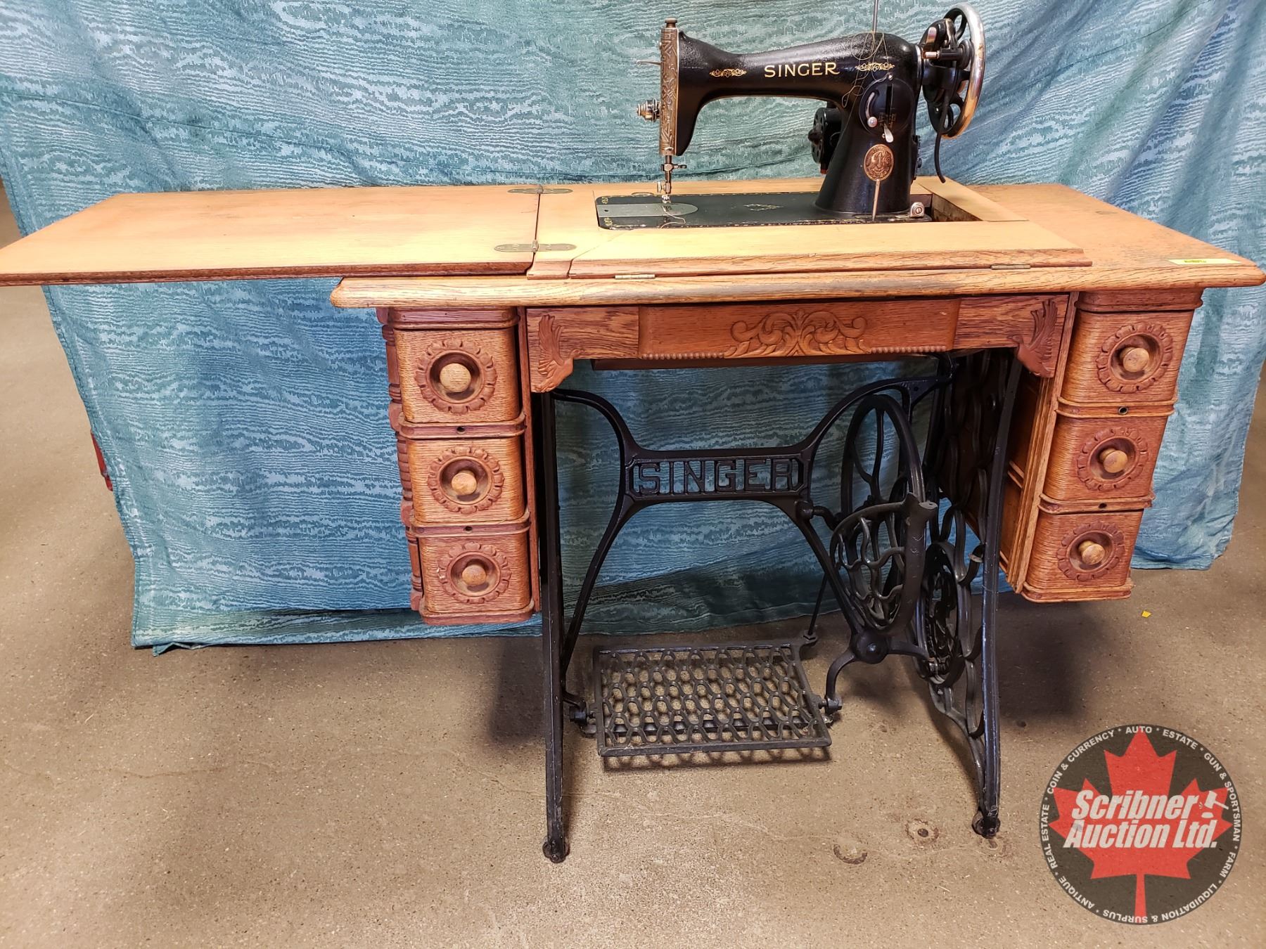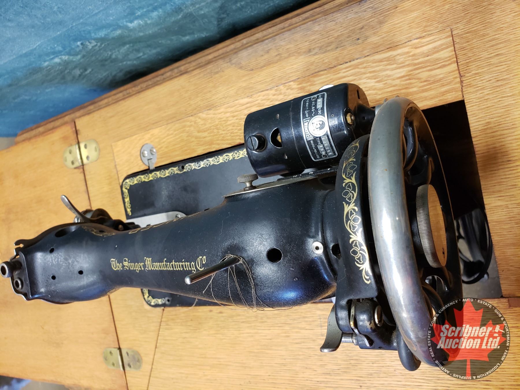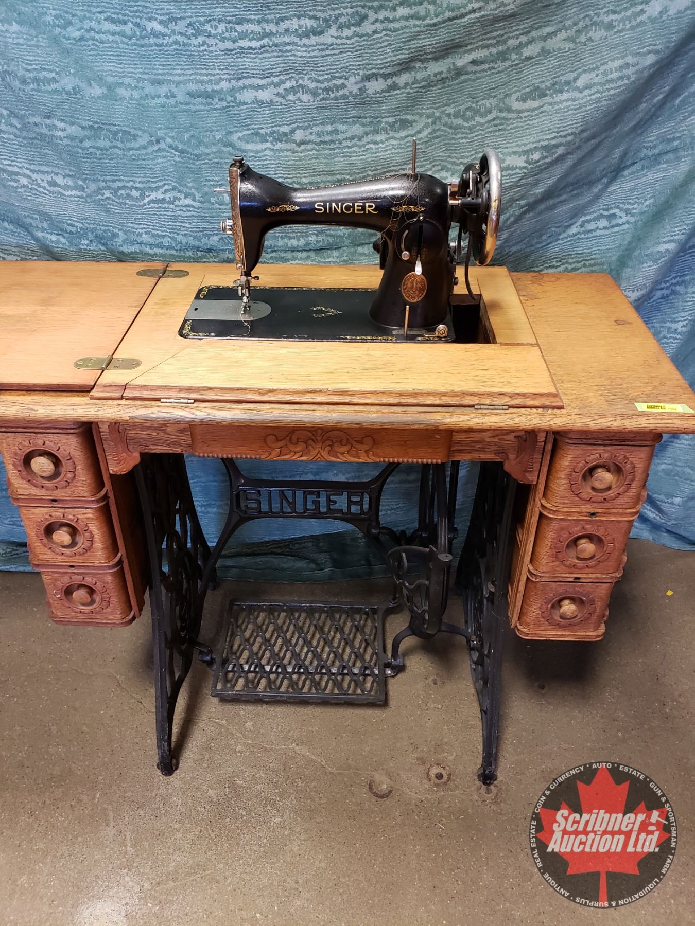 Singer Treadle Sewing Machine (Converted to Electric)(31"H x 36-1/2"W x 18"D)