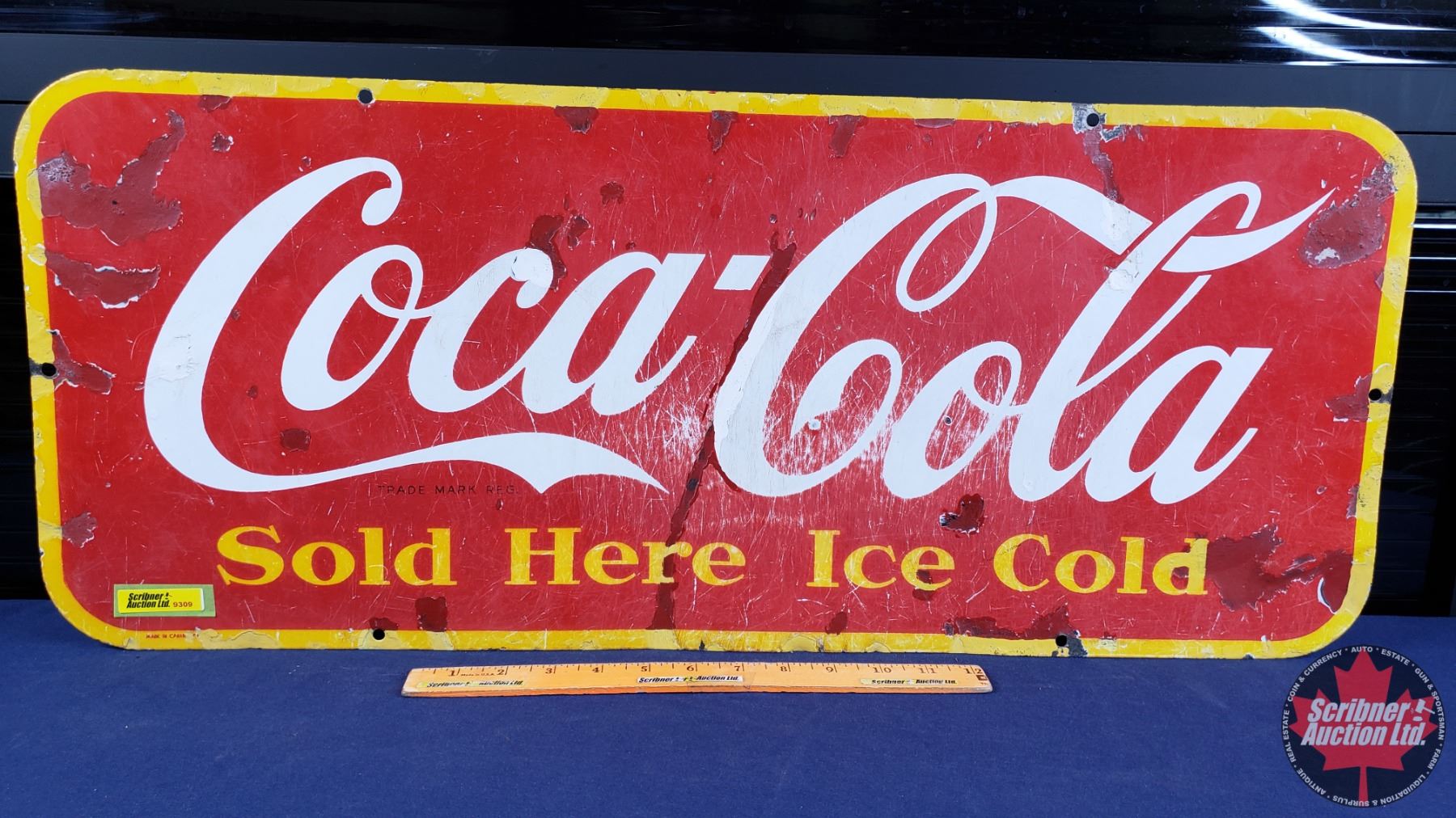 Single Side Enamel Sign "Coca-Cola Sold Here Ice Cold" (12-1/4"H x 29-1/4"W) (Note: paint touchups) (SEE PICS!)