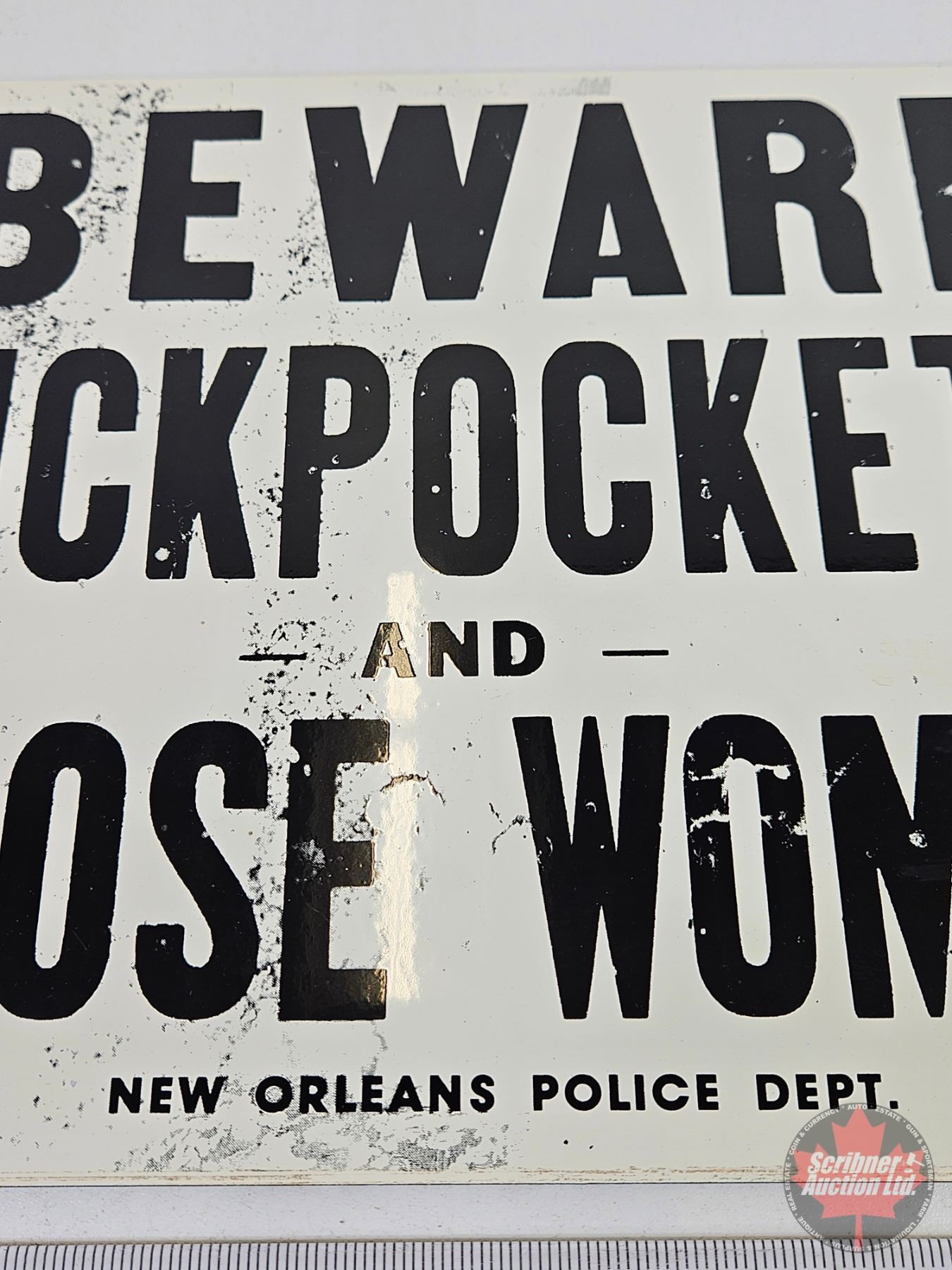 BEWARE PICKPOCKETS AND LOOSE WOMEN NEW ORLEANS POLICE DEPT.