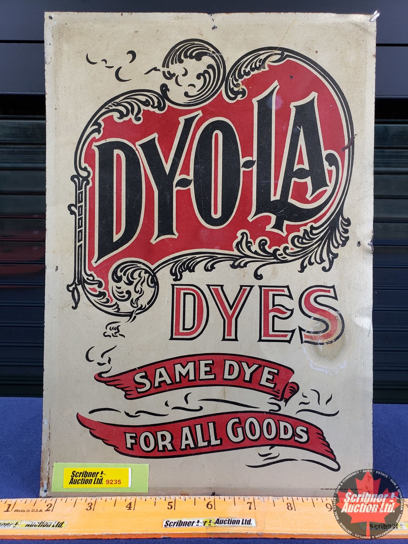 Single Side Tin Sign "DY-O-LA DYES" (12-1/2"H x 8-1/2"W) (SEE PICS!)
