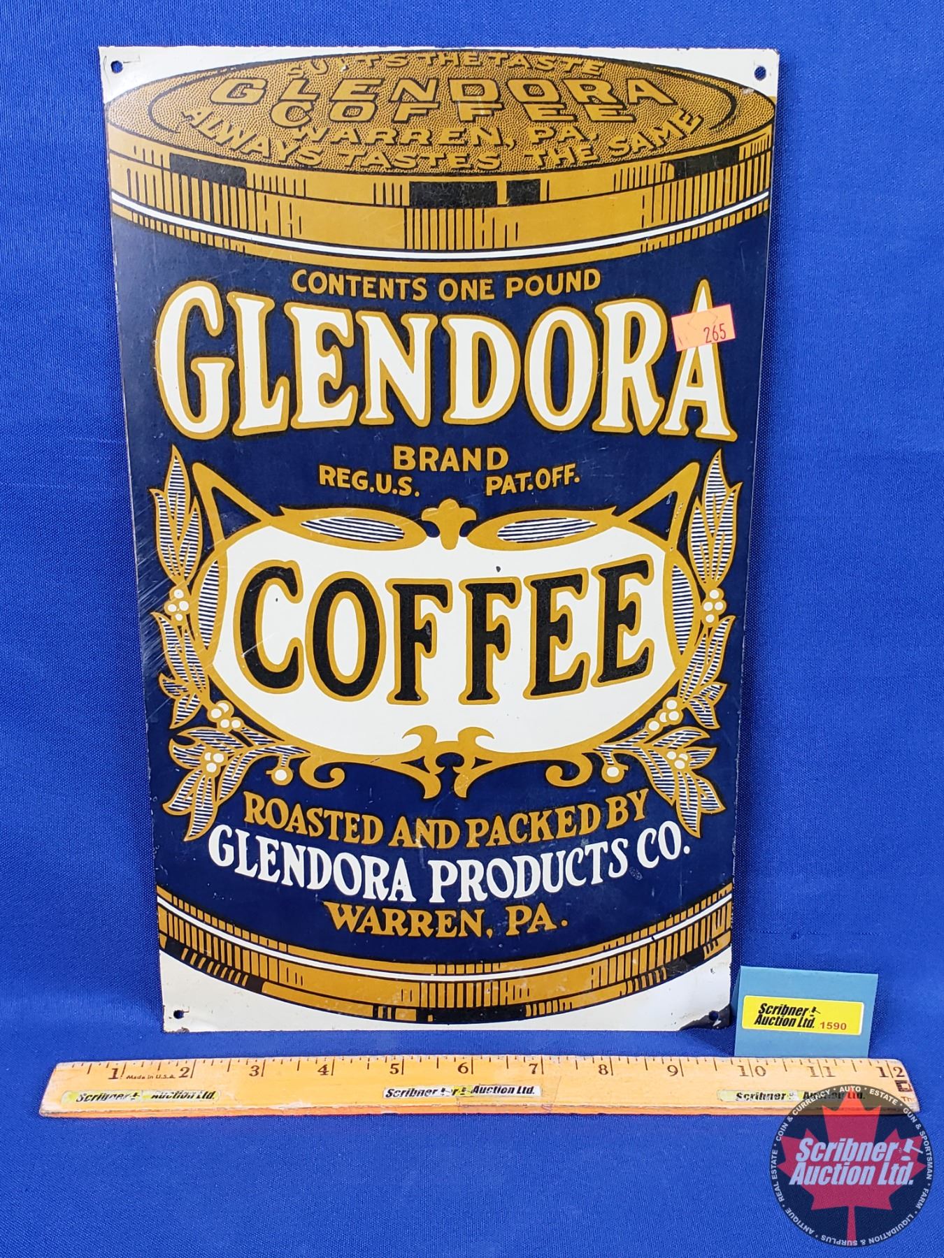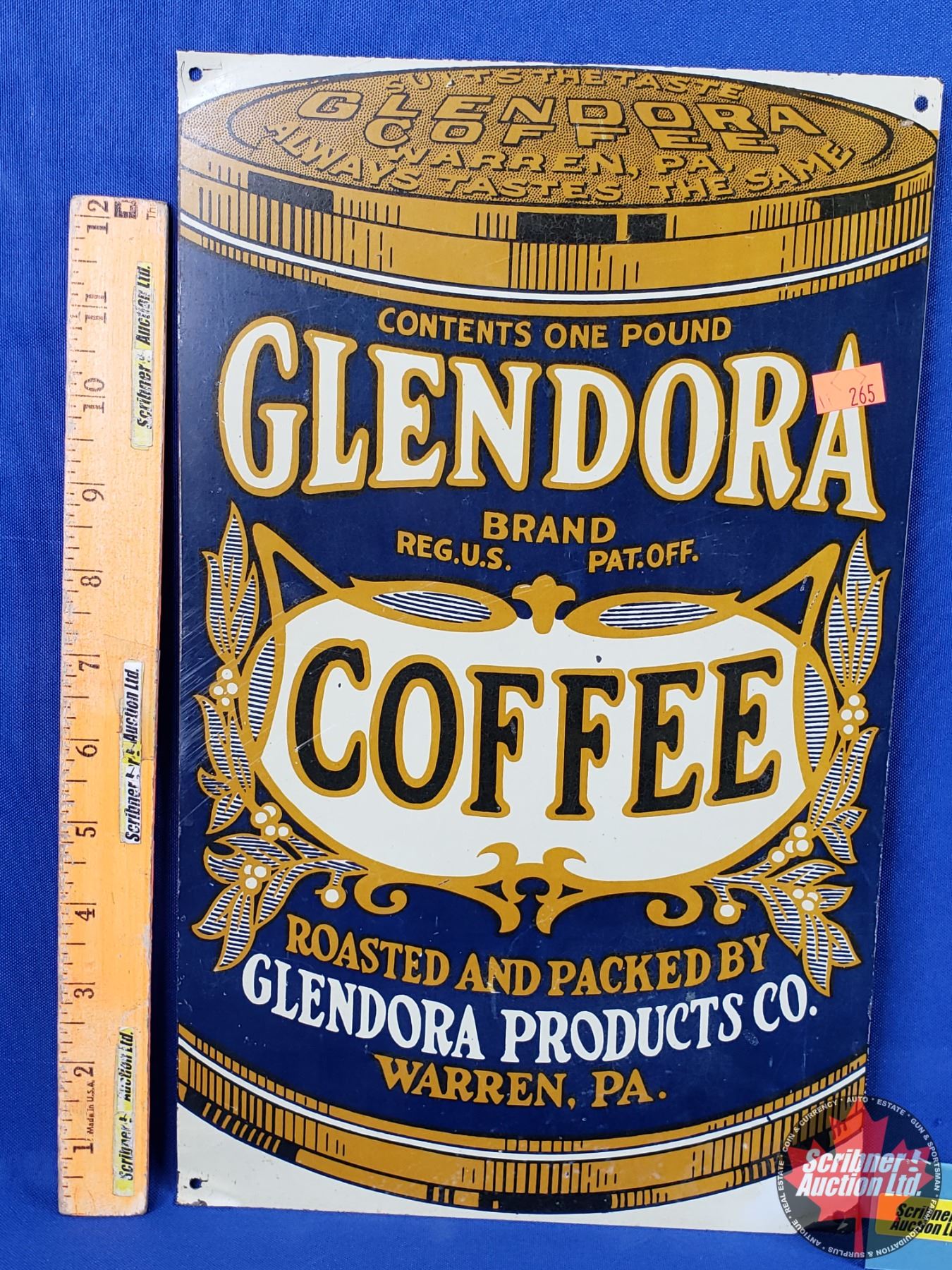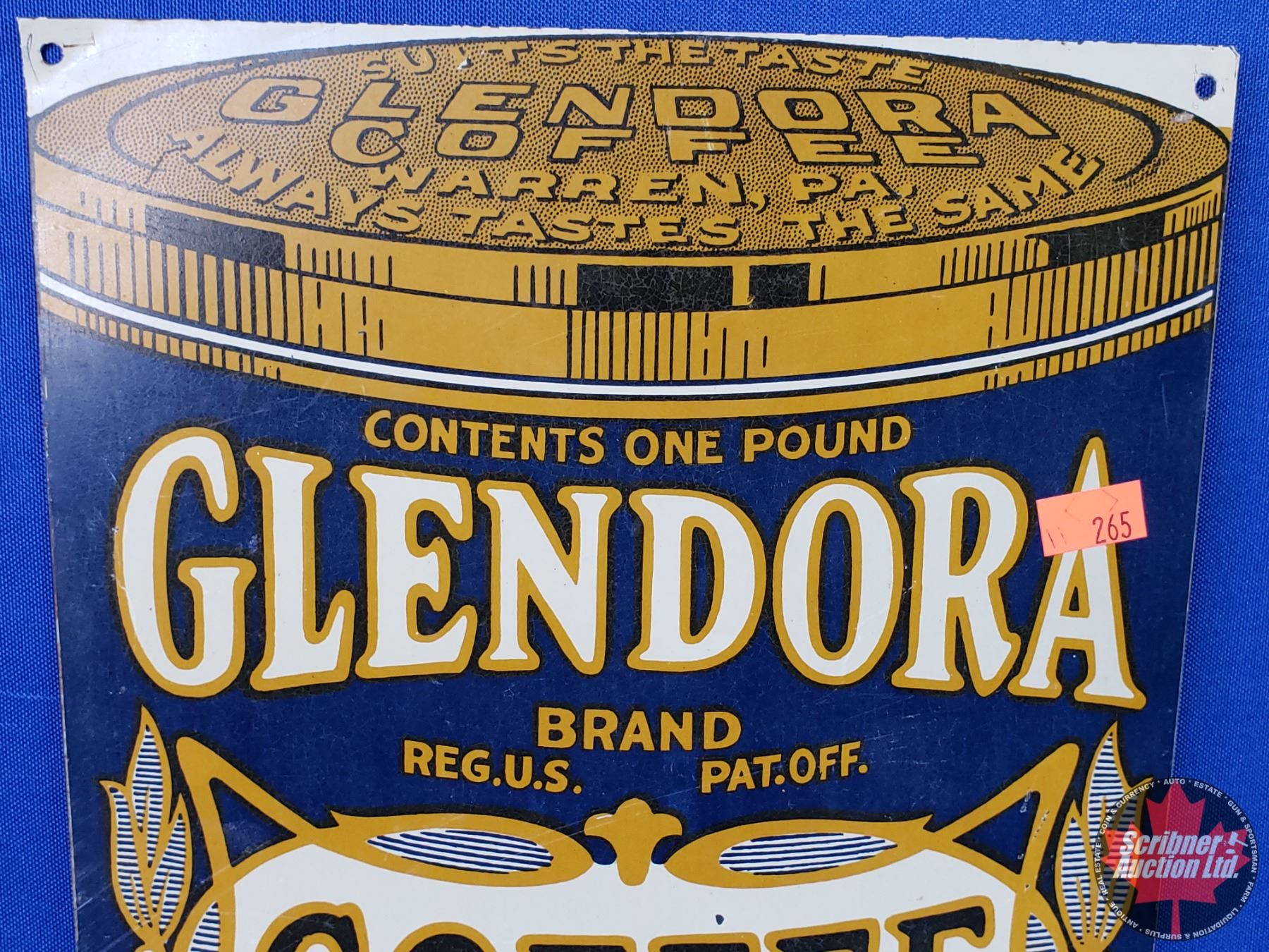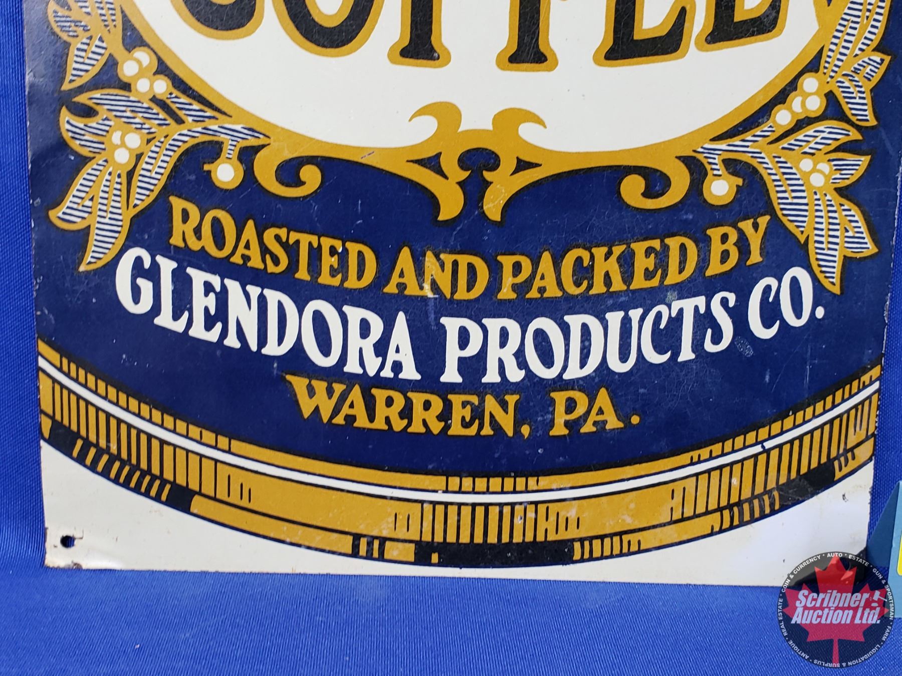Single Side Tin Sign : GLENDORA COFFEE (14"H x 8-1/2"W) (SEE PICS!)