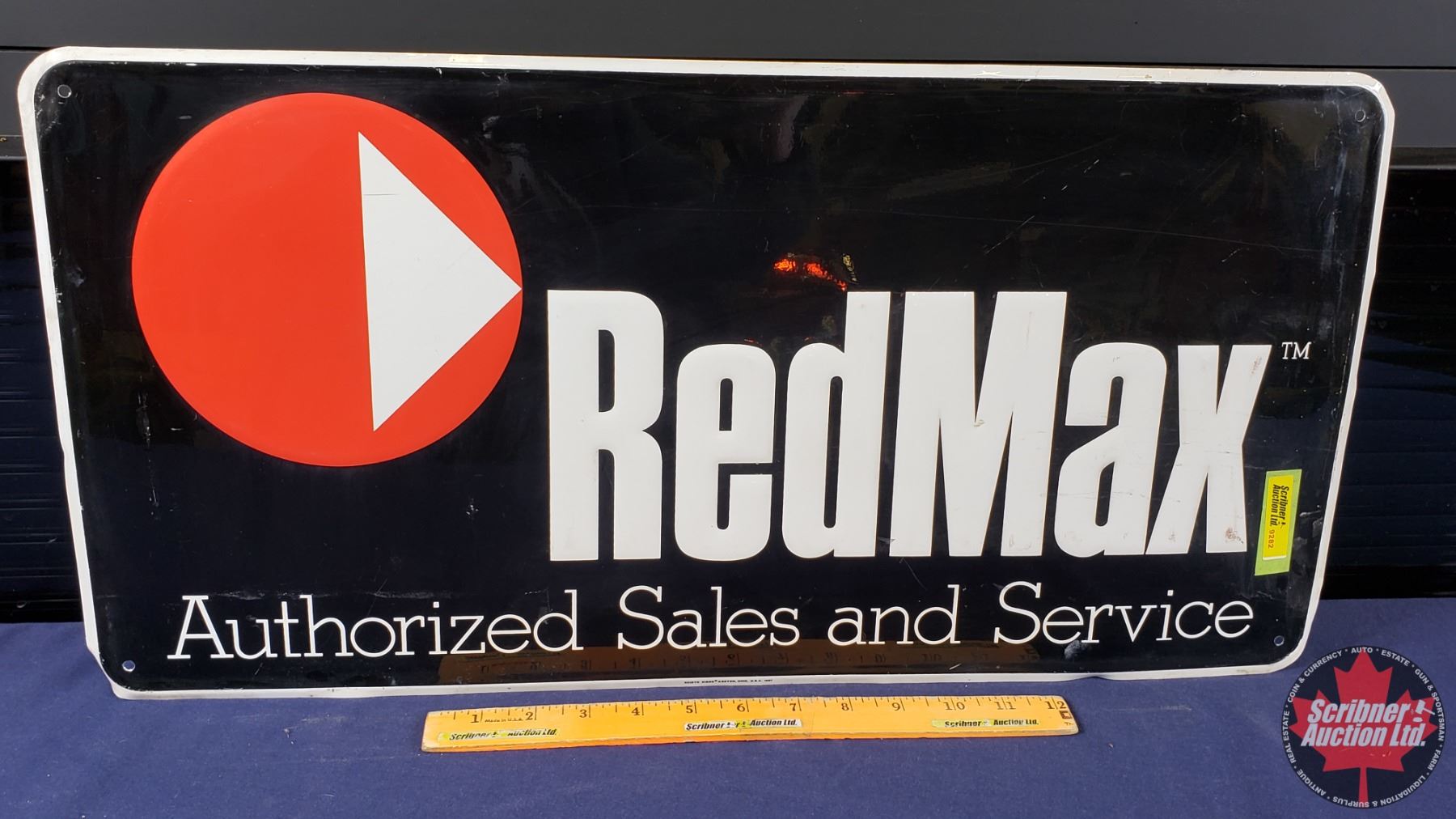 Single Side Tin Sign "RedMax Authorized Sales and Service" (Embossed) (1987) (12"H x 24"W) (SEE PICS!)