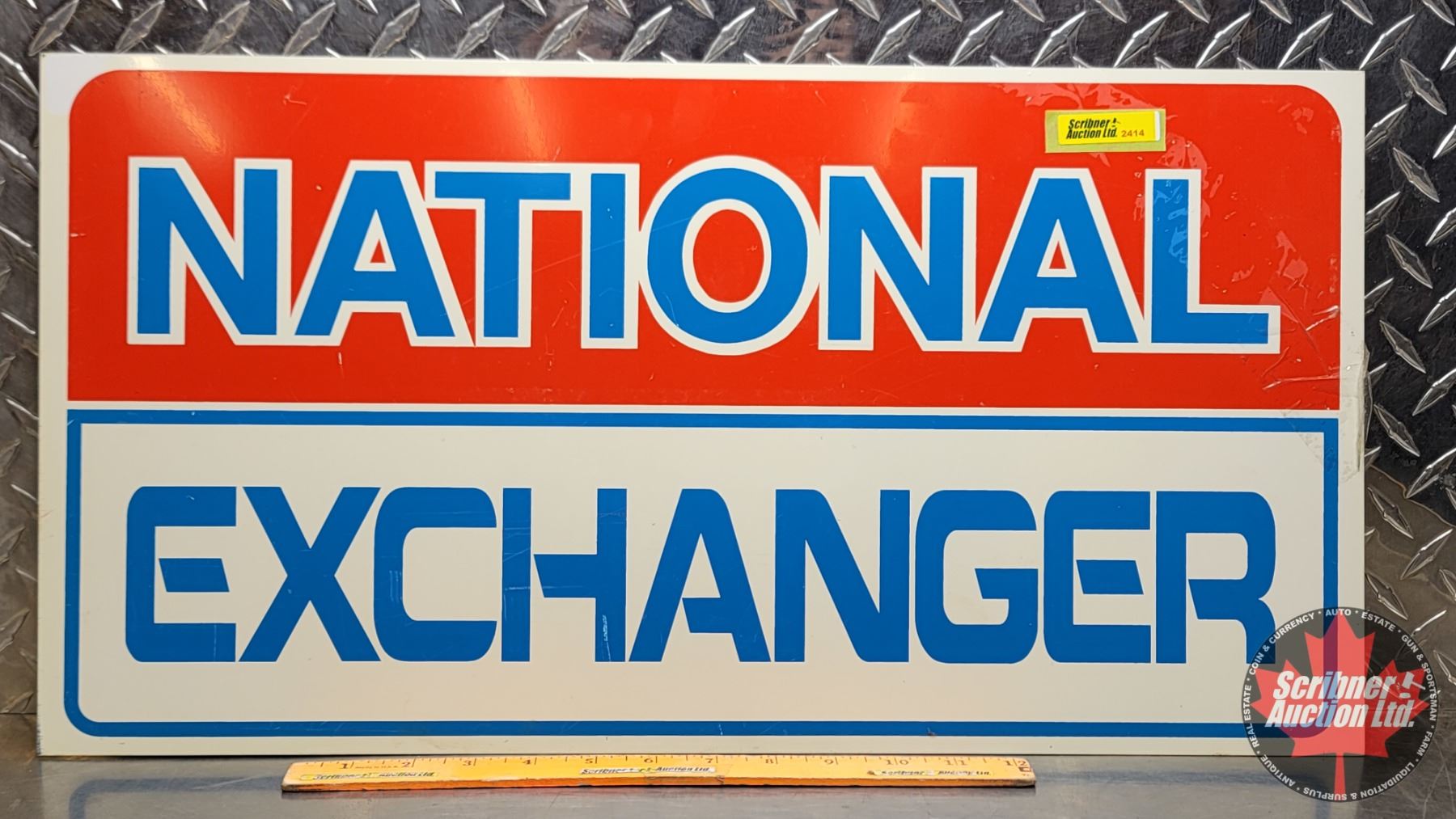 Single Sided Aluminum Sign "NATIONAL EXCHANGER" (11-3/4"H x 22-1/2"W) (SEE PICS!)