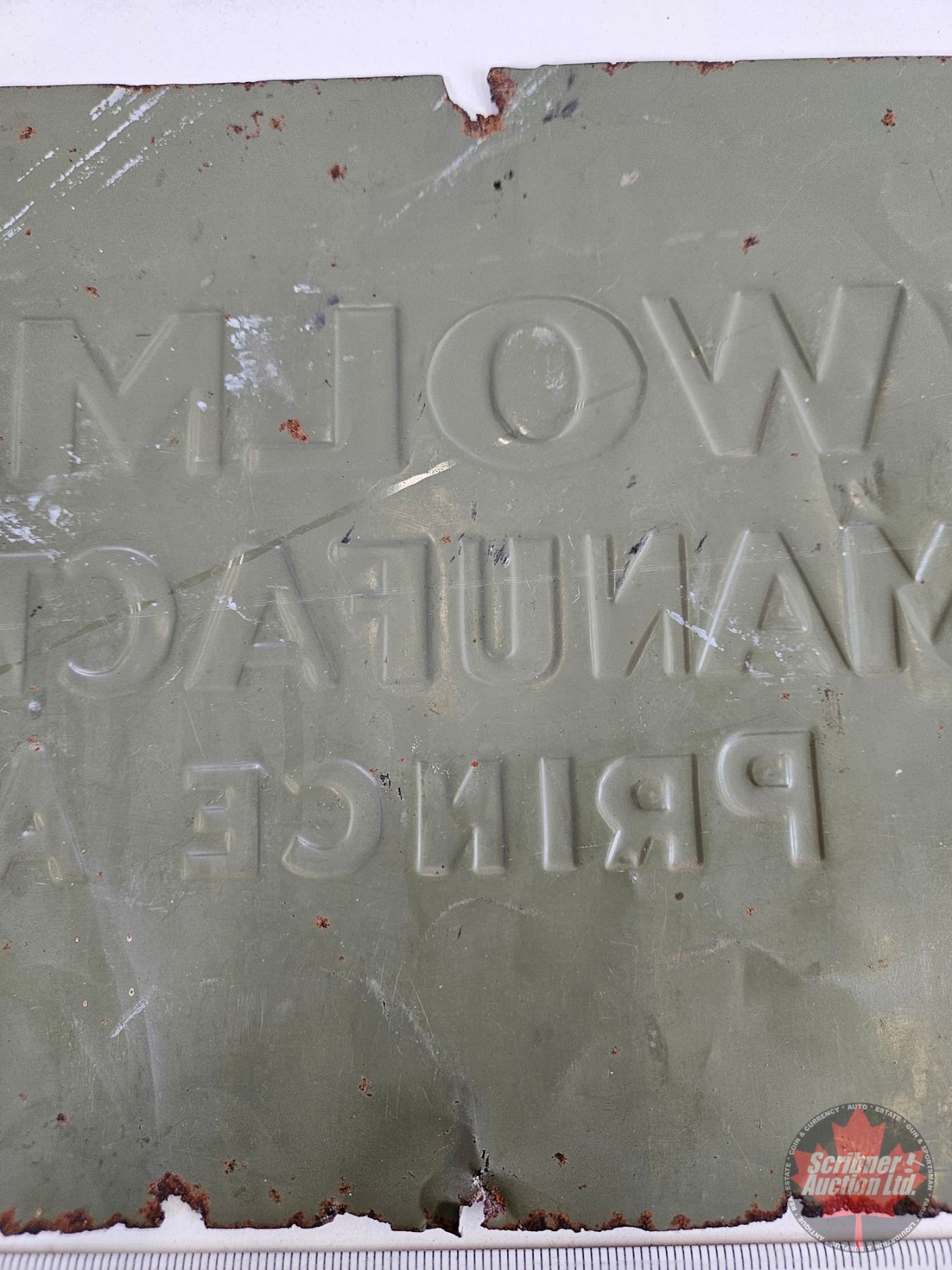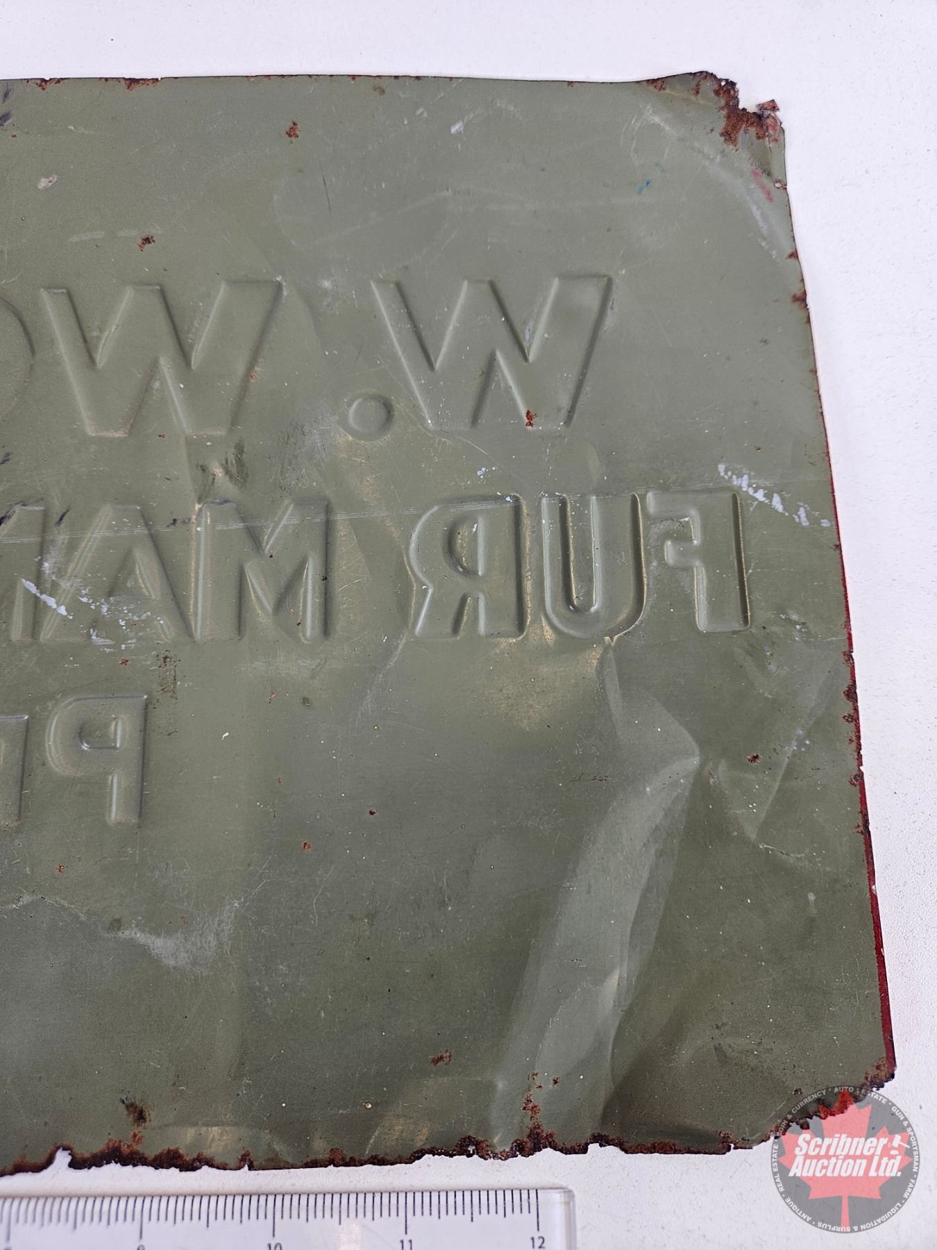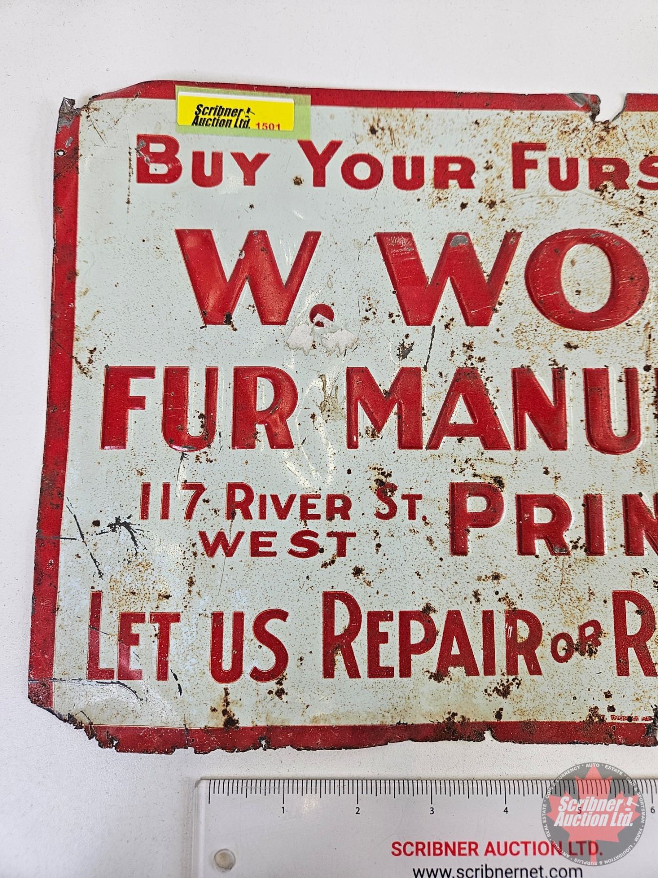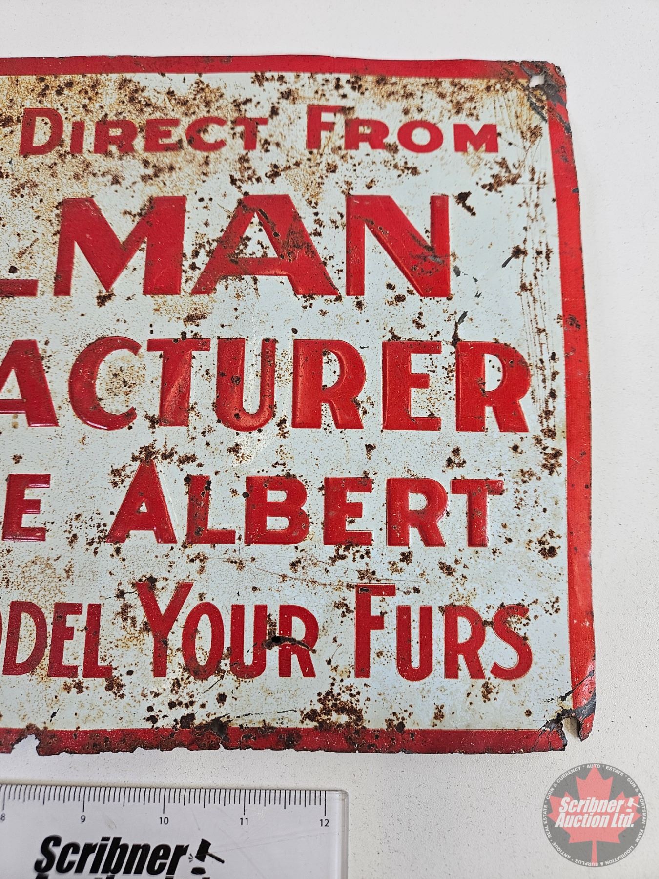 Single Sided Tin Sign "Buy Your Furs Direct from W. Wolman Fur Manufacturer" "Prince Albert"