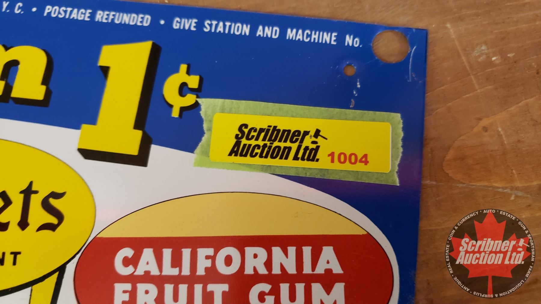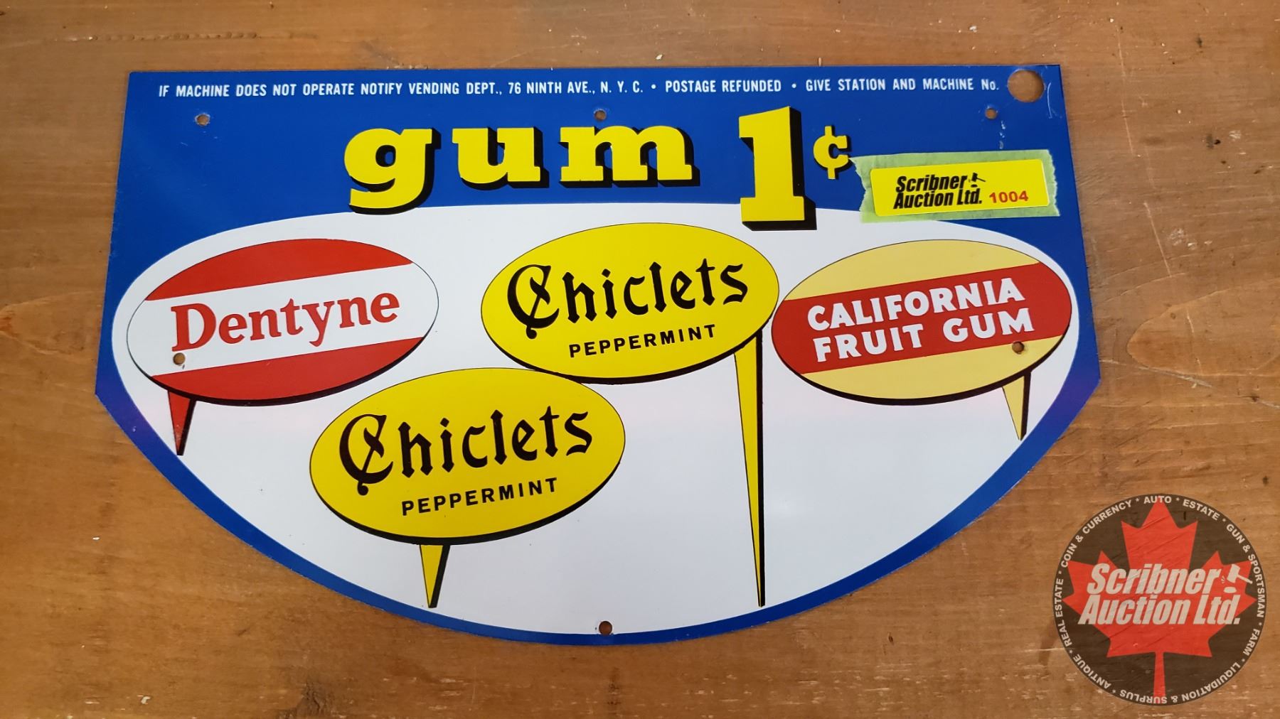 Single Sided Tin Sign : Vintage "Dentyne, Chiclets, California Fruit Gum" Vending Machine Sign (5-3/4" x 9-1/2")