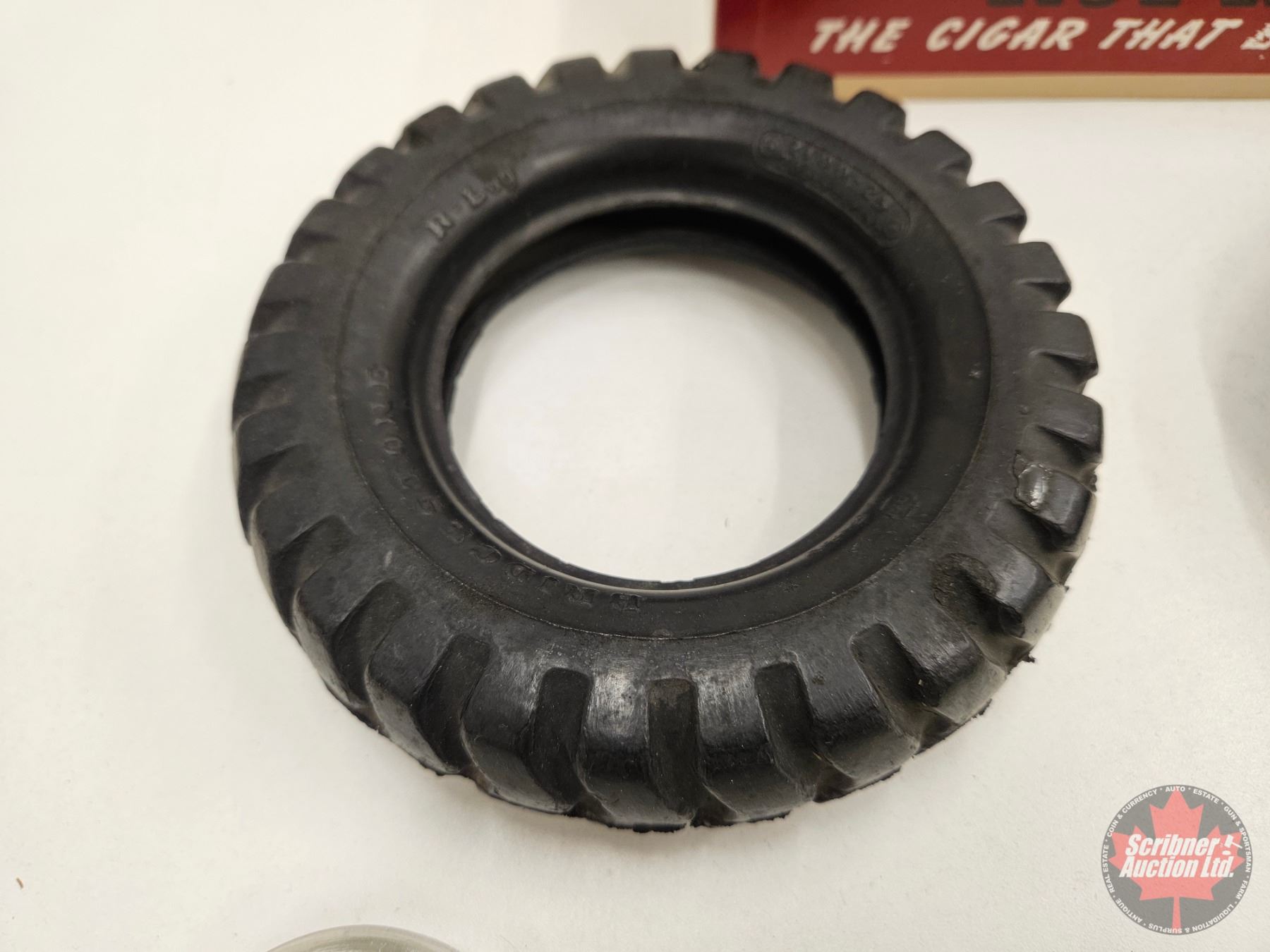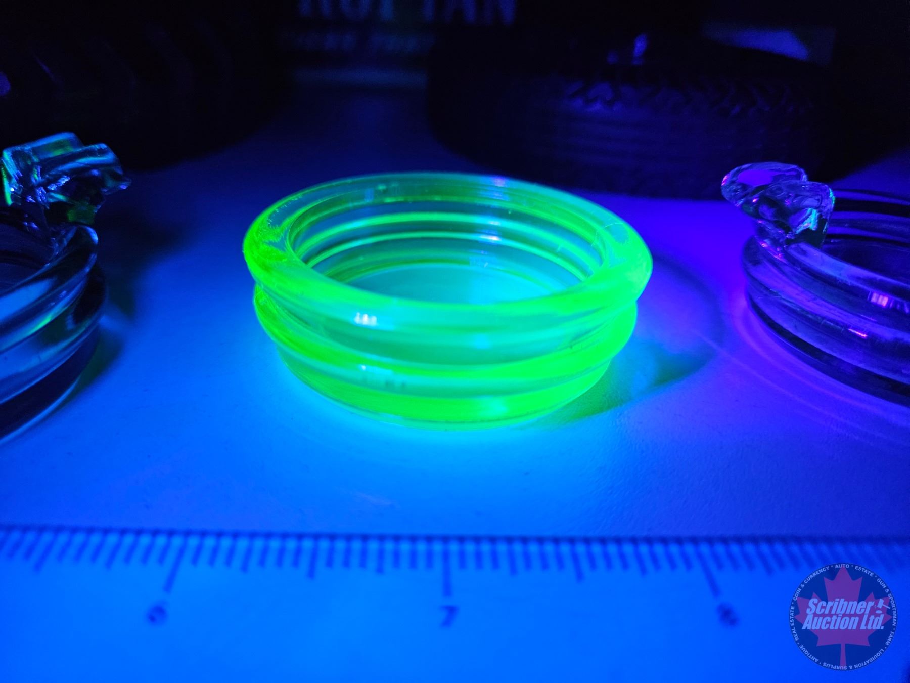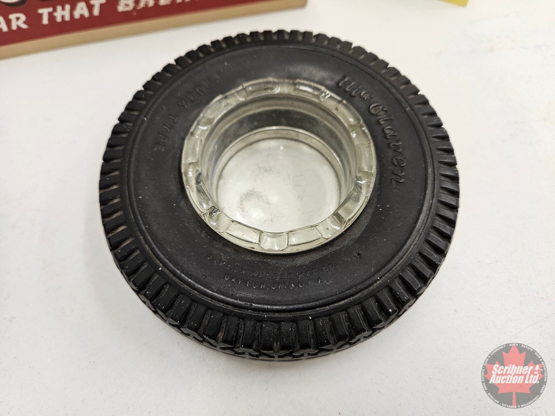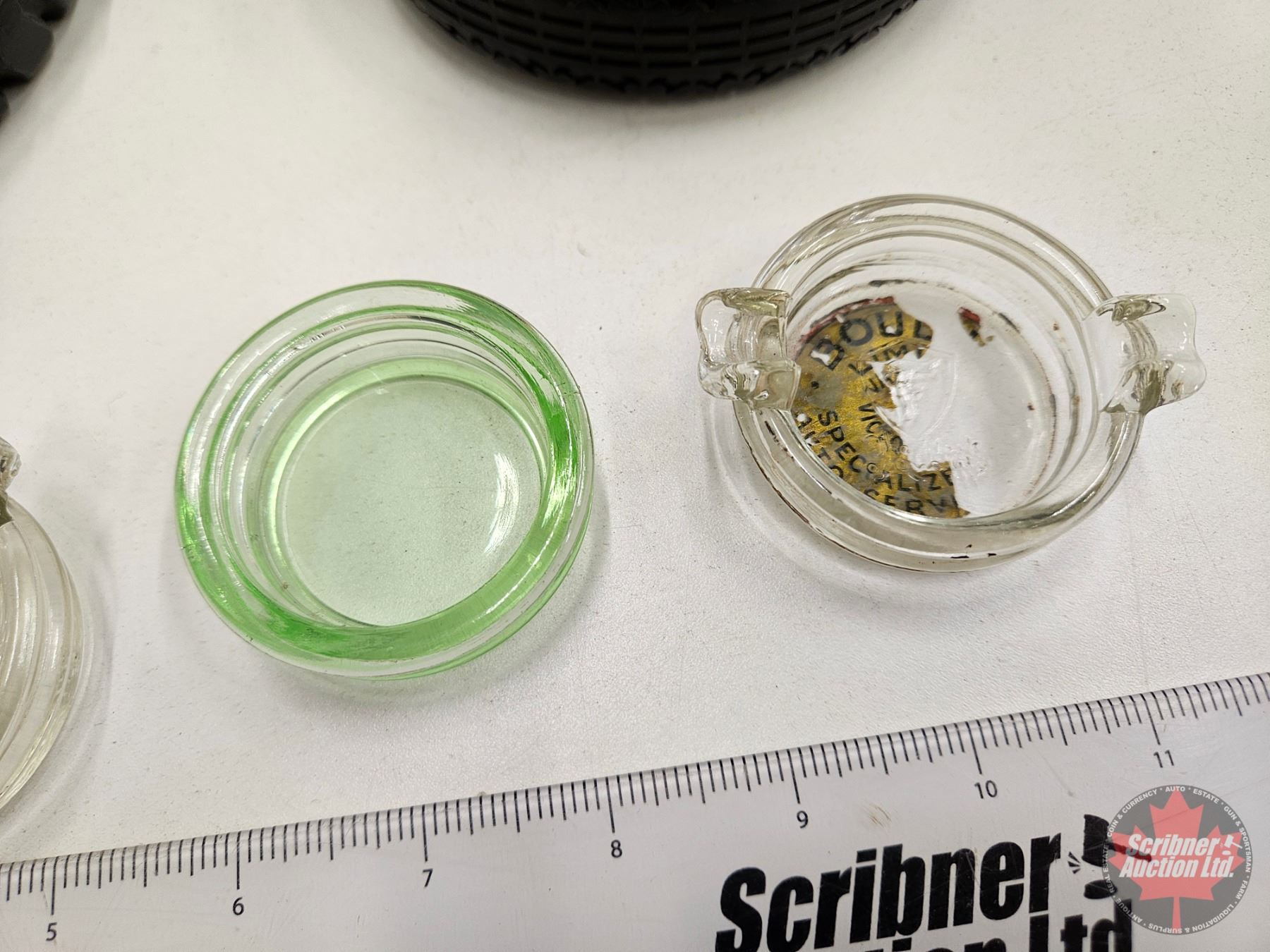 Smokers Collector Combo : Uranium Glass Ashtray Inserts ; Tire Ashtrays; Cigar Box; Ashtray Inserts
