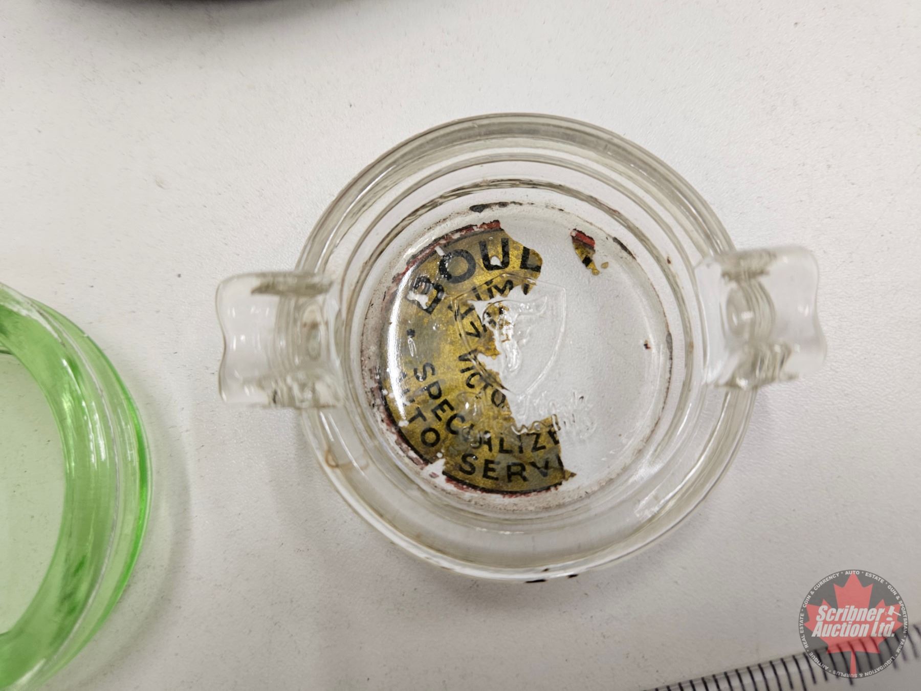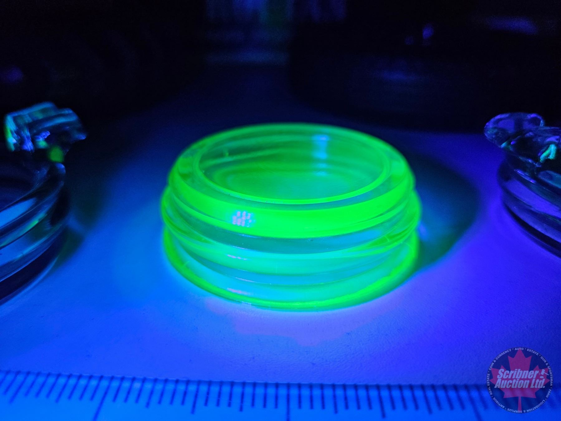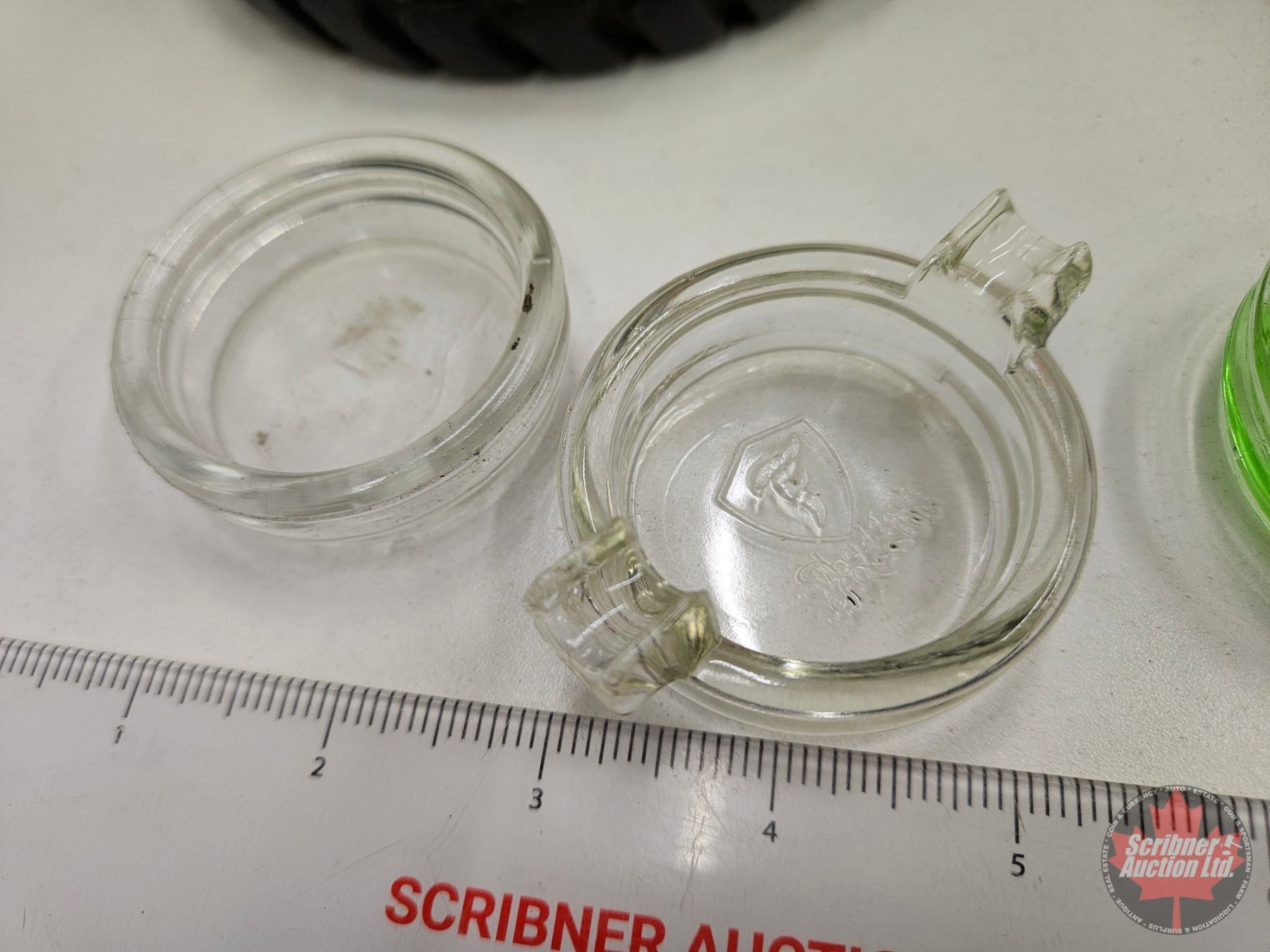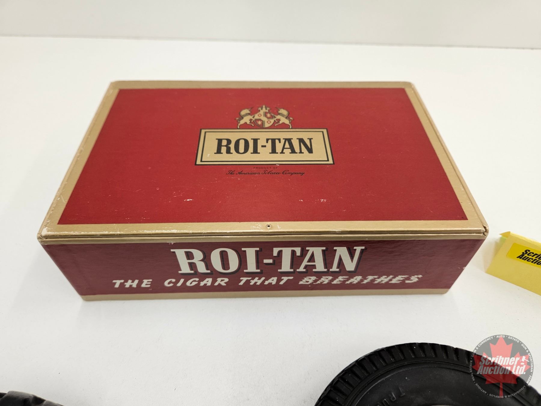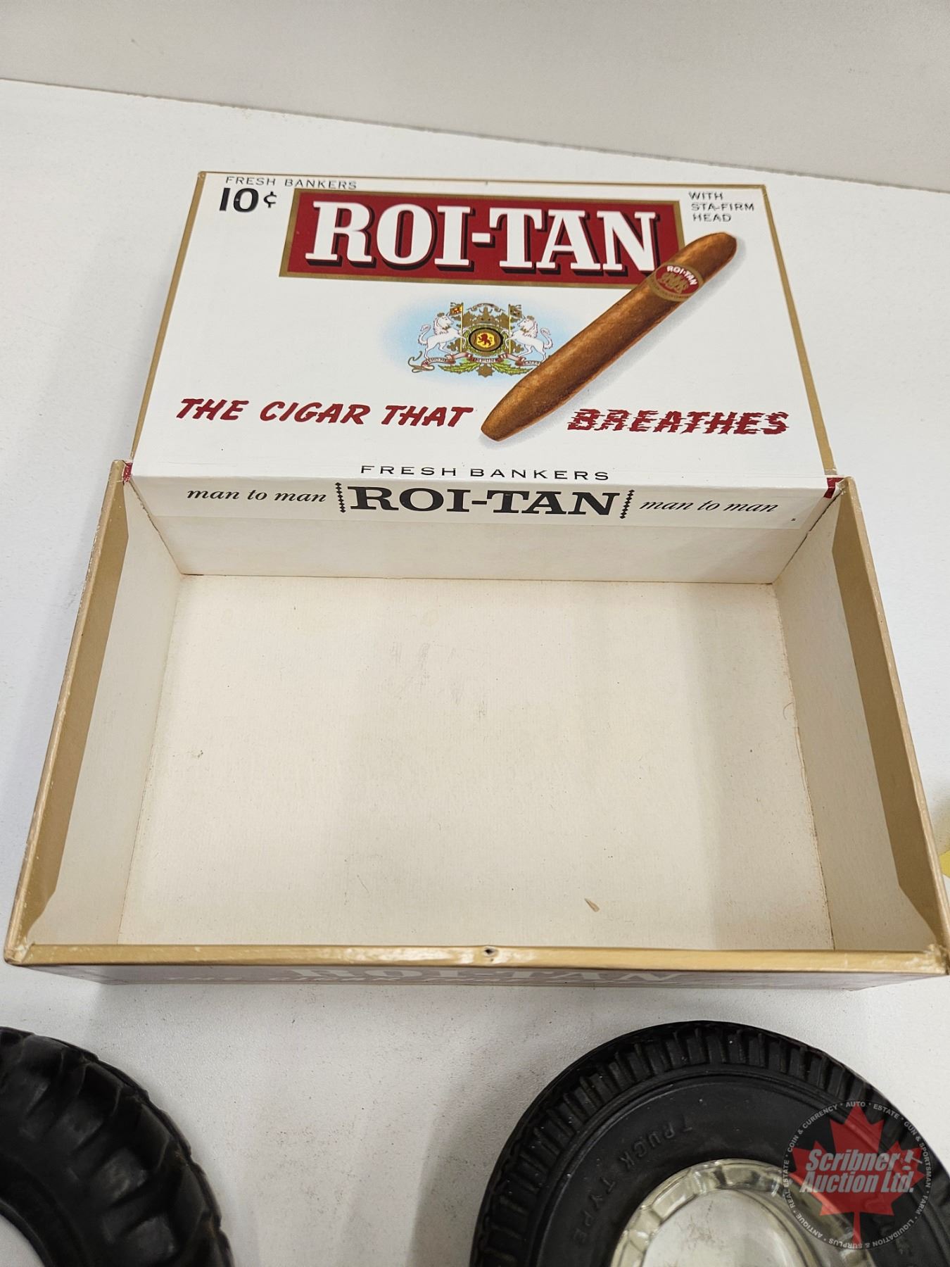 Smokers Collector Combo : Uranium Glass Ashtray Inserts ; Tire Ashtrays; Cigar Box; Ashtray Inserts