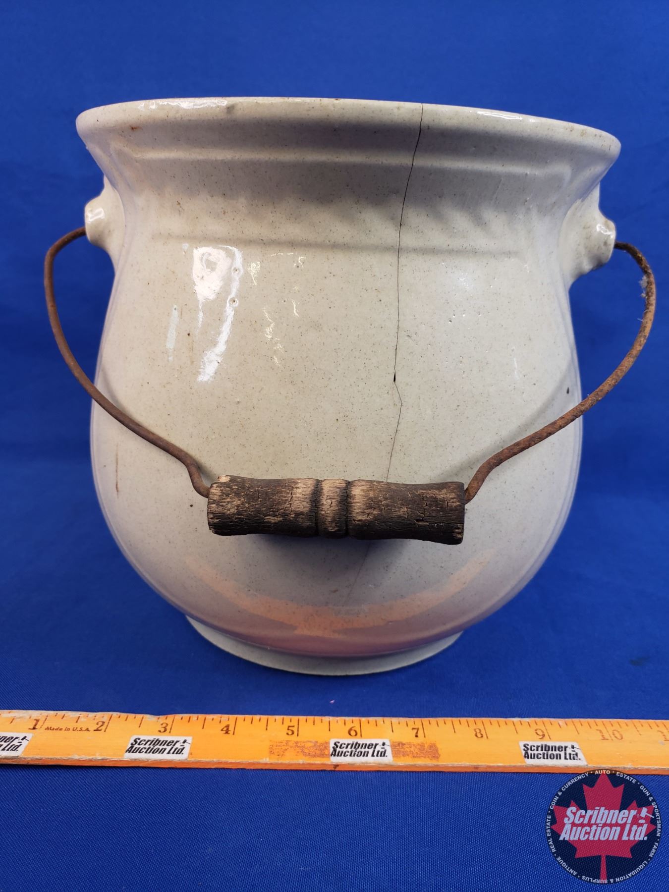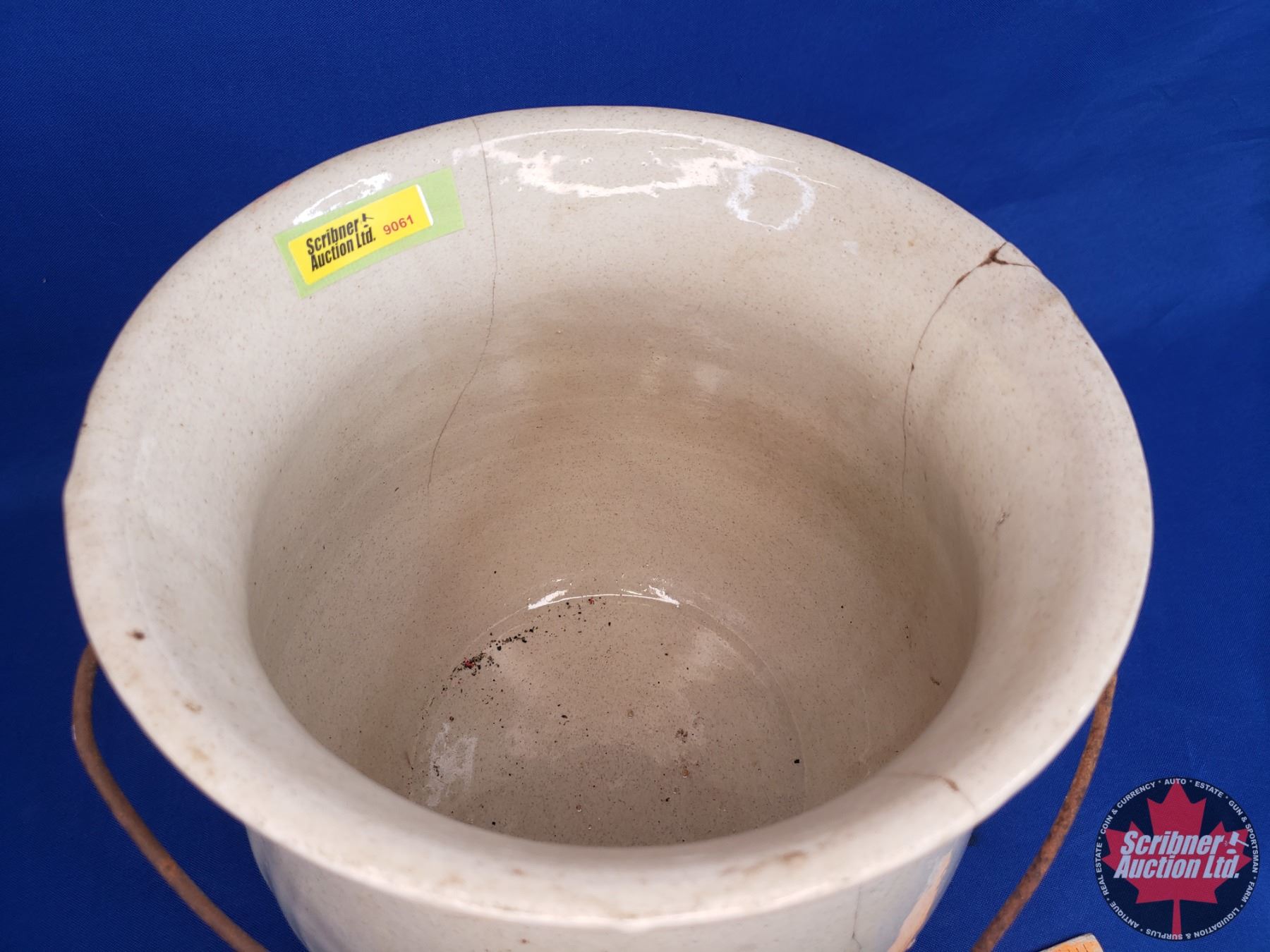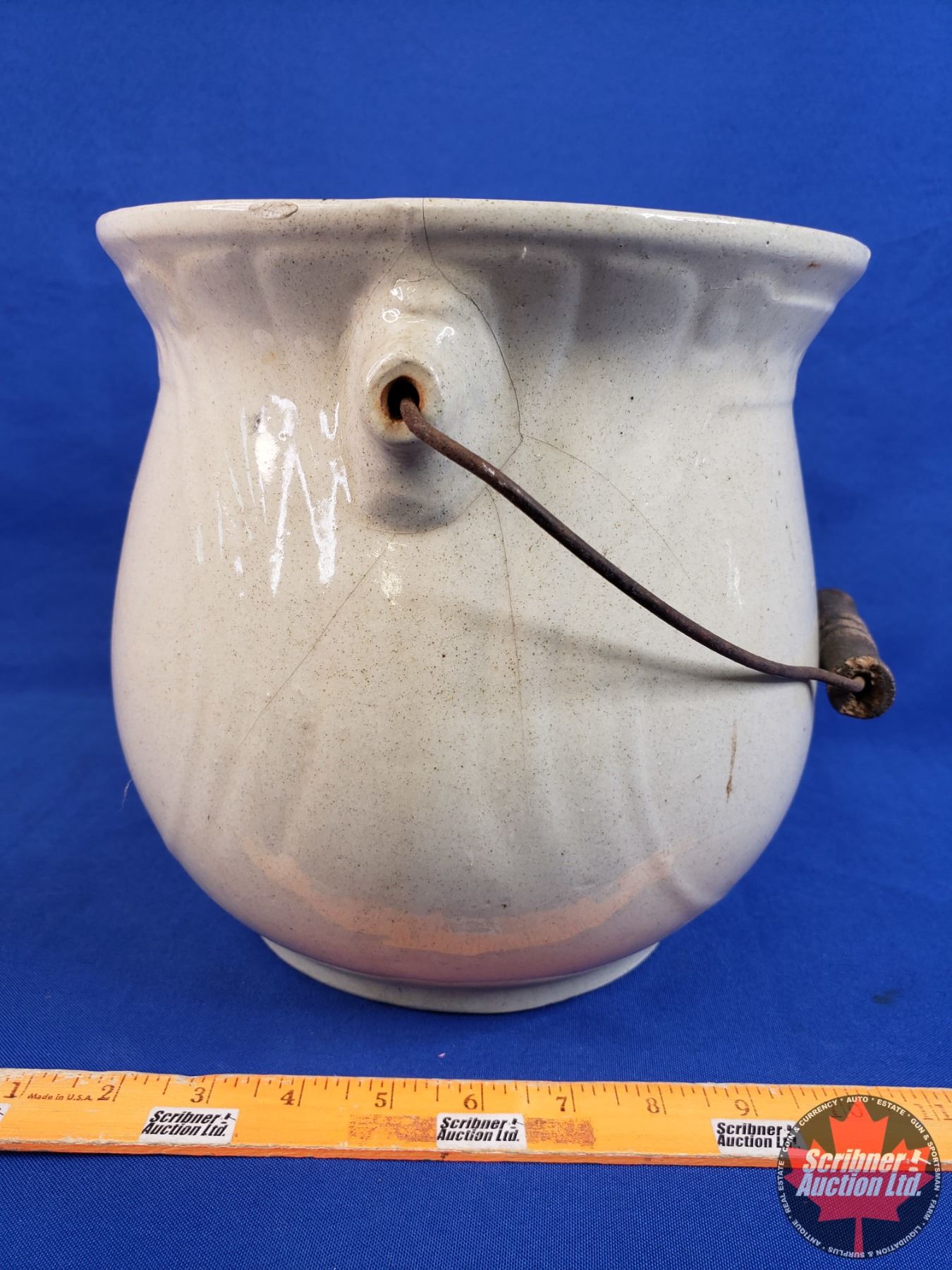 Stoneware Crock Chamber Pail (9-1/2"H x 9-1/2"Dia) (Note: Crack) (SEE PICS!)