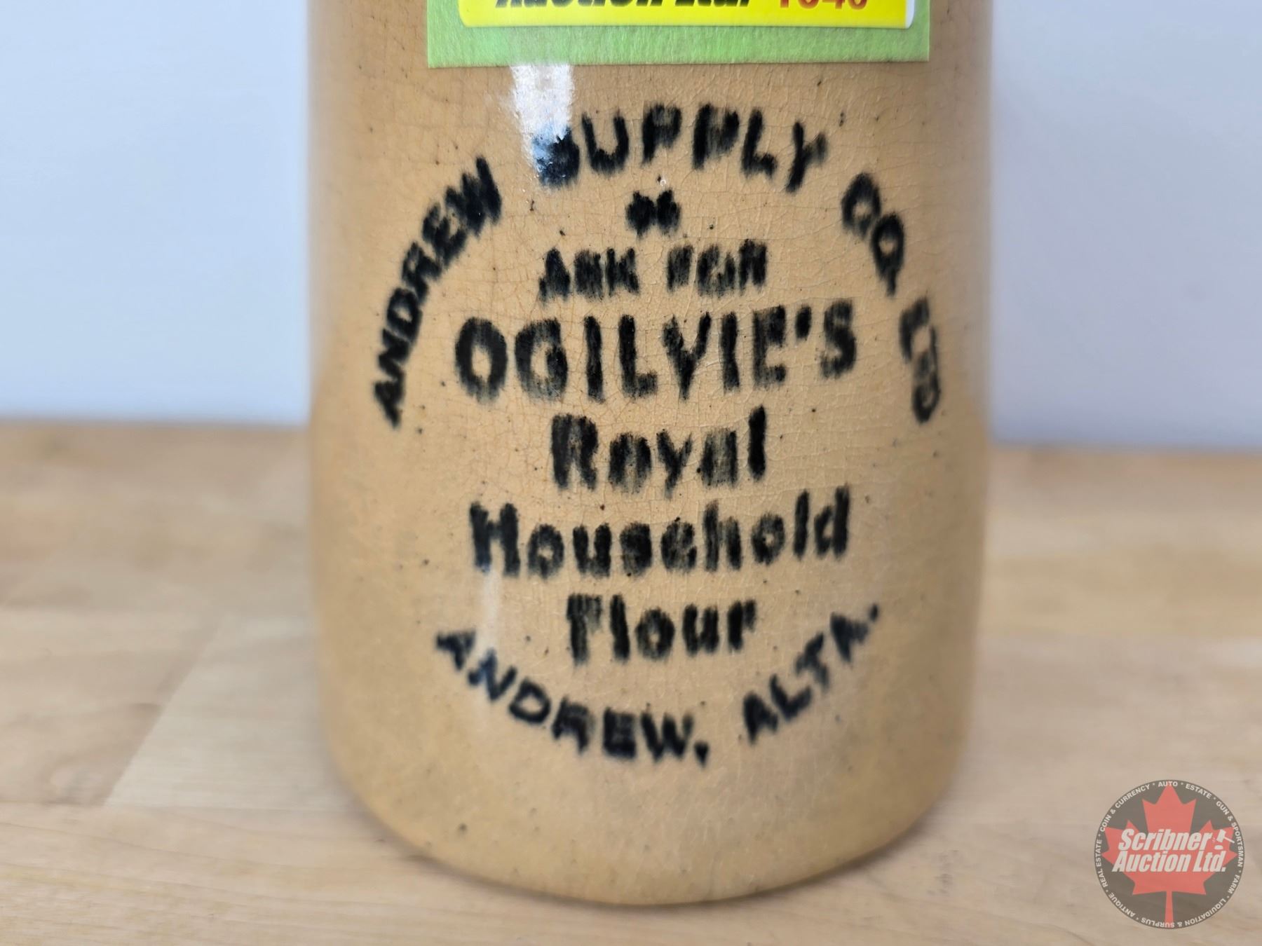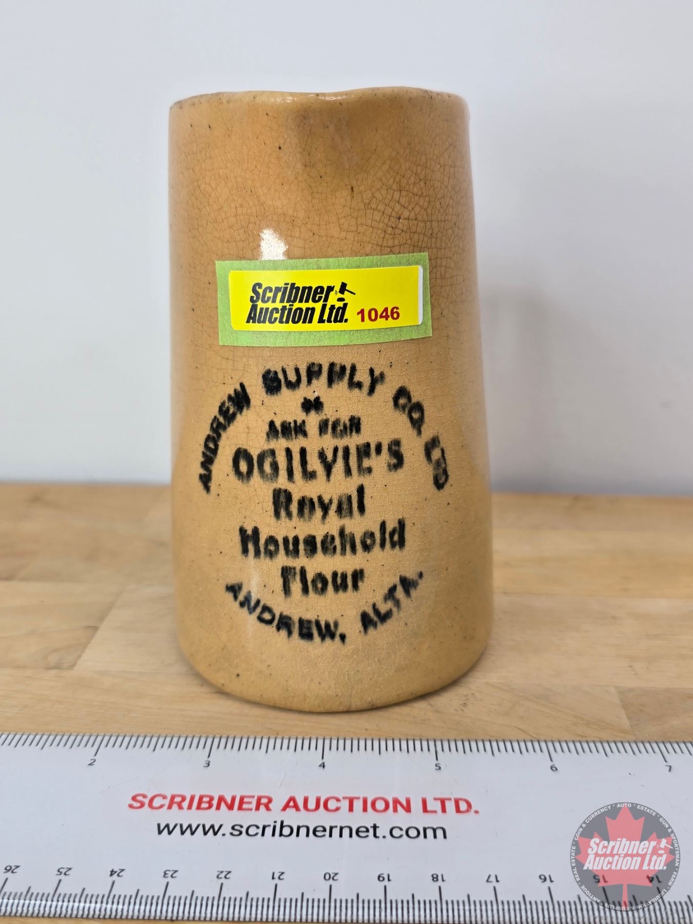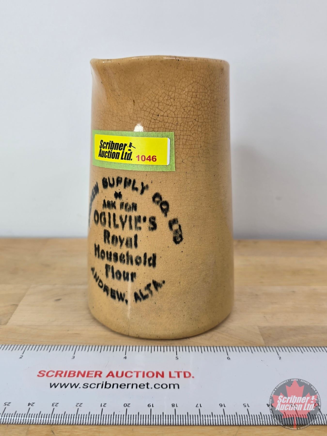 Stoneware Pitcher : Andrew Supply Co. Ltd : Ask for Ogilvie's Royal Household Flour : Andrew, Alta
