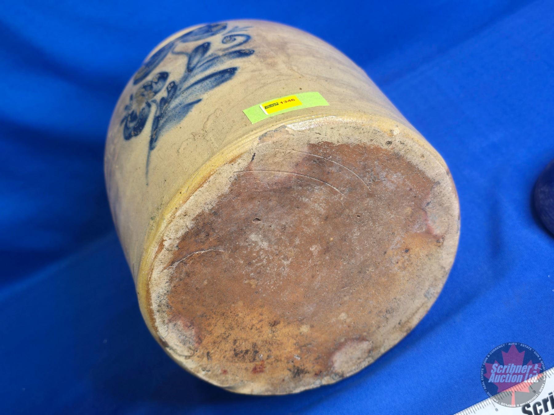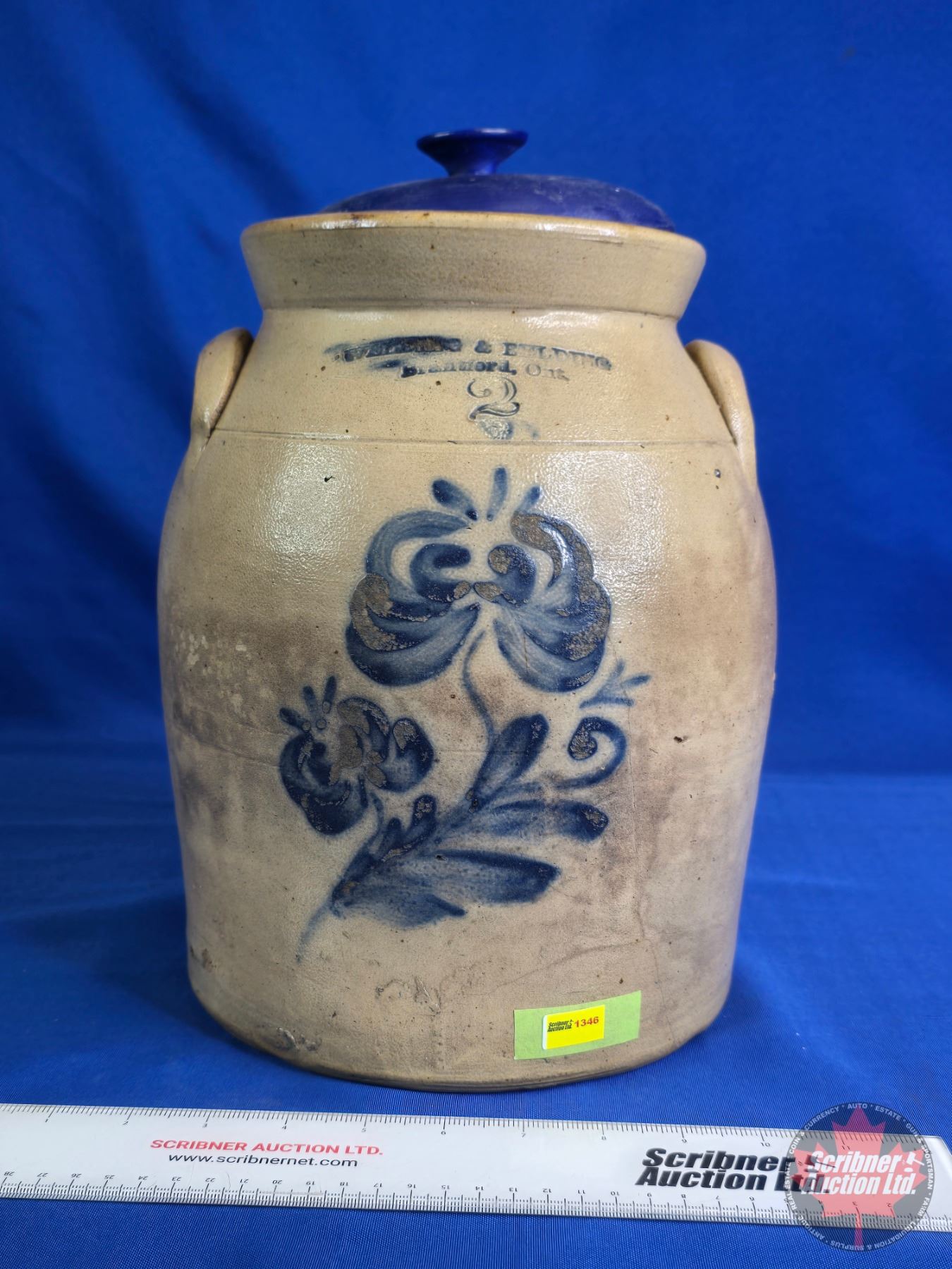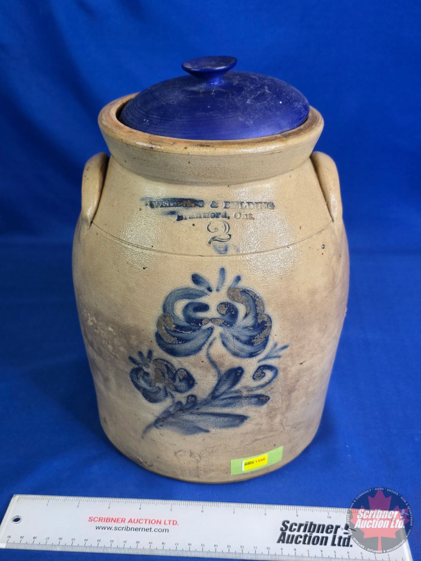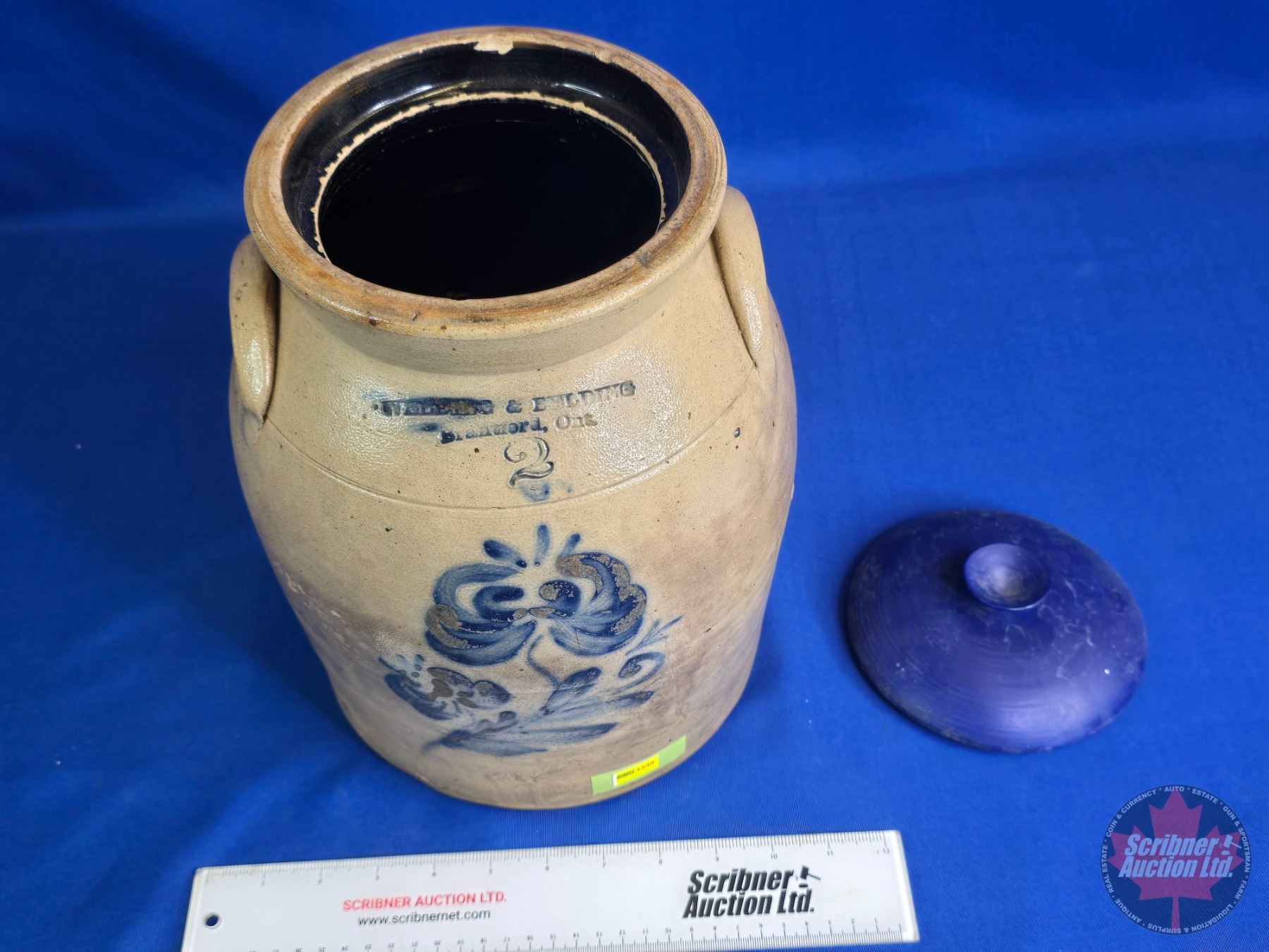Stoneware Salt Glaze Crock / Jar with Lid : Brantford, Ont. : Blue Foral